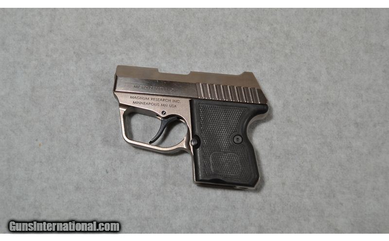Description: Magnum Research Micro Desert Eagle is chambered in .380 Auto. It comes with a plastic case. .380 ACP SOLD Chambers: .380 Auto Metal Condition: Good Barrels: 2.22 Weight: 0.9 lbs Item Location: Grandville, MI |