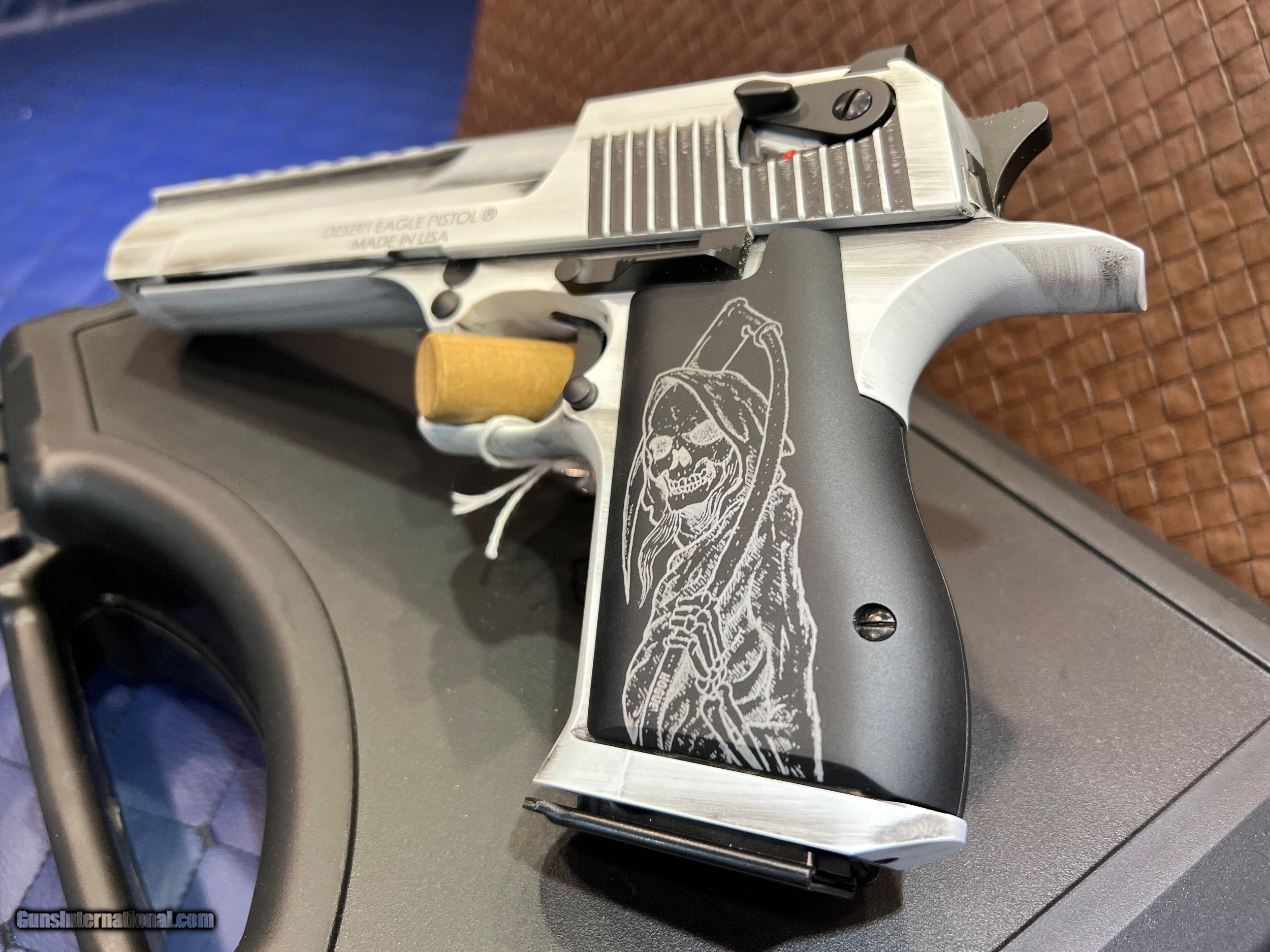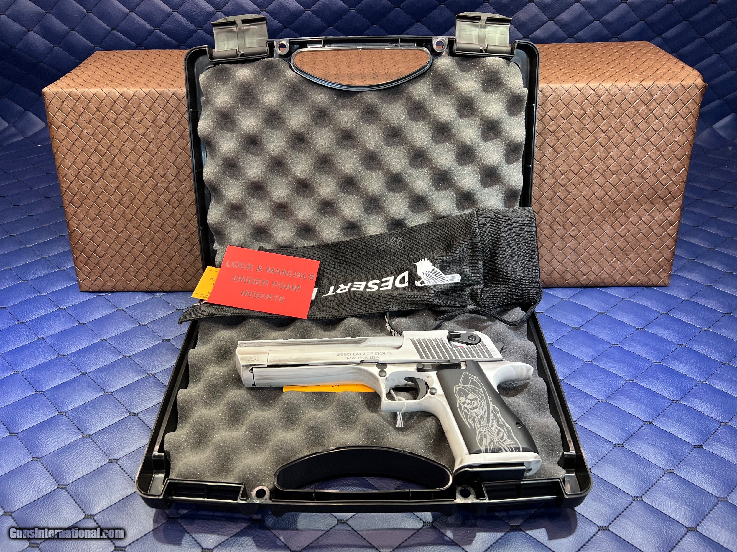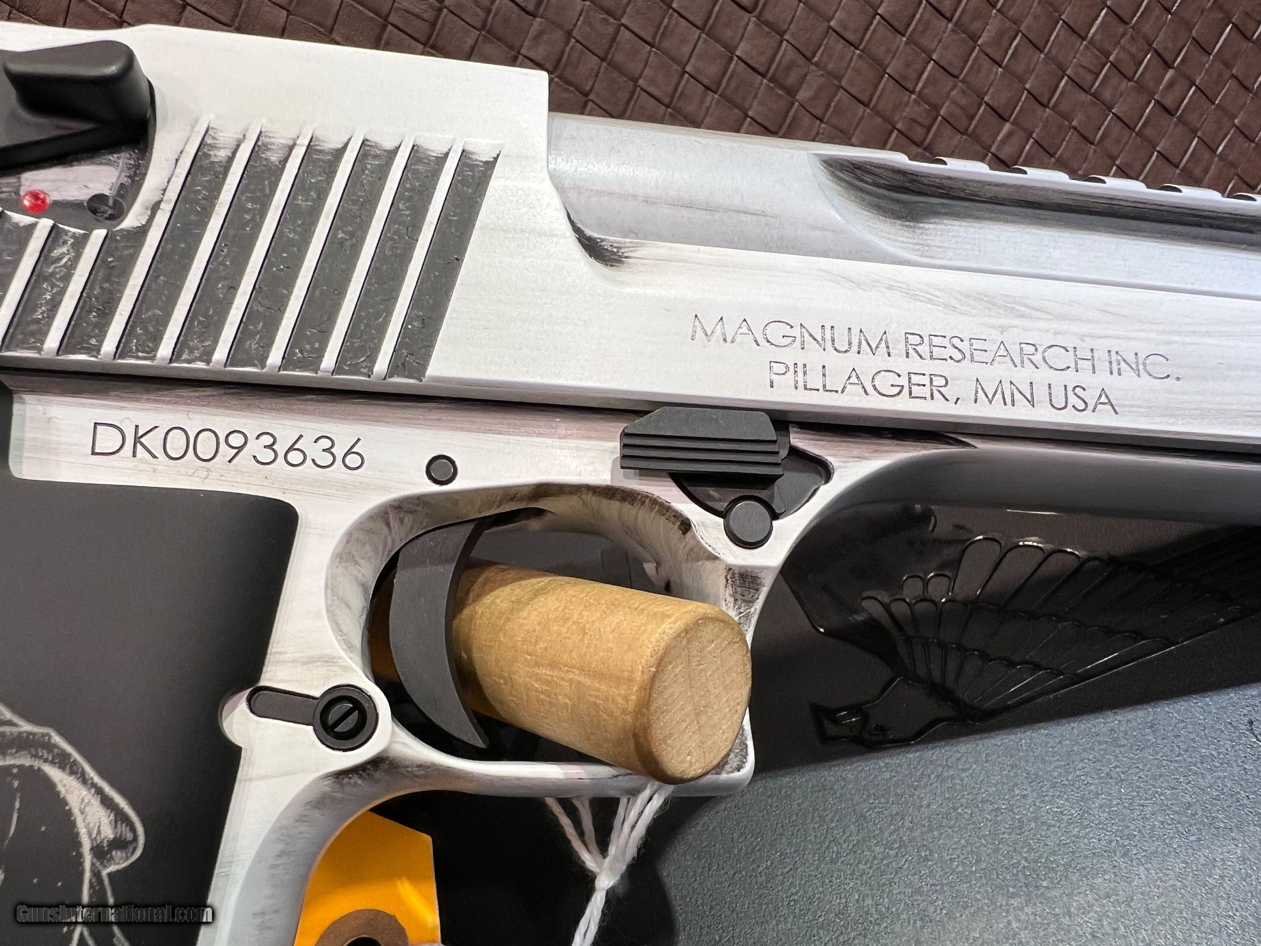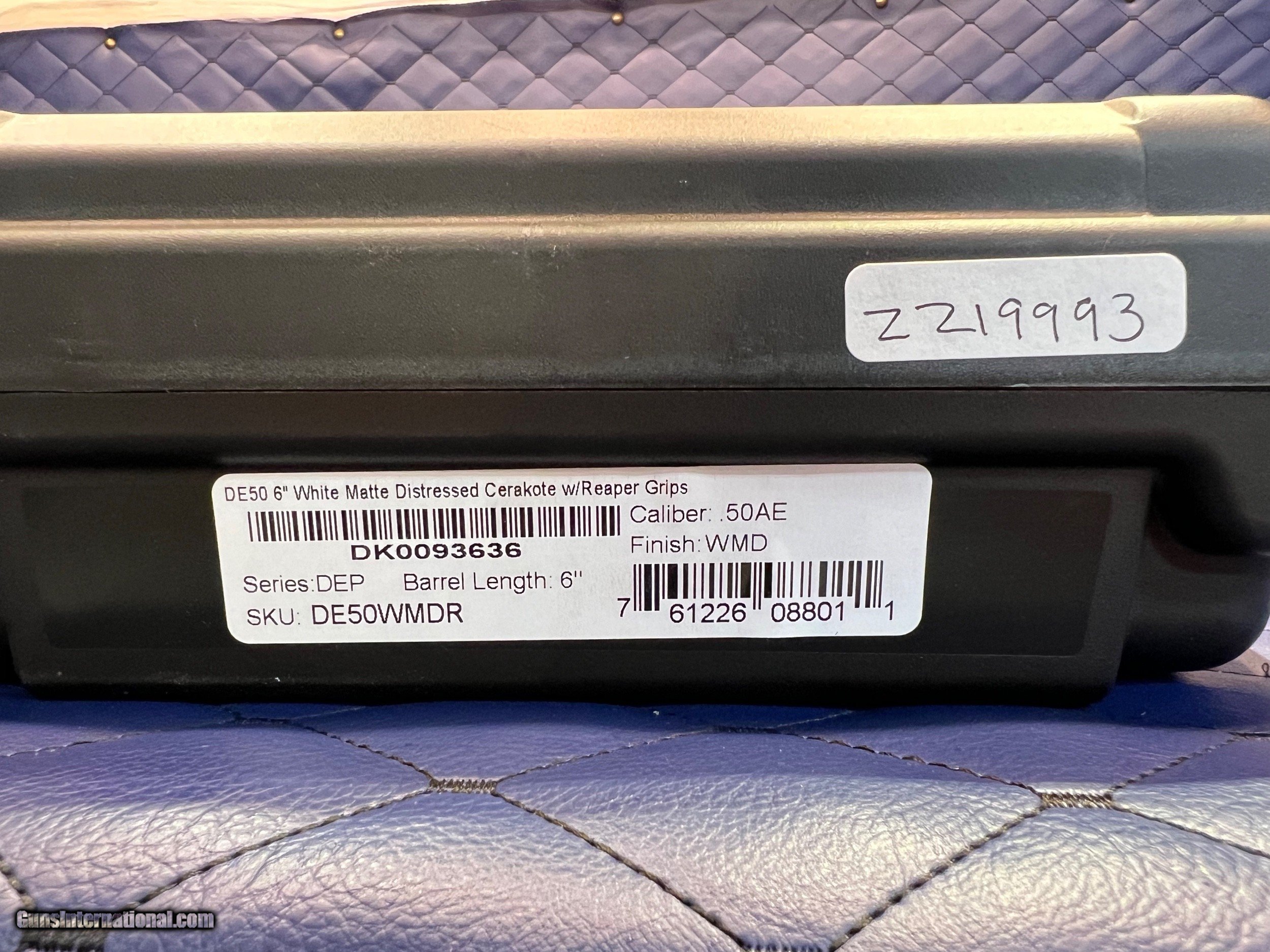 Description: New Magnum Research Desert Eagle .50 Action Express, Semi-Auto Pistol, 6" Barrel White Matte Distressed Cerakote Finish, Reaper Grips, 7-round Magazine, Gas Operated Rotating Bolt, With Box. WE DO NOT SHIP INTERNATIONALLY $40 Shipping. Pictures are of the item listed. Must be shipped to an FFL holder. The item is on display at our shop but will be taken off the shelf once the starting is met. Please feel free to contact us directly. Three day inspection from date items arrives at your FFL. Payment may be personal or cashiers check, money order or credit card "3% surcharge for credit card". QUESTIONS? CALL/TEXT STEVE AT 580.327.7372 SOLD Handgun Caliber: .50 Action Express Serial Number: DK0093636 ZZ19993 |