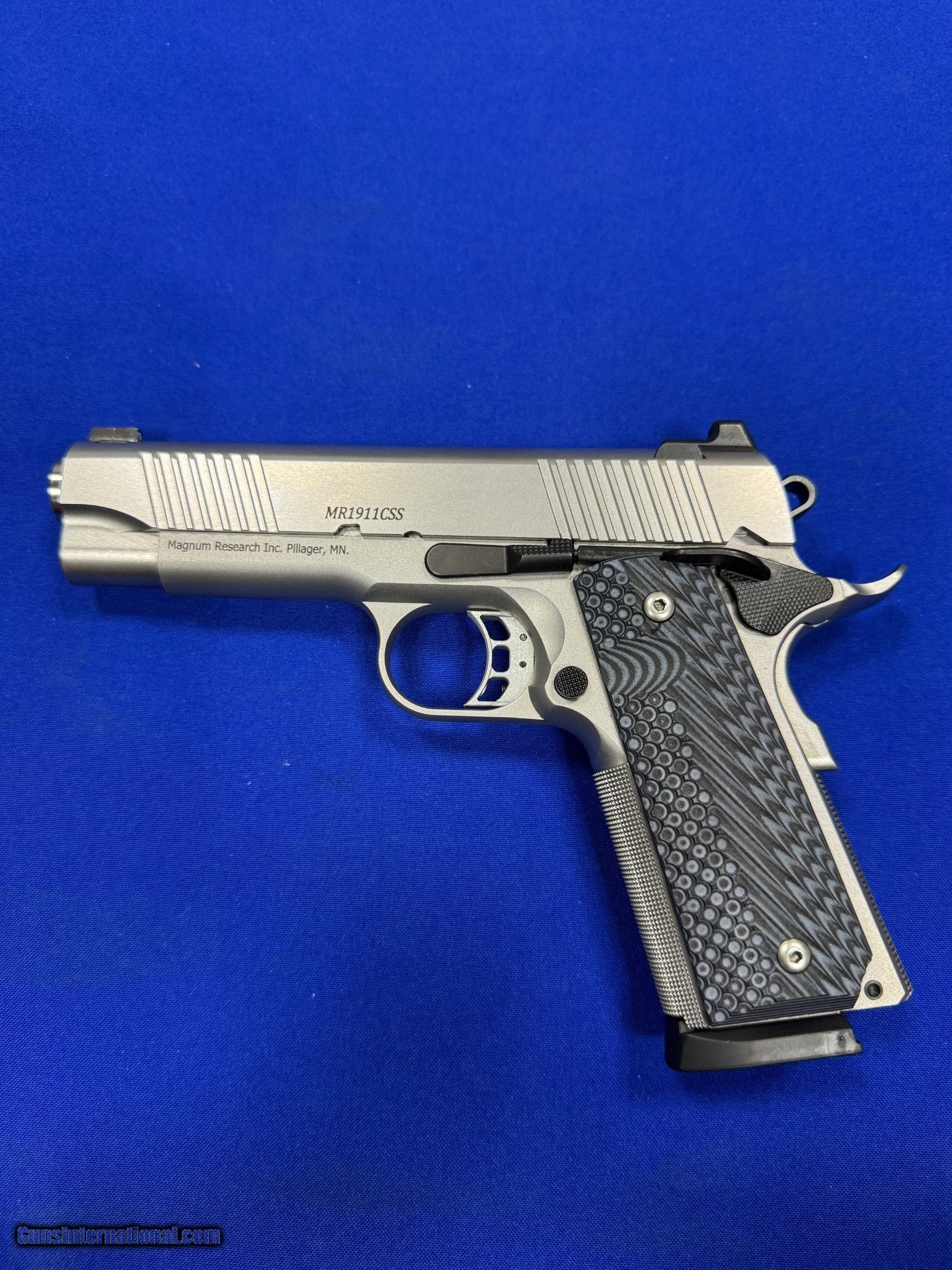 Description: Guns Listing ID: 569931 Firearm comes with factory case and 3 magazines Manufacturer: MAGNUM RESEARCH Model: 1911C Caliber Info: .45 ACP Condition: Used - Non-Certified Barrels: 4.3" BARREL Action: SINGLE SHOT Weight: 2.2 lbs. Price: $749.99 Contact Seller |