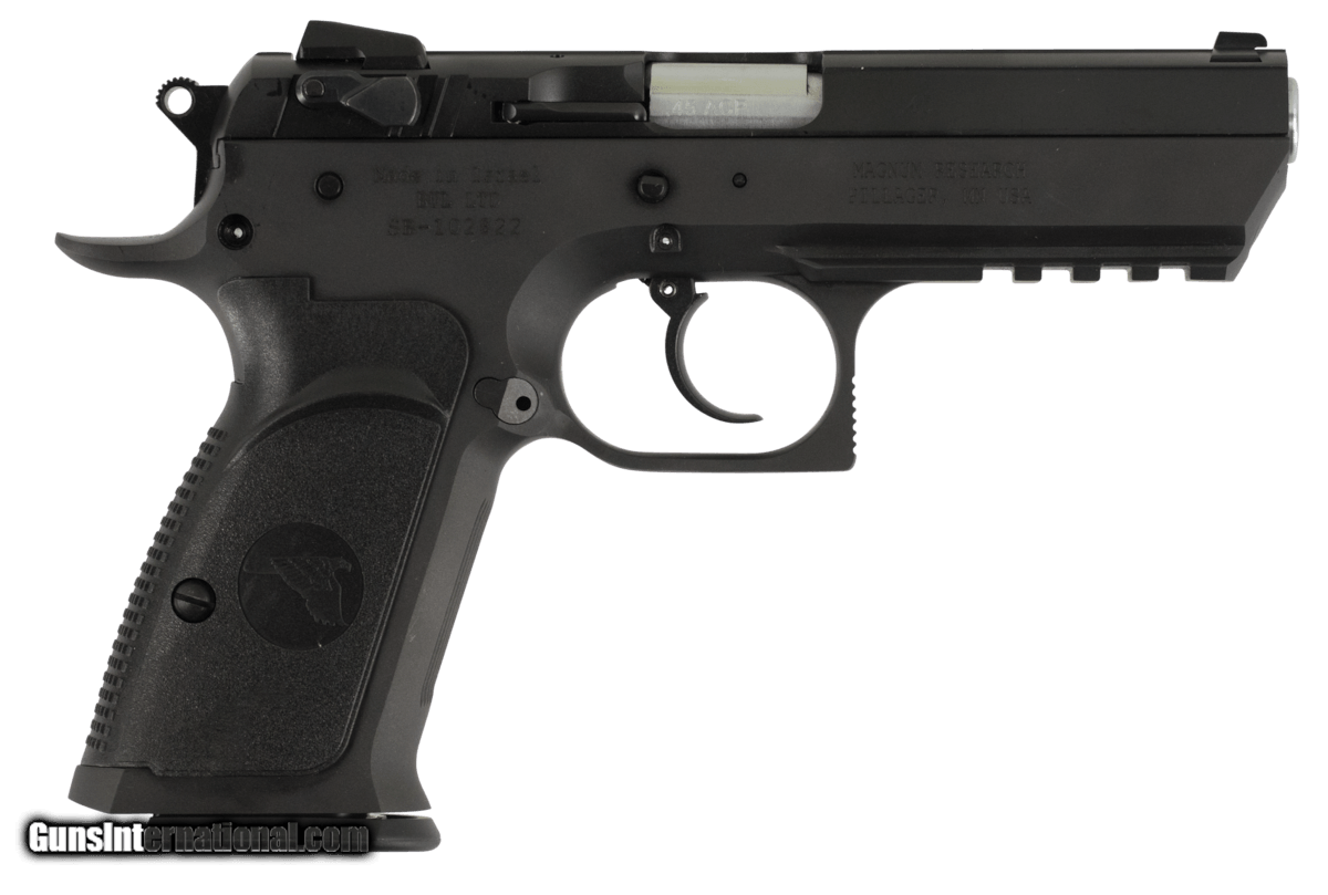 Description: Guns Listing ID: 538021 The Magnum Research Baby Desert Eagle Steel Frame is a family of semi-automatic pistols chambered in 40 SW 45 ACP and 9mm. The pistols are available at semi-compact of full-size editions. Featuring a carbon steel frame match grade barrel ambidextrous decocker and polymer grip panels. Details Caliber .45 ACP - Barrel Length 4.43 - Height 5.375 - Weight 35.8 oz - OA Length 8 - Slide Width 1.31 - Construction High quality carbon steel frame and slide - Finish Black oxide finish - Trigger Double ActionSingle Action (DASA) - Safety Slide mounted safety and decocker ambidextrous - Sights Combat type white three dot fixed - Magazines 2-10 Round (BE45003R) SOLD Manufacturer: MAGNUM RESEARCH Model: BABY DESERT EAGLE Caliber Info: .45 ACP Condition: new Barrels: 4 BARREL Finish: BLACK |