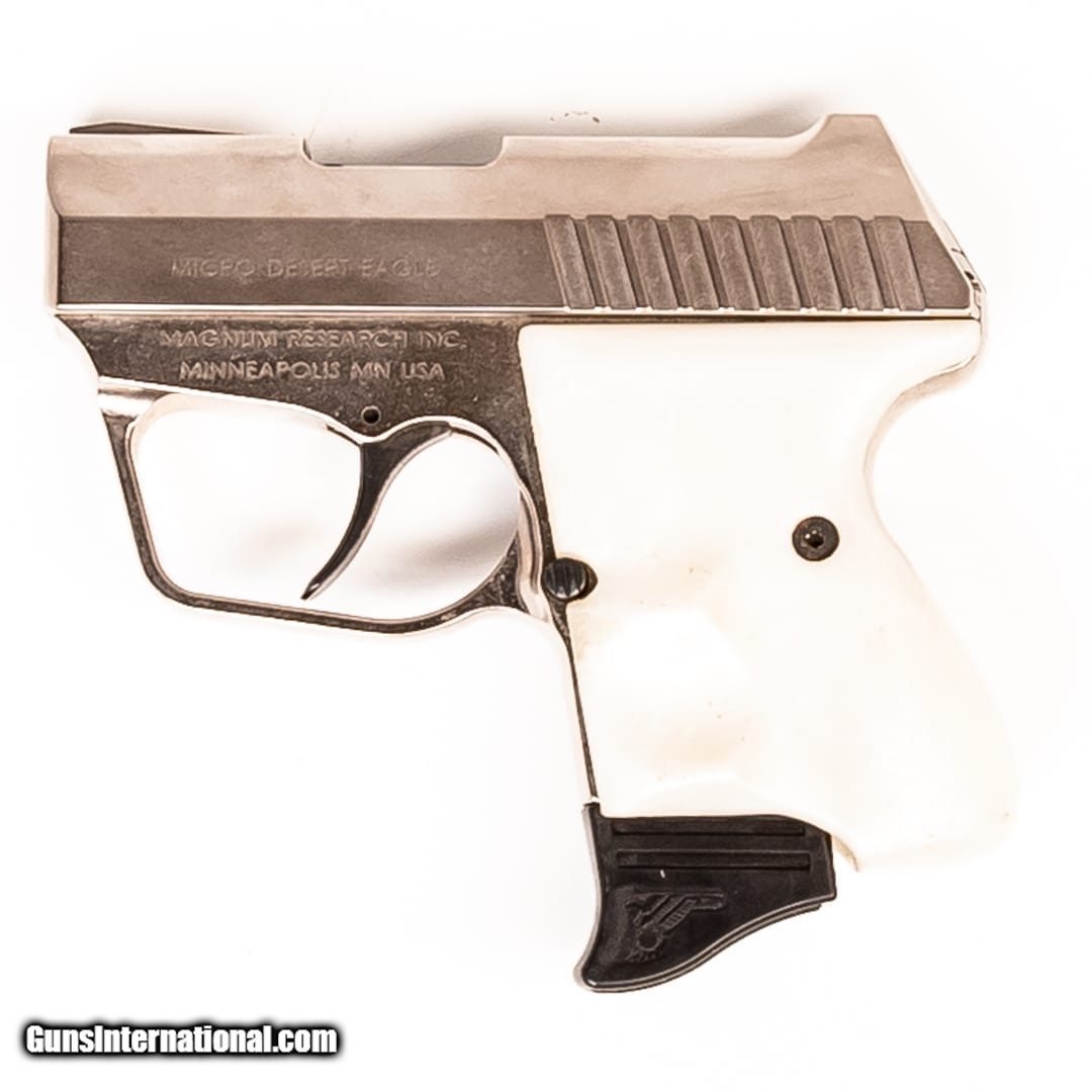 Description: Guns Listing ID: 497542 The Magnum Research Micro Desert Eagle is a sub-compact pocket pistol that can be easily concealed and is chambered in .380 ACP, making it easy to control. This handgun includes two 7-round magazines. SOLD Manufacturer: MAGNUM RESEARCH Model: MICRO DESERT EAGLE Caliber Info: .380 ACP Condition: Used - Certified Barrels: 2.5 BARREL Finish: STAINLESS |