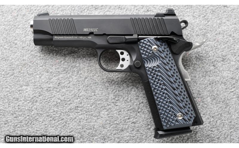 Description: Made in Israel, the Magnum Research MR1911C comes loaded with features that would cost extra from a custom gunsmith. .45 ACP SOLD Chambers: .45 ACP in an eight round magazine Metal Condition: "Very good, appears near new Bore Condition: Very good Barrels: 4.33" Bushingless Triggers: Single Action adjustable Weight: 33.9 oz Sights: New Novak Item Location: Grand Junction, CO |
