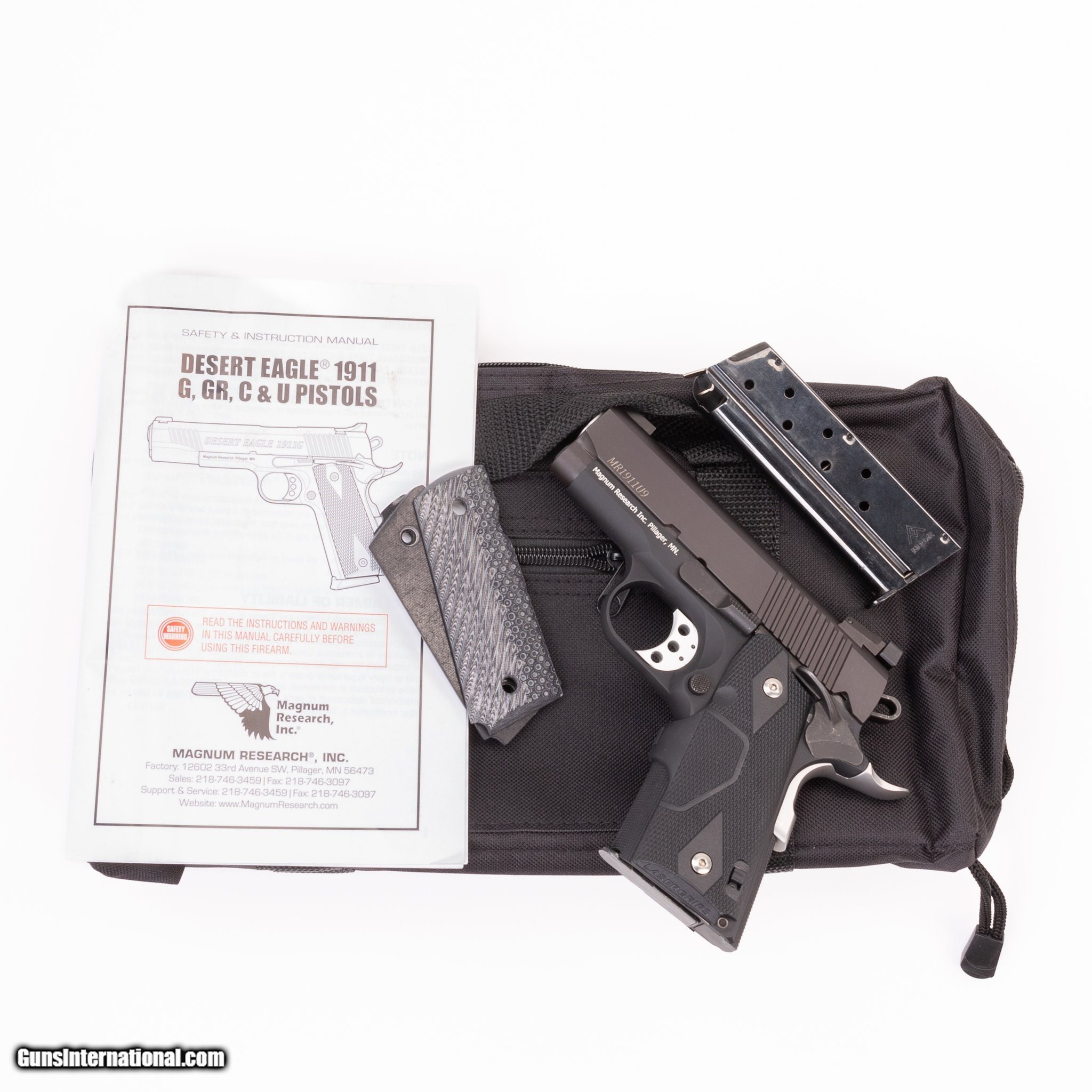 Description: Guns Listing ID: 462458 This Magnum Research 1911 features two 8-round magazines, owner‚‚s manual, Crimson Trace laser grips and extra G10-grips. Get the best bang for your buck when you get a Certified Used Firearm . When you see the Certified Used stamp on any of our firearms, you can be confident that you’re getting exactly what you want – a gun only in very good to excellent condition and held to the highest quality standard. All Certified Used Guns come with a ‘no questions asked’ return policy . PLUS, ALL CERTIFIED USED GUNS SHIP FREE SOLD Manufacturer: MAGNUM RESEARCH Model: MR1911U9 Caliber Info: 9MM LUGER (9x19 PARA) Condition: Used - Certified Barrels: 3.25 Action: SEMI AUTOMATIC Finish: BLACK Weight: 1.8 |