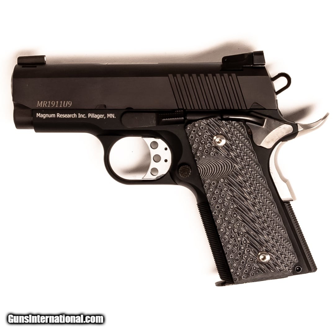 Description: Guns Listing ID: 641330 More than qualified for personal protection, the Magnum Research MR1911U9 is a slimmed-down 1911 chambered in 9mm. It is exceptionally well-built and chock full of features. This MR1911U9 is in excellent condition! Three 7-round magazines are included. SOLD Manufacturer: MAGNUM RESEARCH Model: MR1911U9 Caliber Info: 9MM LUGER (9X19 PARA) Condition: Used - Certified Barrels: 3 barrel Finish: BLACK |