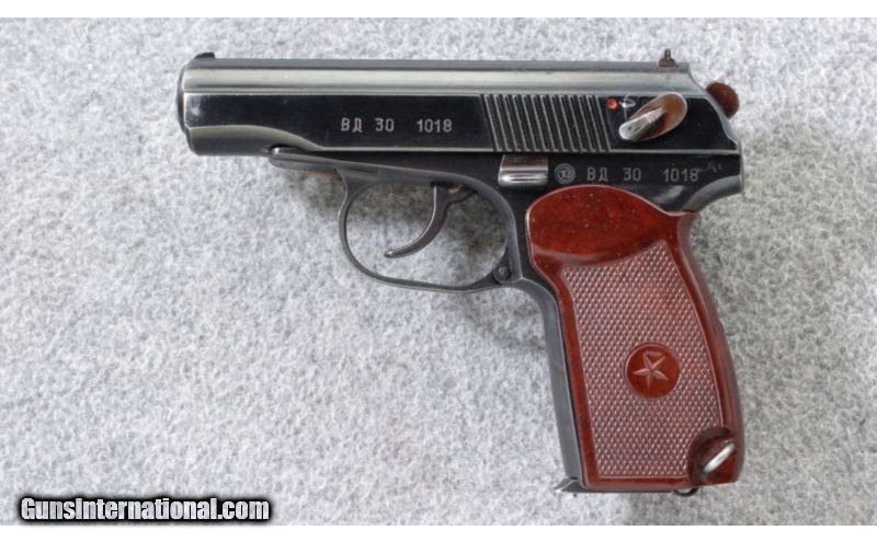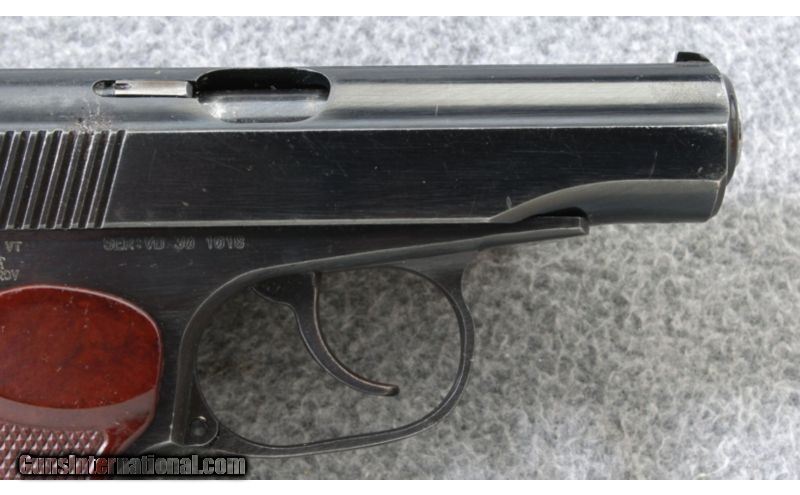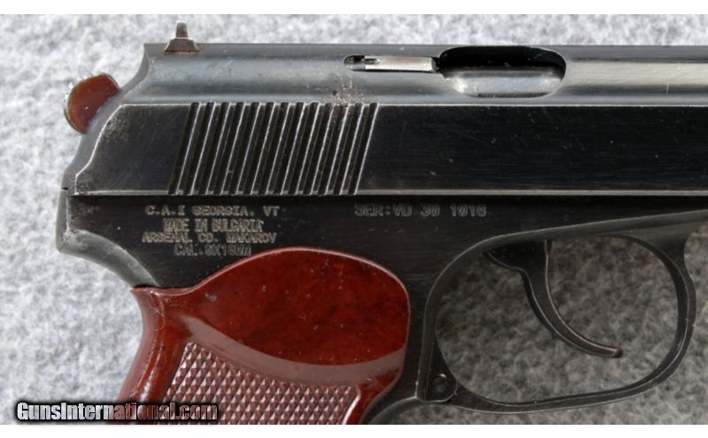 Description: This Makarov 9x18mm was manufactured in the Bulgarian Arsenal plant. It comes with an 8 round magazine. SOLD Manufacturer: 1990 Caliber Info: 9x18mm Makarov Metal Condition: Fair with some pitting, edge wear and scratches Bore Condition: Very good, sharp and bright Barrels: 3 5/8 inch barrel Triggers: Double/ single action Stock: Wrap around red Bakelite grip Weight: 26 oz. Sights: Driftable square notch rear sight with blade front Item Location: Lehi, UT |