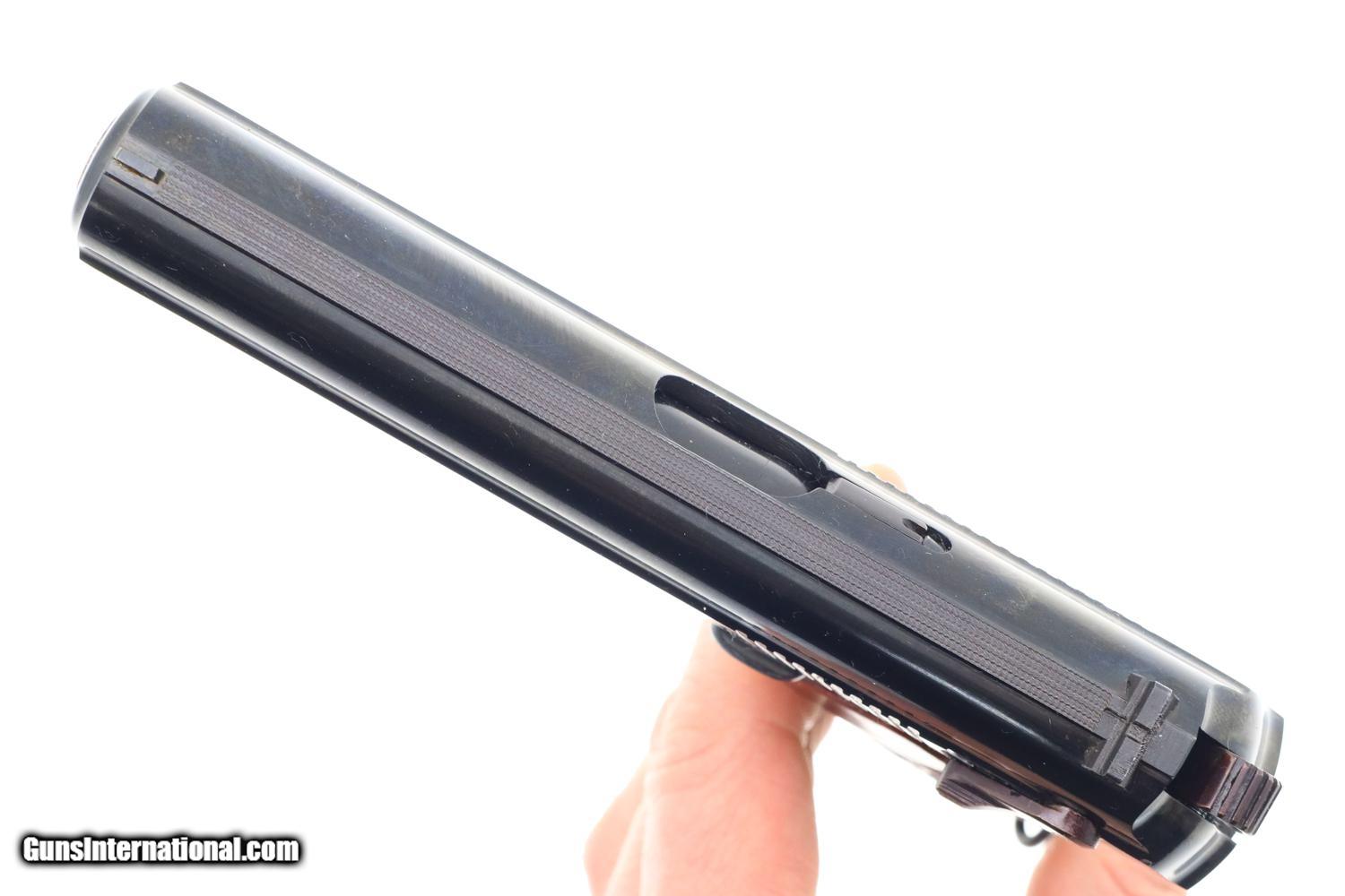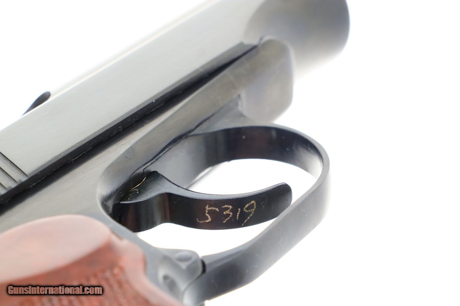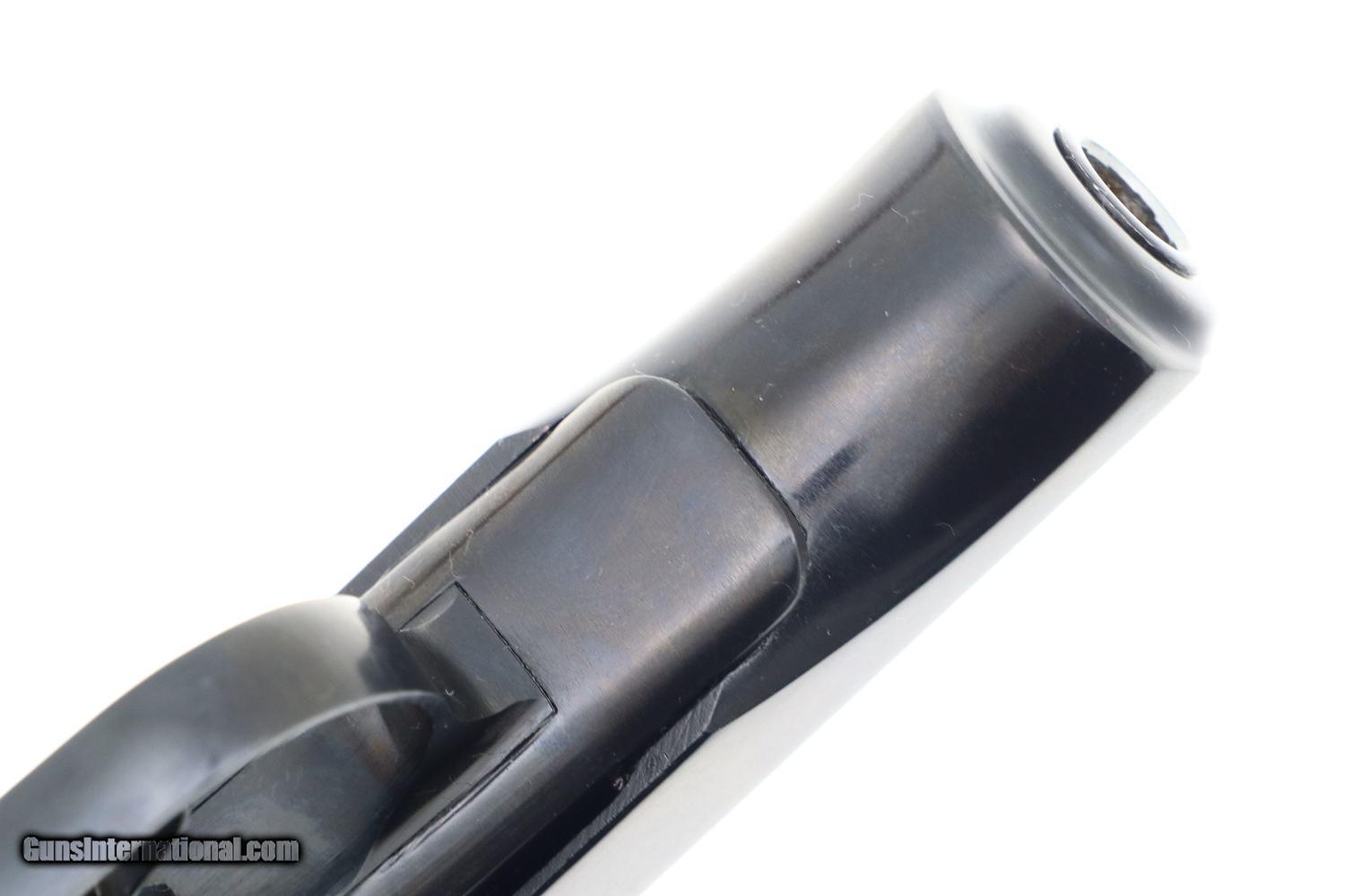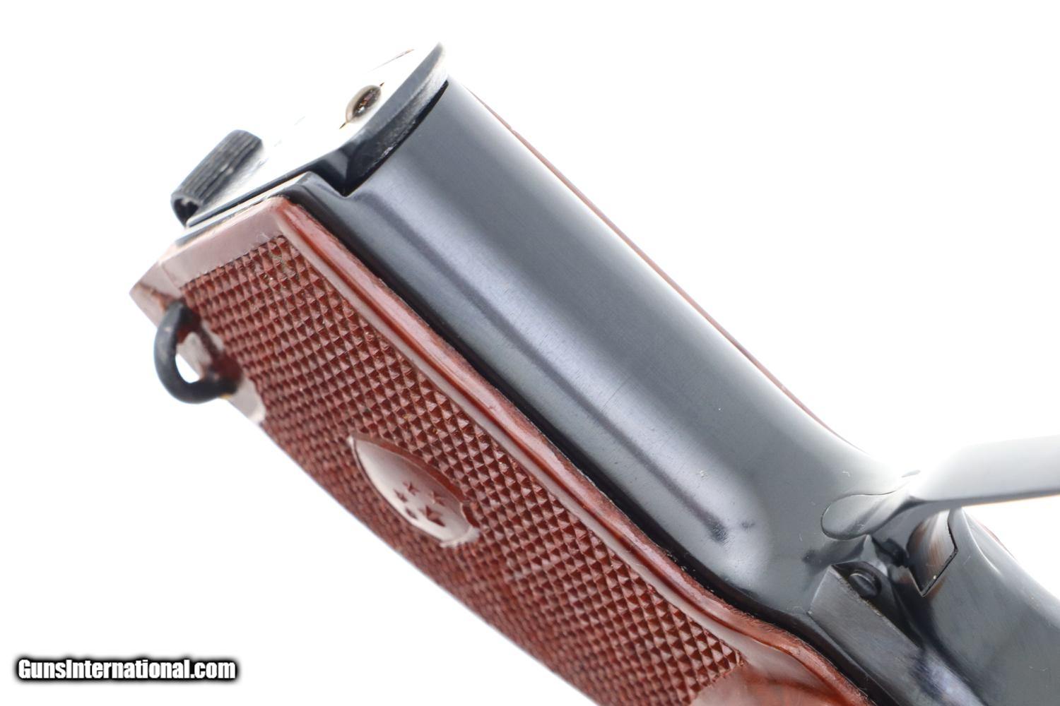 Description: Synopsis: Gorgeous, As New, Chinese Military Makarov, Two Factory Matching Magazines. Description: Beautiful, as new, standard configuration Chinese Military Makarov, cal 9mm, with two factory matching magazines. Pistol has fixed front sight and drift adjustable rear sight. Full serial number on left side of the slide, left side of frame, with the last four digits on the safety and electro-penciled on underside of trigger. Arsenal 66 marking on left side of frame, followed by “59SHI” denoting government issue Type 59. Single piece reddish maroon plastic grip with two checkered panels impressed with Shield adorned with five, 5-pointed stars. Two factory matching magazines, numbered on floorplate: primary mag with matching number, spare mag with an additional subnumber “1”. Condition: As new original blue with comparable condition grip and both magazines. Mirror bore. Perfect manual mechanics with each magazine. A virtually new Chinese Military Makarov pistol, with two matching factory magazines that would be impossible to upgrade!!!! ~~Insured shipping fee of $65; most packages shipped using FedEx 2nd Day.~~ SOLD Manufacturer: Chinese Serial Number: 4045319 Caliber Info: 9mm |