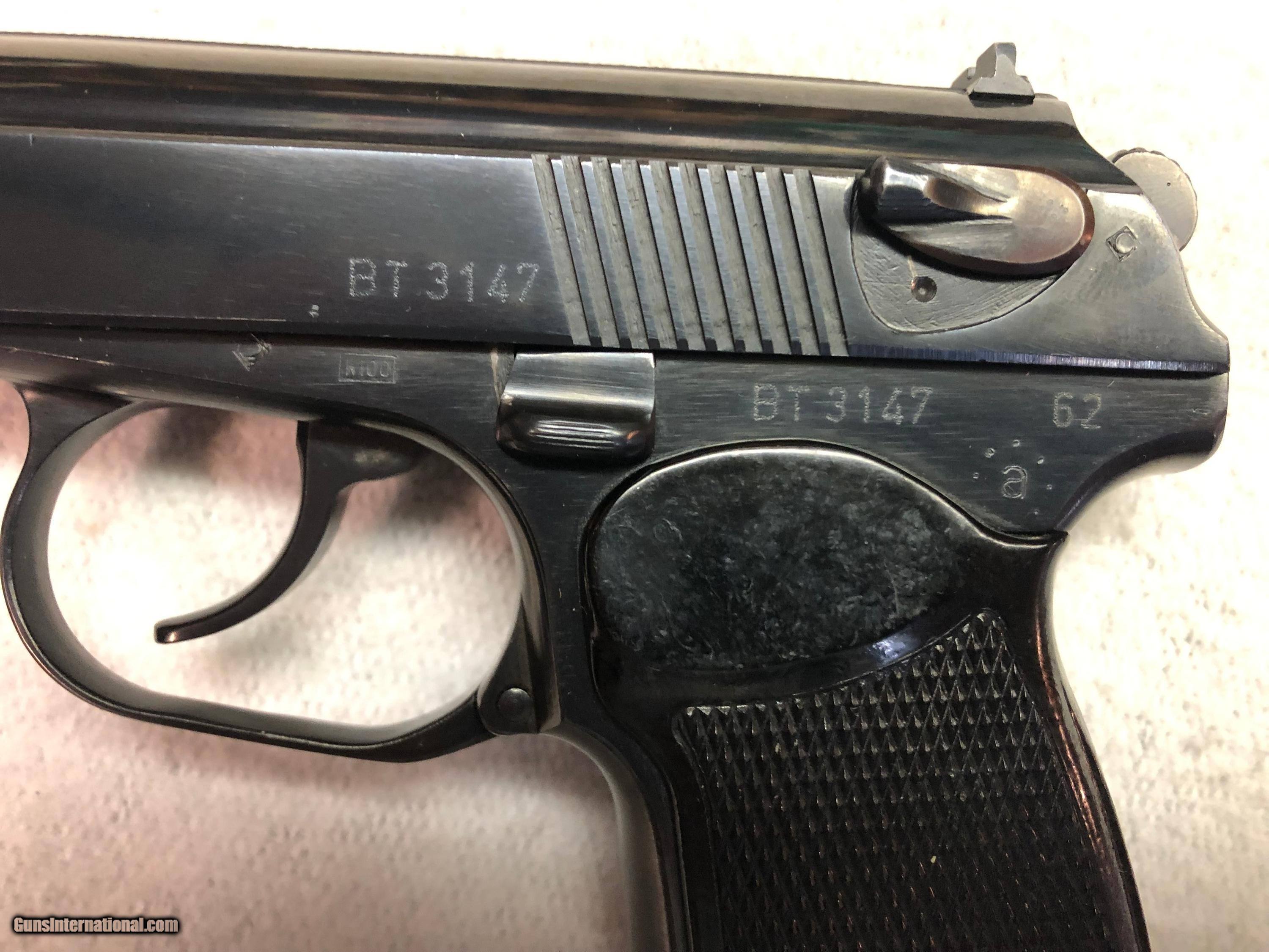 Description: East German military surplus with import mark. Ernst Thaelmann 9X18 Makarov pistol with two 8rd magazines and a Military holster. This set appears to be unissued and unfired. It is dated 1962 with S/N - BT3147. Excellent condition. I also have a 1,000rd case of Mesko Brass 9x18 FMJ available. S/H for the pistol is $35 to the Con US, 4% C/C Fee SOLD Handgun Caliber: 9x18mm Makarov Manufacturer: Ernst Thaelmann Model: M Serial Number: BT3147 Condition: Excellent |