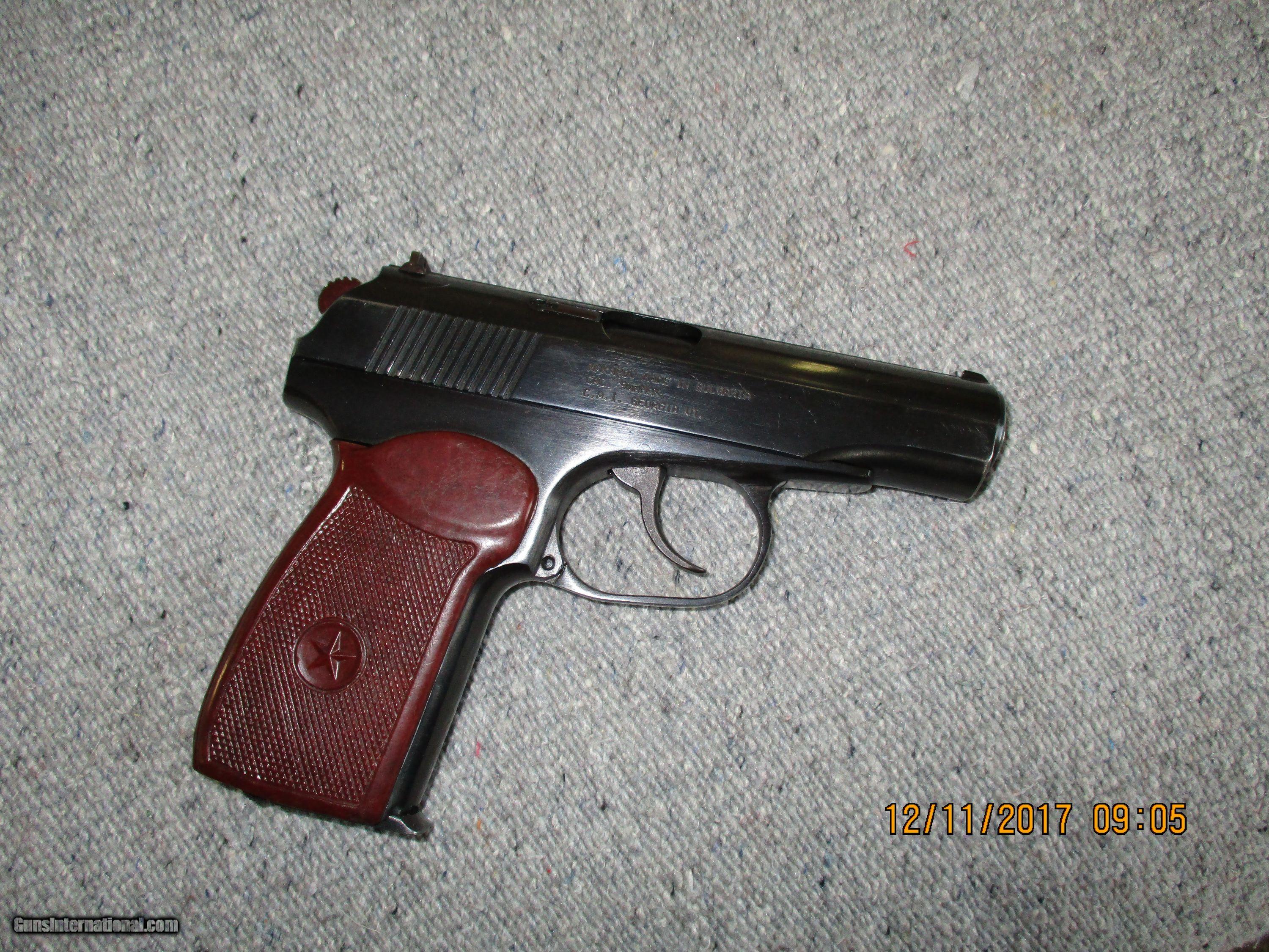 Description: MAKAROV PISTOL IN 9X18 CALIBER . MADE IN BULGARIA . WELL MADE GUN IN EXCELLENT CONDITION . LOOKS LIKE IT WAS NOT FIRED BUT A FEW TIMES . $400 CALL 928 606 7624 SOLD |