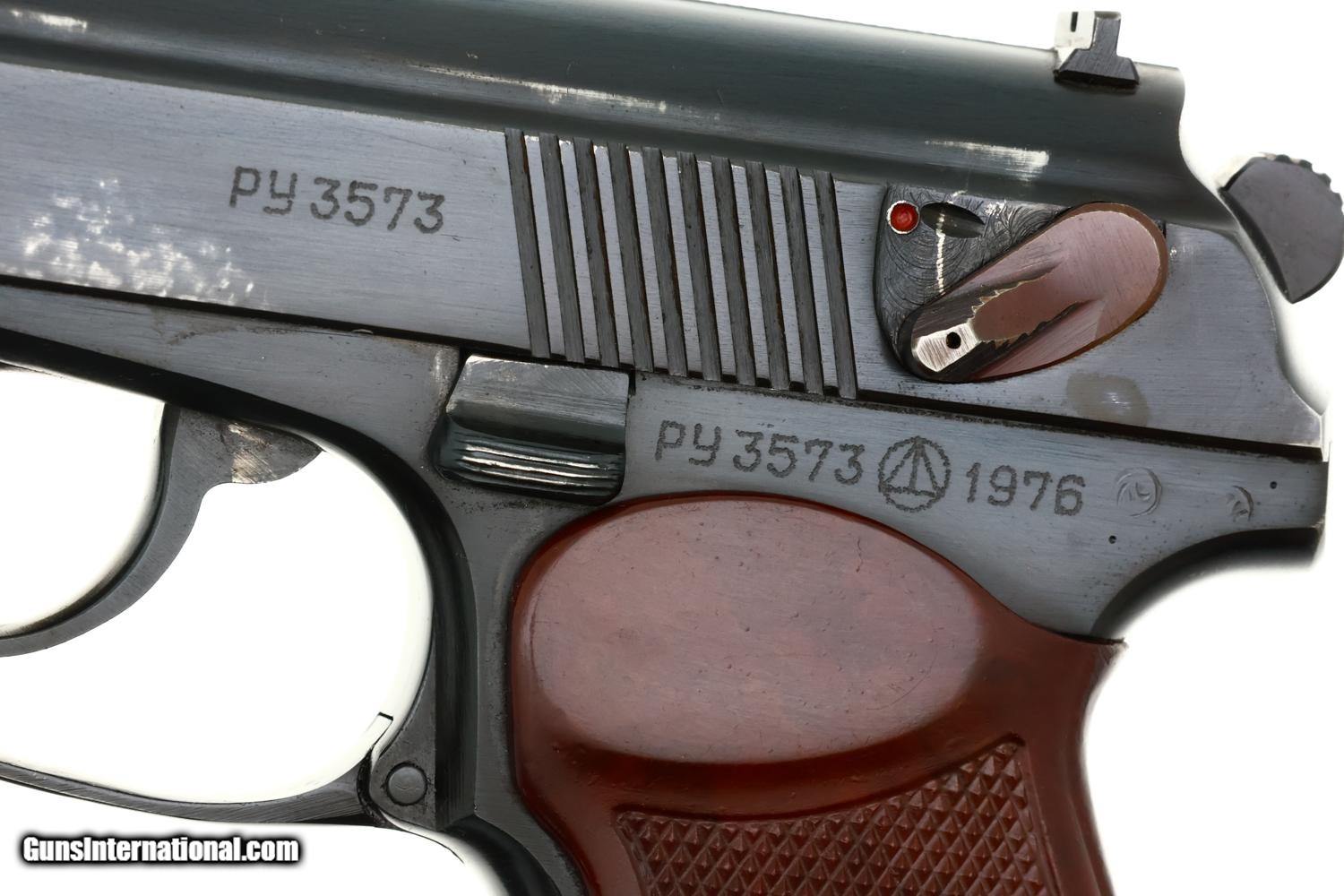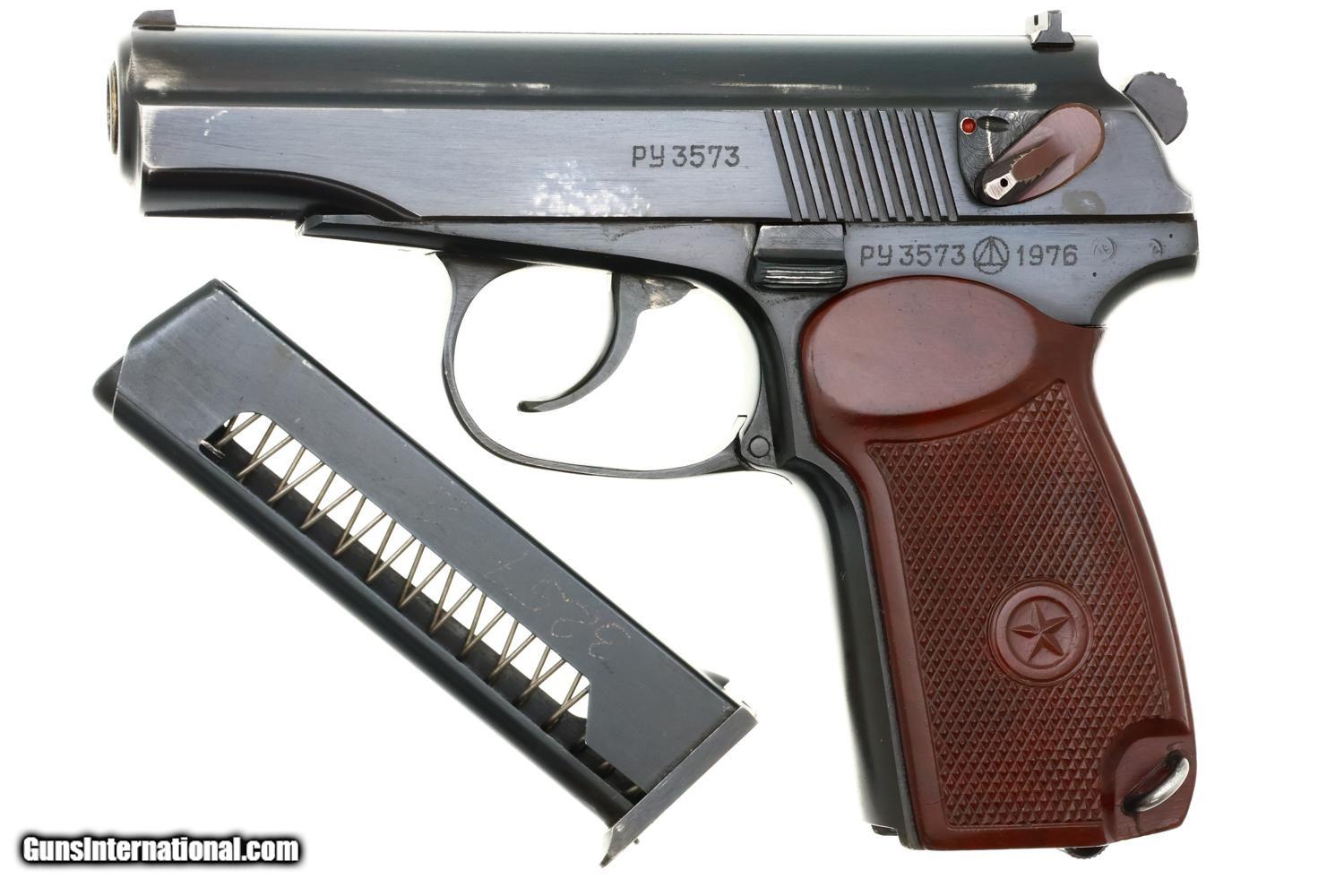 Classic Russian military Makarov PM pistol made at Izhevsk Arsenal in 1976 with late style magazine, mirror bore, and correct manual mechanics.