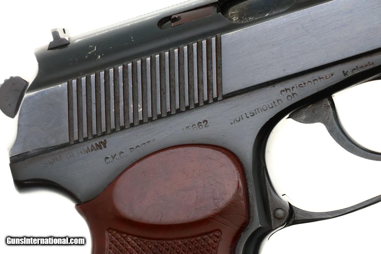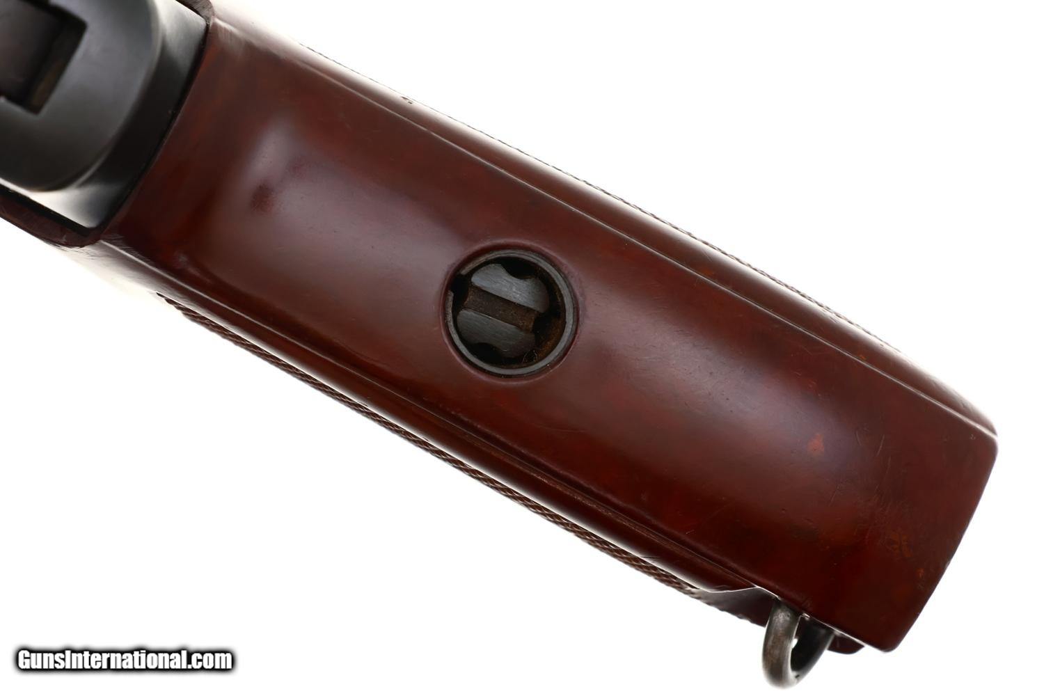 Description: Synopsis: Classic Russian military Makarov PM pistol made at Izhevsk Arsenal in 1976 with late style magazine, mirror bore, and correct manual mechanics. Description: Standard configuration Makarov with fixed front sight and drift adjustable rear sight. Full serial number on left side of slide and left side of frame followed by Izhevsk Arsenal marking and manufacturing date of “1976”. Early configuration plum-toned safety and late, Bulgarian-style magazine electropenciled "3257-2". Import markings as imaged. Single piece reddish maroon plastic grip with two checkered panels impressed with encircled 5 pointed star and fixed lanyard loop. Condition: VG original salt blue with light carry wear as reflected by the rub marks around the muzzle, over crest/left side of slide, and a slight dulling of the front strap. Comparable condition grip with blunted checkering. Excellent magazine with minor insertional wear. Mirror bore. Correct manual mechanics. Curio/Relic: Yes Manufacturer: Izhevsk Arsenal Model: Makarov Serial Number: 3573 Caliber Info: 9mm Condition: VG Price: $995.00 Contact Seller |