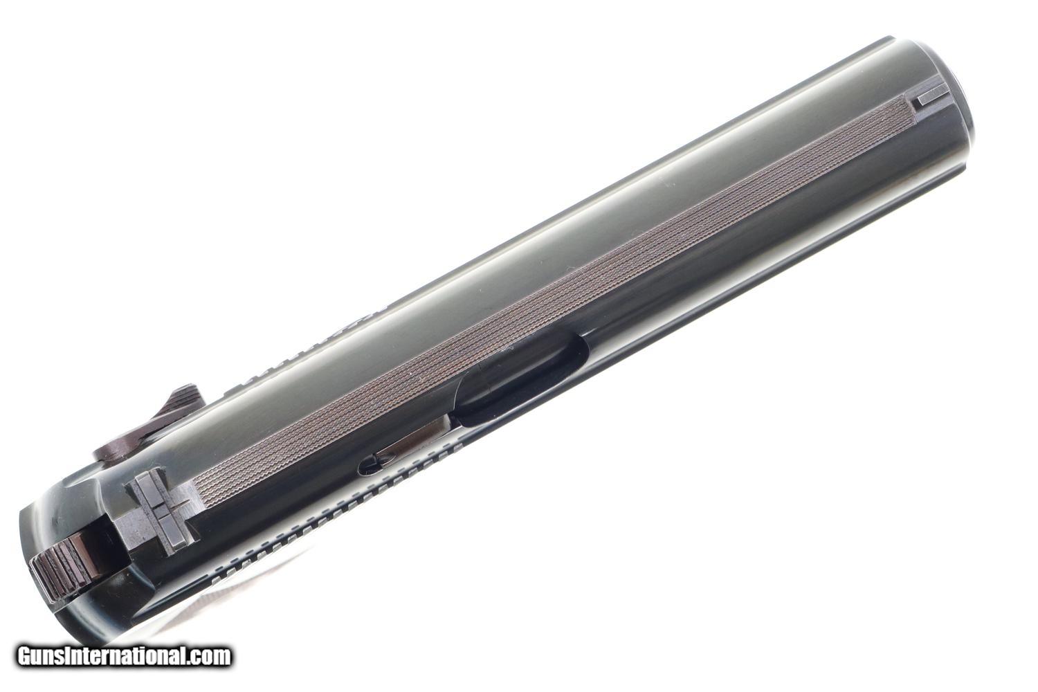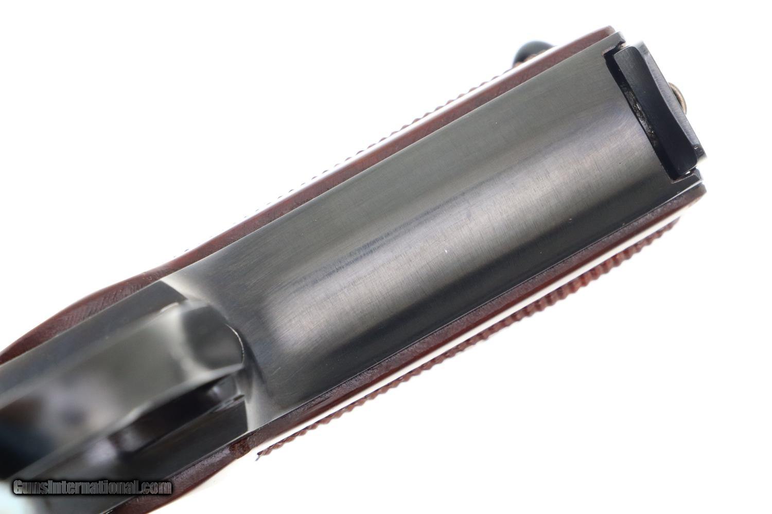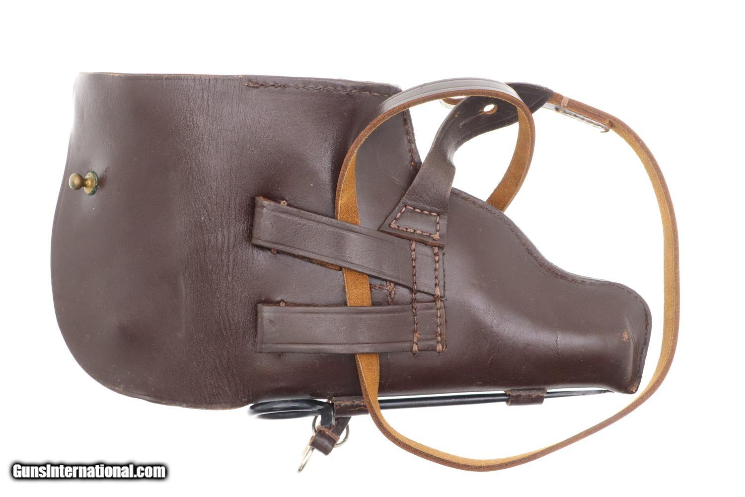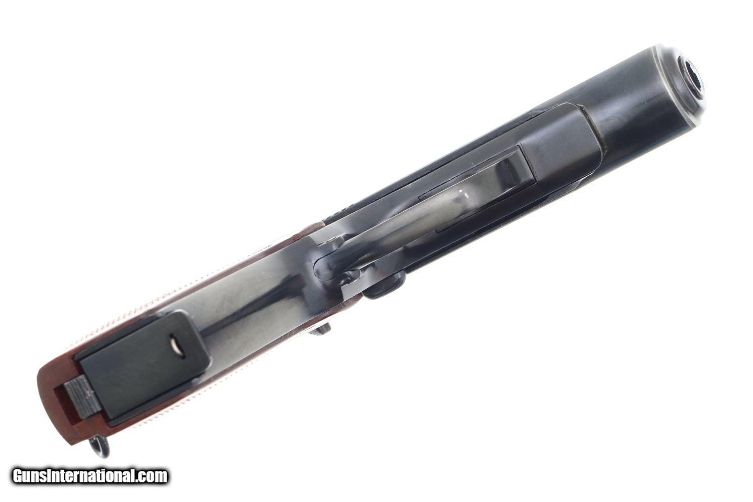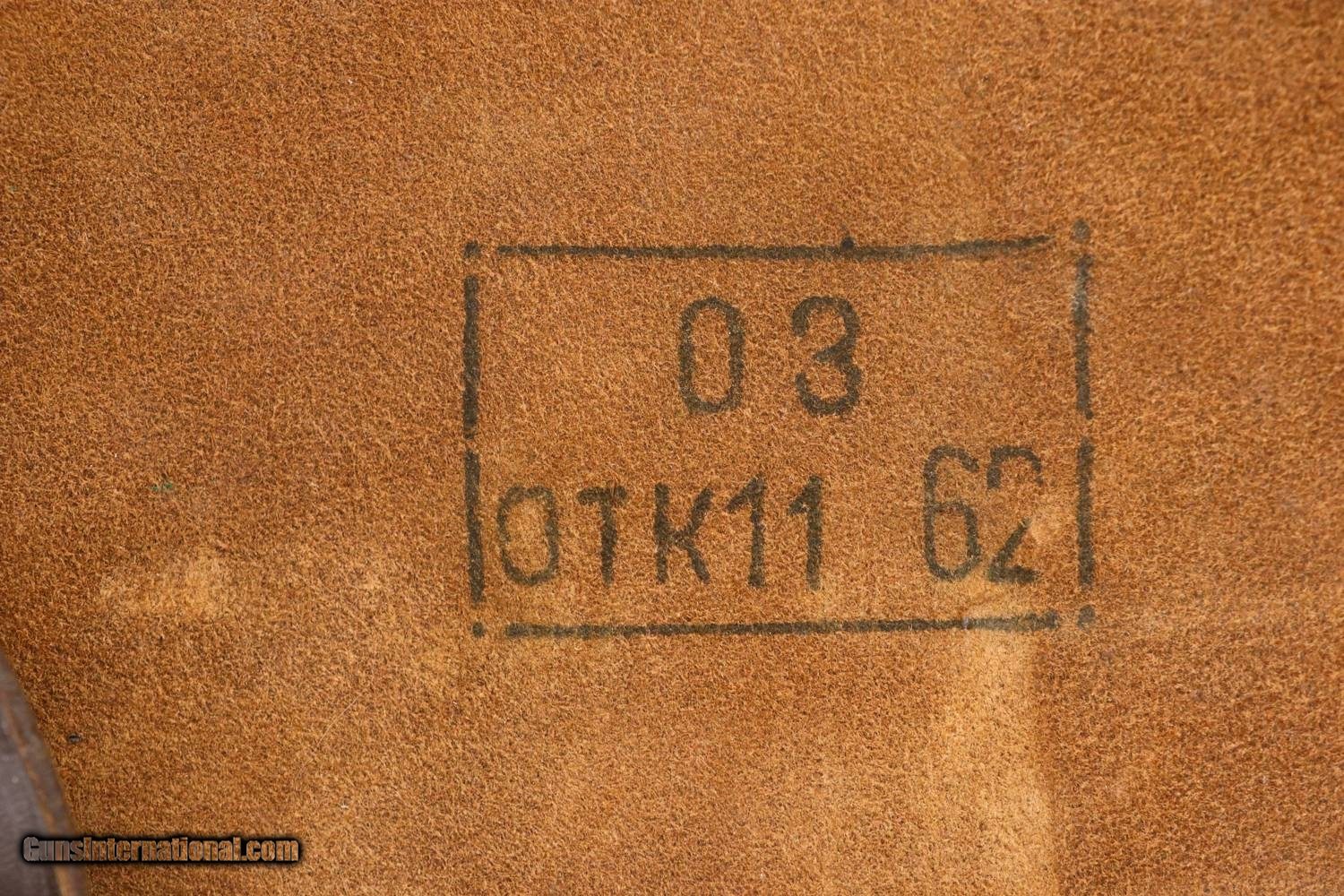 Description: Synopsis: Extraordinary Russian, Cold War Makarov, dated 1962, with two matching magazines and matching dated Russian Holster. Description: Gorgeous standard configuration Makarov, dated 1962, with fixed front sight and drift adjustable rear sight. Soviet Arsenal marking on left side of frame along with manufacturing date of "1962”. Standard configuration plum colored safety and two early factory matching Russian magazines. Single piece reddish maroon plastic grip with two checkered panels impressed with encircled 5 pointed star. Complete with matching dated holster with cleaning rod and straps. Condition: 99% bright original salt blue with just trace sharp edge wear at the muzzle. Mirror bore. Perfect manual mechanics with both magazines. A gorgeous and all original example with two matching magazines and NO IMPORT MARKS! Impossible to improve upon! ~~Insured shipping fee of $75; most packages shipped using FedEx 2nd Day.~~ SOLD Manufacturer: Soviet Union Serial Number: HK5921 Caliber Info: 9mm |
