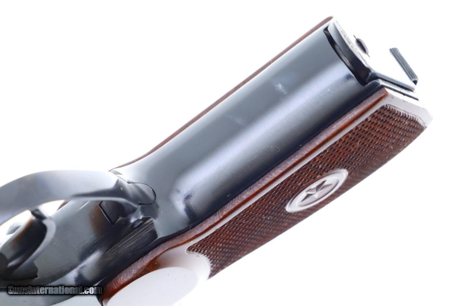 Description: Synopsis: Russian Makarov, Military, Izhevsk, 1975 Date, 3408, FB00483 Description: Standard configuration Makarov with fixed front sight and drift adjustable rear sight. Izhevsk Arsenal marking on left side of frame along with manufacturing date of "1975”. Import marked on right side of frame. Standard configuration safety and early Russian style unnumbered magazine. Single piece reddish maroon plastic grip with two checkered panels impressed with encircled 5 pointed star. Condition: 99% bright original salt blue with minuscule handling marks as imaged. Bright bore. Perfect manual mechanics. SOLD Manufacturer: Izhevsk Model: Makarov Serial Number: 117746P Caliber Info: 9mm Condition: EXC |