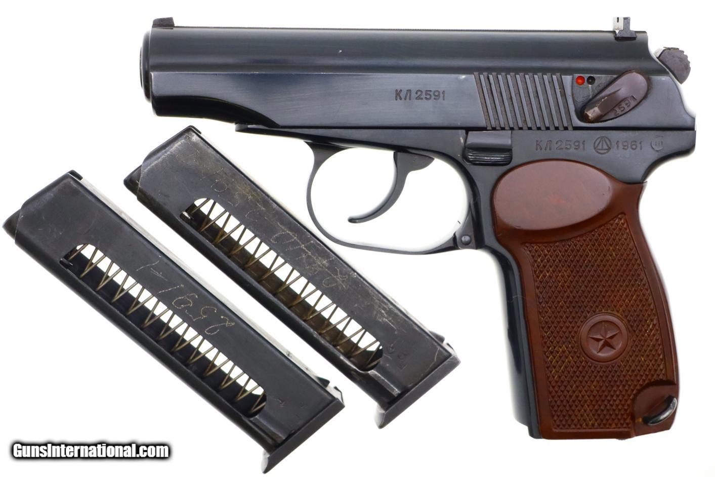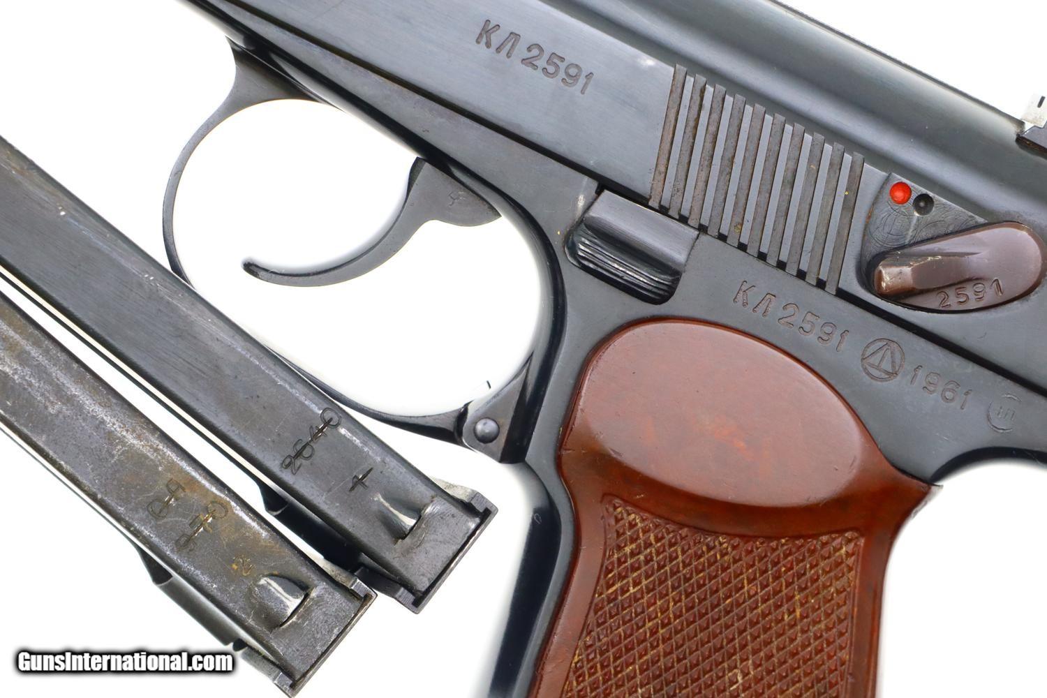 Pistol is a bright original 98% salt blue with comparable condition grip. Reworked magazines as previously detailed. Mirror bore. Perfect manual mechanics with each magazine. A high condition, early production Makarov with a difficult to find date, now with two reworked to match magazines.