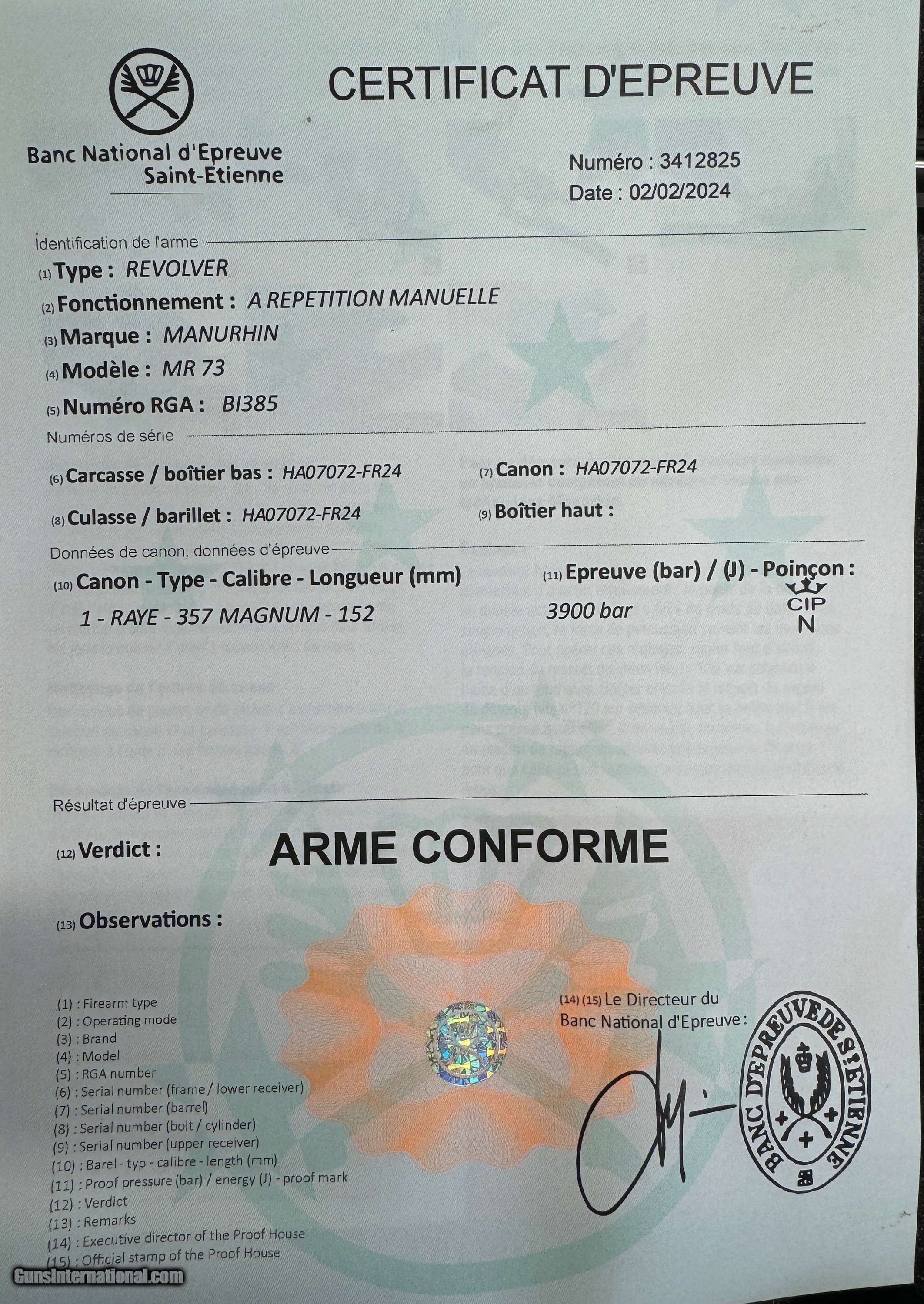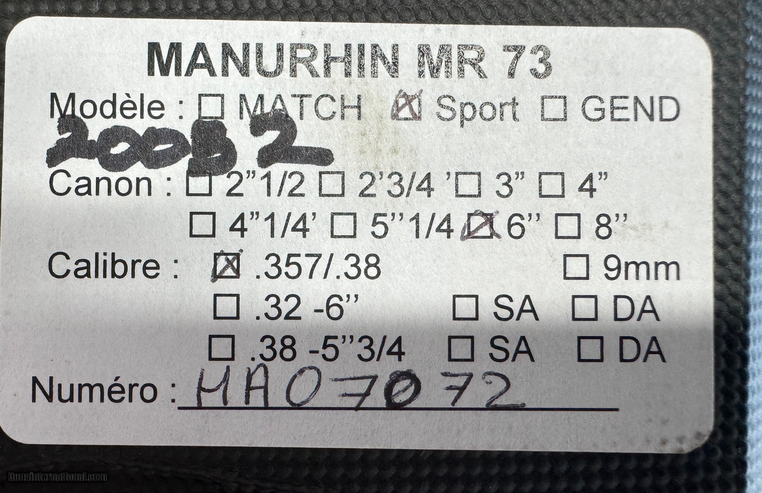 Manurhin MR 73 Sport .357 Mag. 6” Barrel. Just arrived from Beretta. Factory new. Gun is very reflective and difficult to photograph.