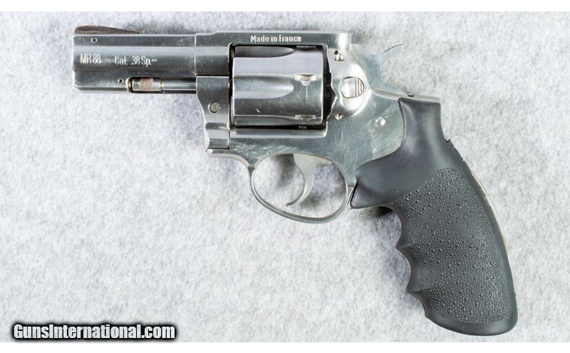 Description: Manurhin MR88 revolver chambered in .38 Special. Metal is rated as "Very Good" with scratches and scuffs apparent to the surface. Bore is excellent. .38 Special SOLD Metal Condition: Very Good Bore Condition: Excellent Barrels: 3" Barrel Triggers: Double Action Butt Pad: Hogue Rubber Grips Sights: "Fixed Front Ramp, Fixed Notch Rear Item Location: short pump |