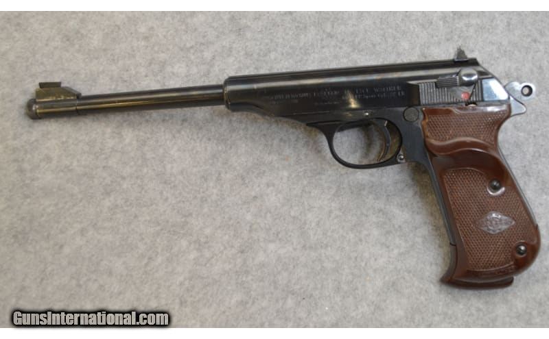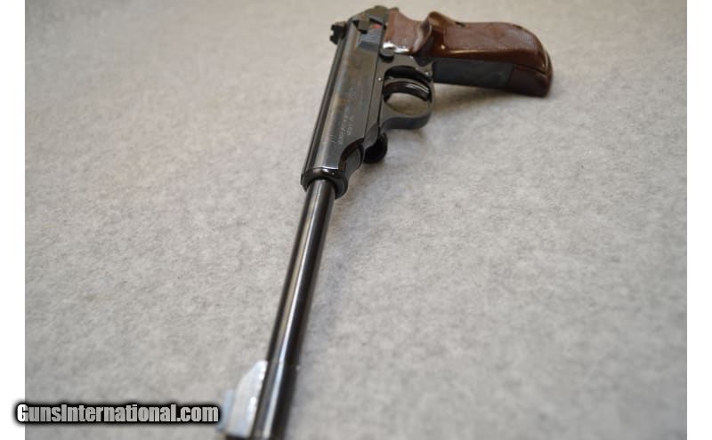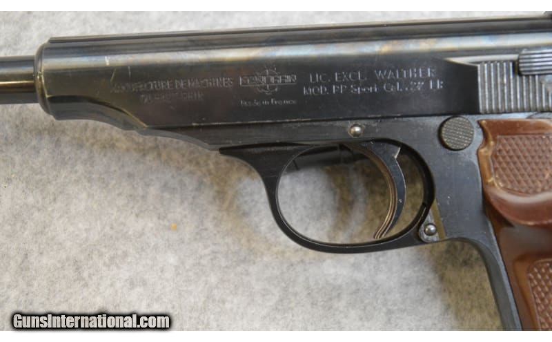 Description: Manurhin Model PP Sport 22LR Semi Auto Pistol in good condition. Fitted with the much rarer long 8 inch target barrel with bright sharp bore. Comes with one 10 round magazine, and adjustable or removable rear sight. This manurhin PP Sport would make a great addition to a collection or an extremely accurate and reliable sporting pistol. .22 Long Rifle SOLD Metal Condition: Good Bore Condition: Excellent Barrels: 7" barrel Weight: 4.5 lbs Sights: Adjustable rear sight Item Location: Huntsville, AL |