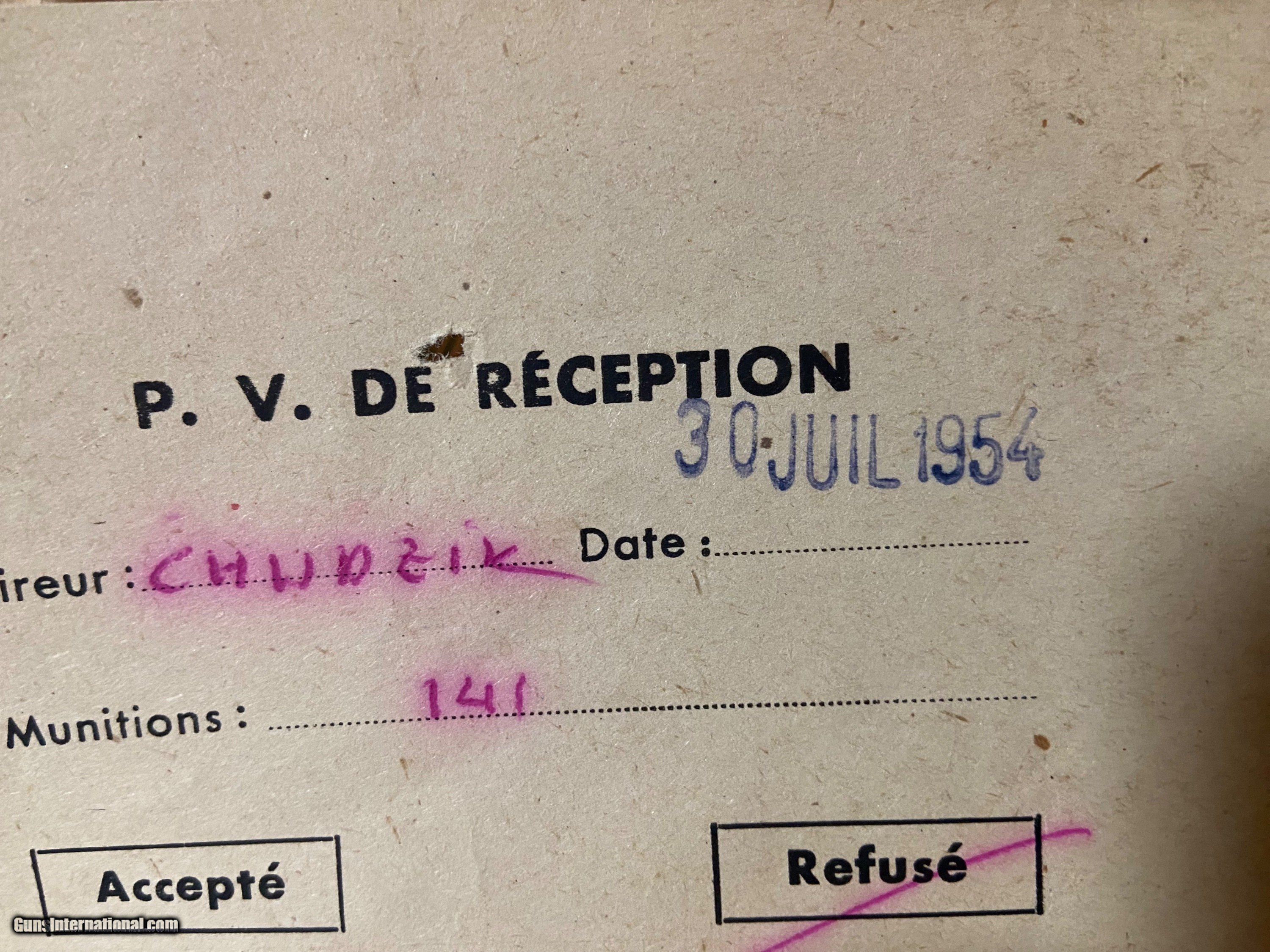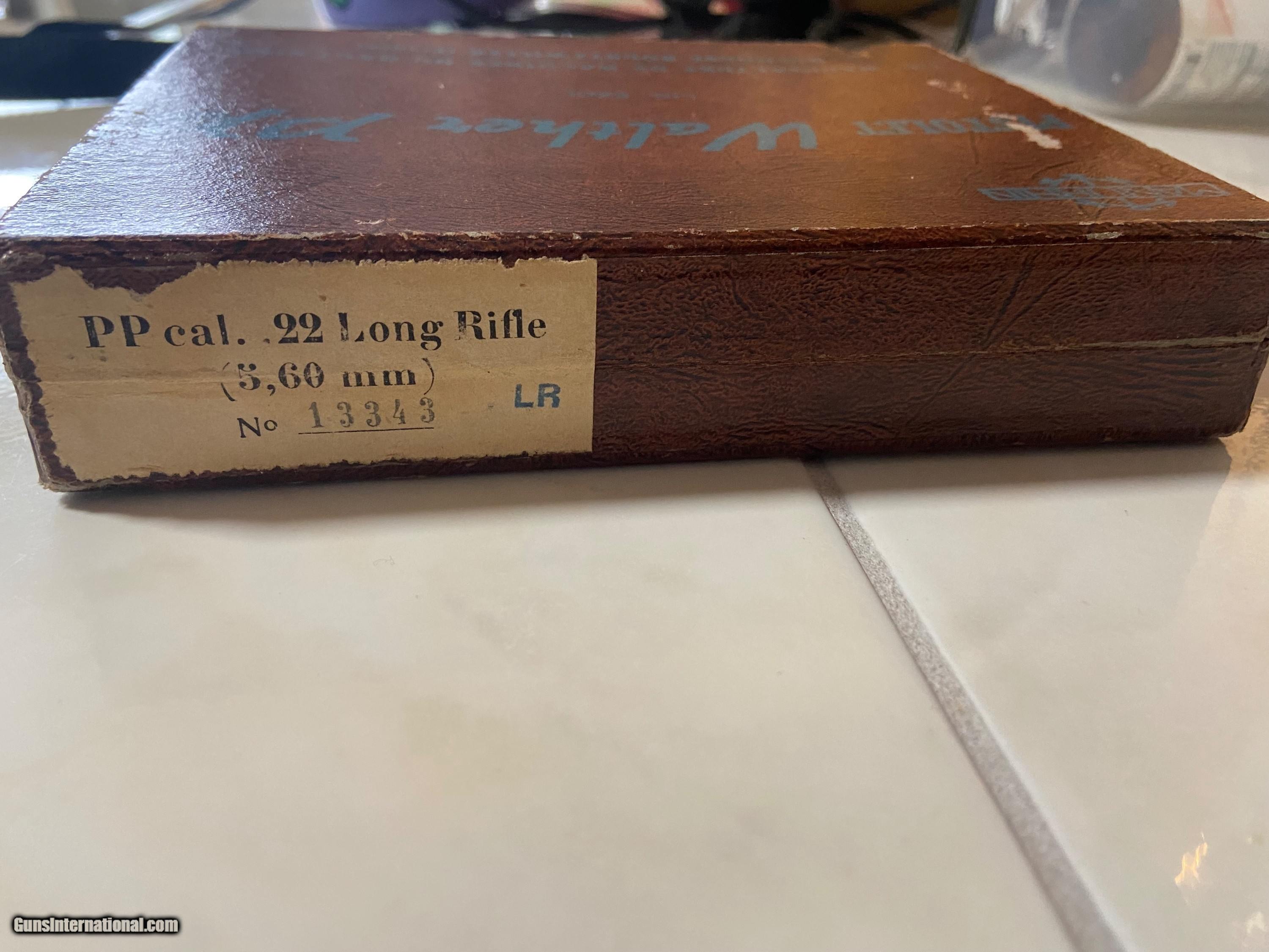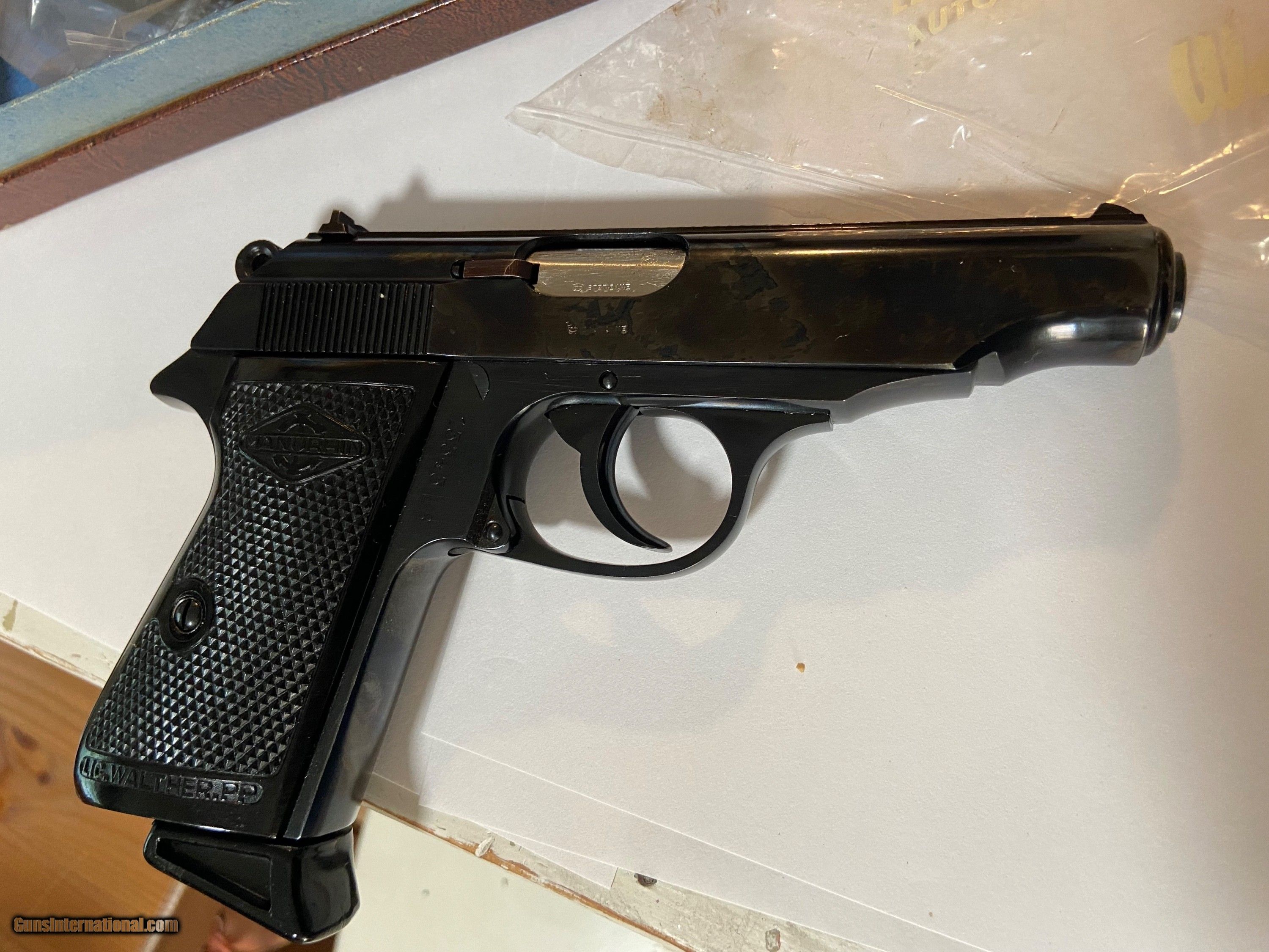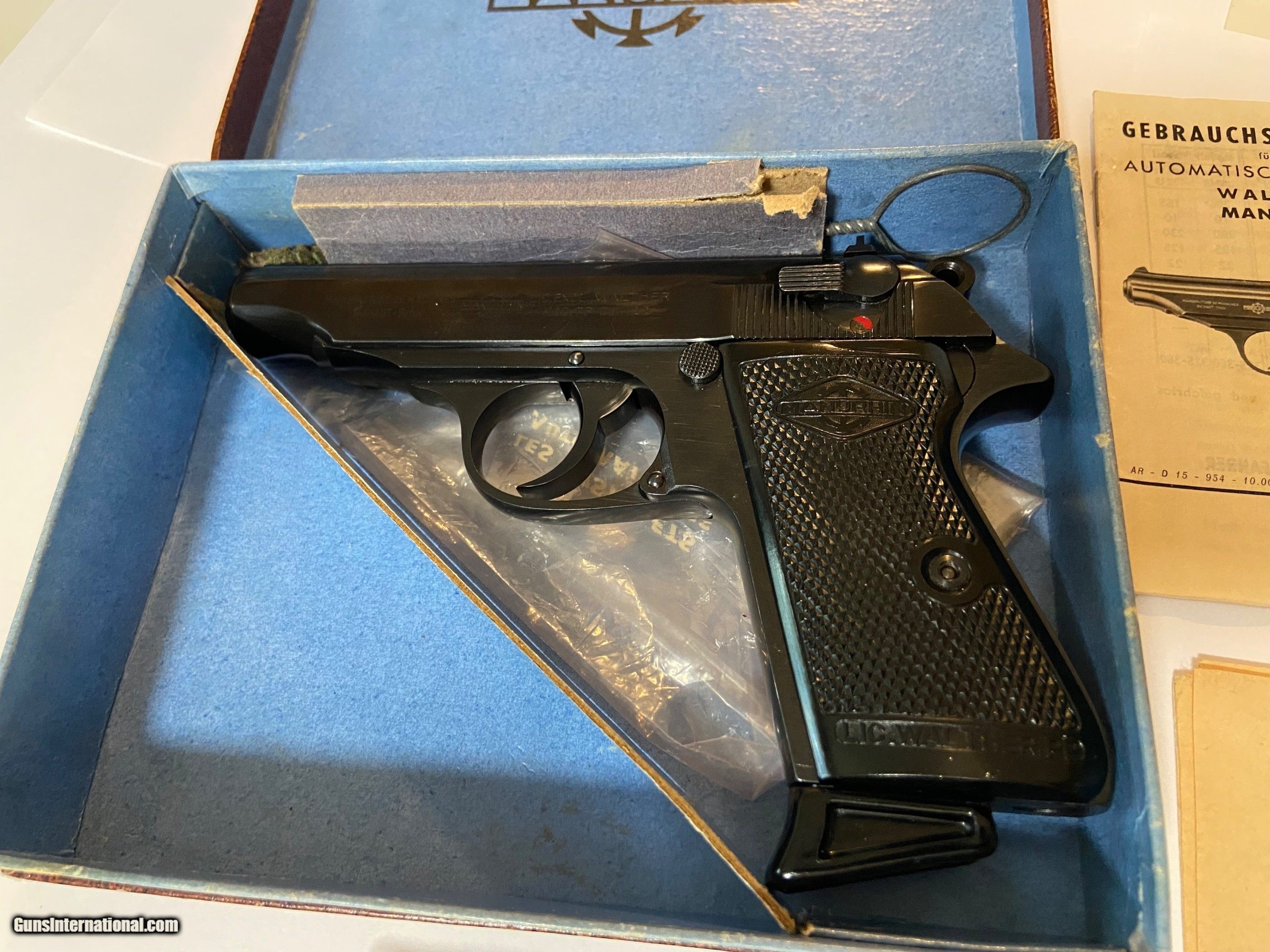 Description: A 1954 first year post war French Manurhin Walther pp 22lr, complete in original box, with target (dated), paperwork, and the original printed plastic gun shaped Manurhin bag... gun may be unfired, looks new, he two original mags, and whatever else it was shipped with new.... Curio/Relic: Yes Handgun Caliber: .22 Long Rifle Manufacturer: Manurhin Model: Walther pp Serial Number: 13343 Condition: Excellent Metal Condition: Excellent Finish: Blued Manufacture Date: 1954 Price: $2,200.00 Shipping: $50.00 Contact Seller |