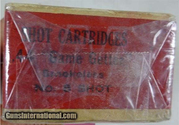 Description: WINCHESTER MARBLES GAME GETTER AMMO, 44 CALIBER SHOT CARTRIDGES. FULL BOX OF 50, TWO PIECE BOX WITH RED ALL AROUND LABEL. THE CARTRIDGES ARE CLEAN AND CRISP. BOX AND LABEL ARE EXCELLENT. HARD TO FIND A BETTER EXAMPLE. $500.00 + $15.00 Insured UPS ground shipping to a US address. See all Pats listings We also have hundreds of pieces of ORIGINAL gun company advertising & memorabilia available for sale. We have no reprints or reproductions. Email for more information. SOLD |