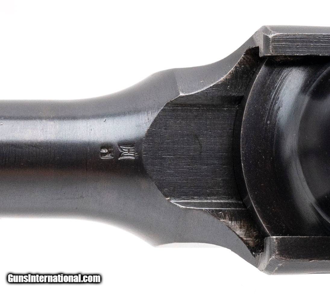 Description: "Serial number 132062. Made circa 1911-1915. 7.63 Mauser caliber with a 5.5" barrel. This is a fantastic example of a Siamese contract Broomhandle Mauser. Approximately 98% of the original blue remains. The gun is marked on the bottom of the trigger guard and pm the back of the frame underneath the serial number with the Siamese Markings. This is a fantastic example! Curio/Relic: Yes Price: $7,950.00 Buy Now Contact Seller |