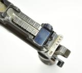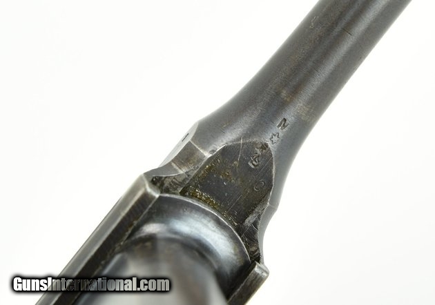 Description: Mauser 1896 9mm Mauser caliber pistol. Red nine Mauser. Right side vertical flat has German army acceptance stamp. Bore is very good, action works perfectly. Gun has correct “Rednine” grips. Matching numbers except bold stop (under rear sight) which is unnumbered. Very good plus with 95% blue.