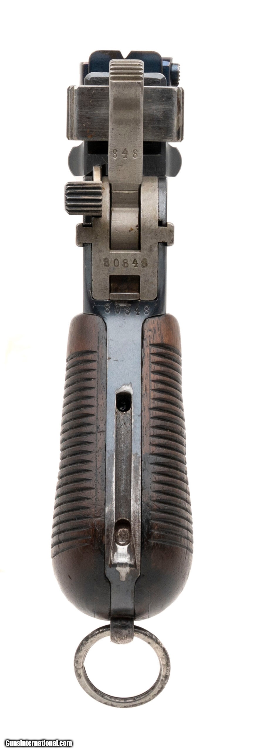 Description: "Serial number 80848. Made in 1905. 7.63 Mauser Caliber with a 5.5" barrel. This is an early Small ring hammer gun. The condition is excellent with 98% of the original finish. The grips are excellent as well. This gun is all matching SOLD Curio/Relic: Yes |