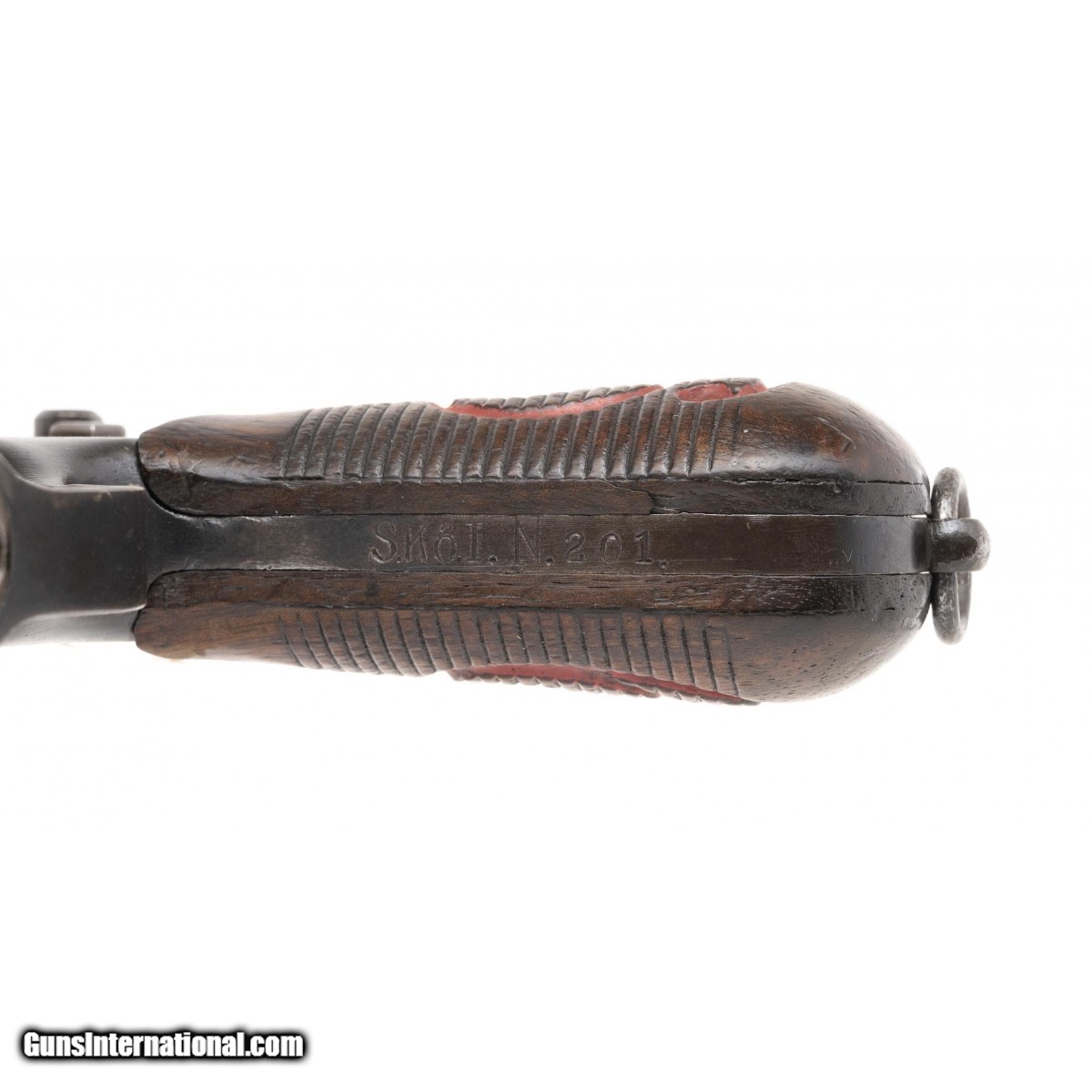 Description: " Weimar era police issued pistol. Front grip strap is marked ""S.KO.I.N.201."". (Schupo of Koln.) This variation has a 4"" barrel and fixed rear sight to conform to the Treaty of Versailles. Bore has strong rifling with some light frosting. Serial numbers are matching. Very good plus overall condition. A scarce police pistol. SOLD Curio/Relic: Yes |
