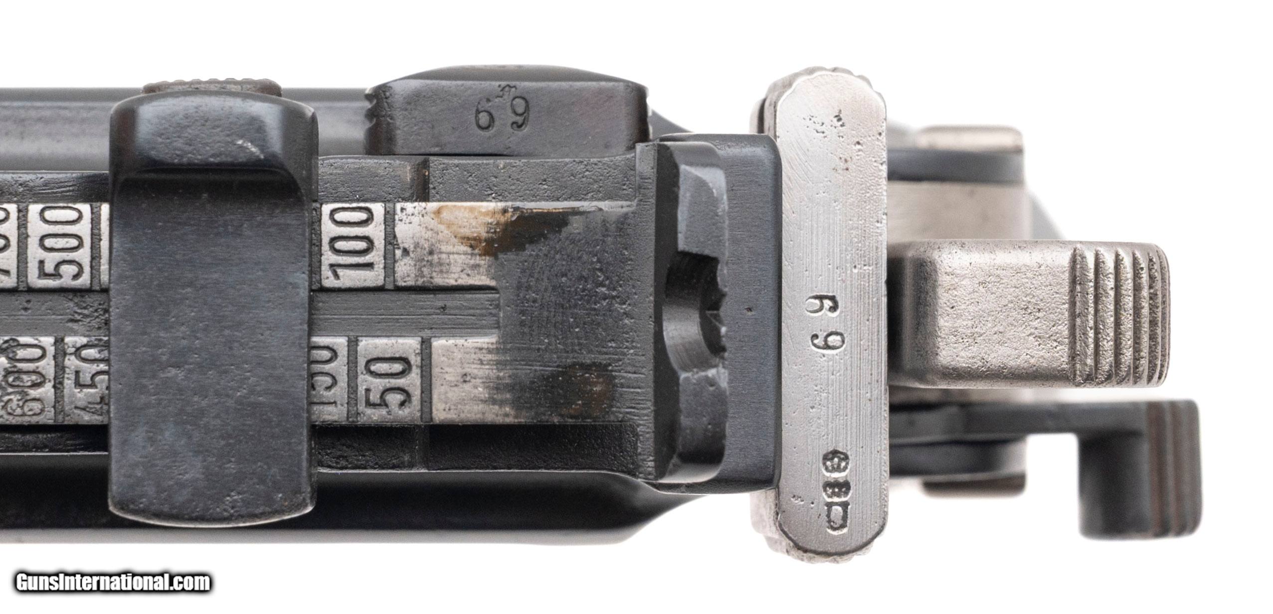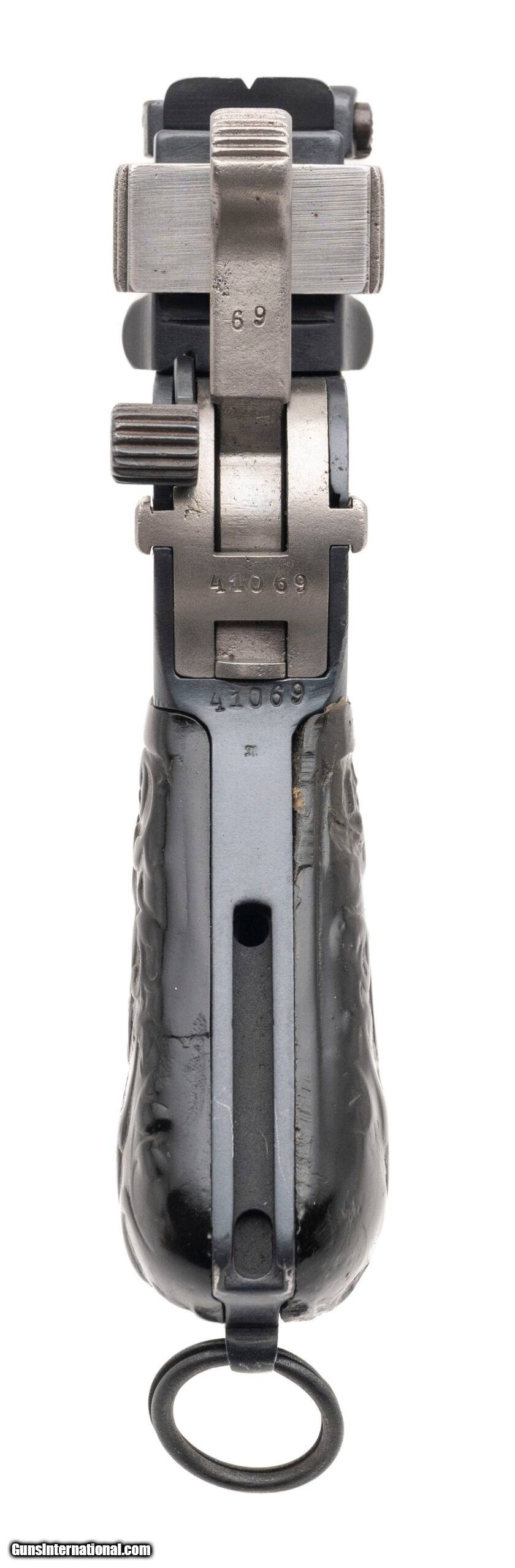 Description: "Serial number 41069. Made in 1905. 7.63 caliber with a 4" barrel. This gun has been nicely restored. The grips are carved gutta perchas. This gun comes with a very well-made holster that is currently production. Very attractive Broomhandle Mauser Bolo! Curio/Relic: Yes Price: $2,295.00 Contact Seller |