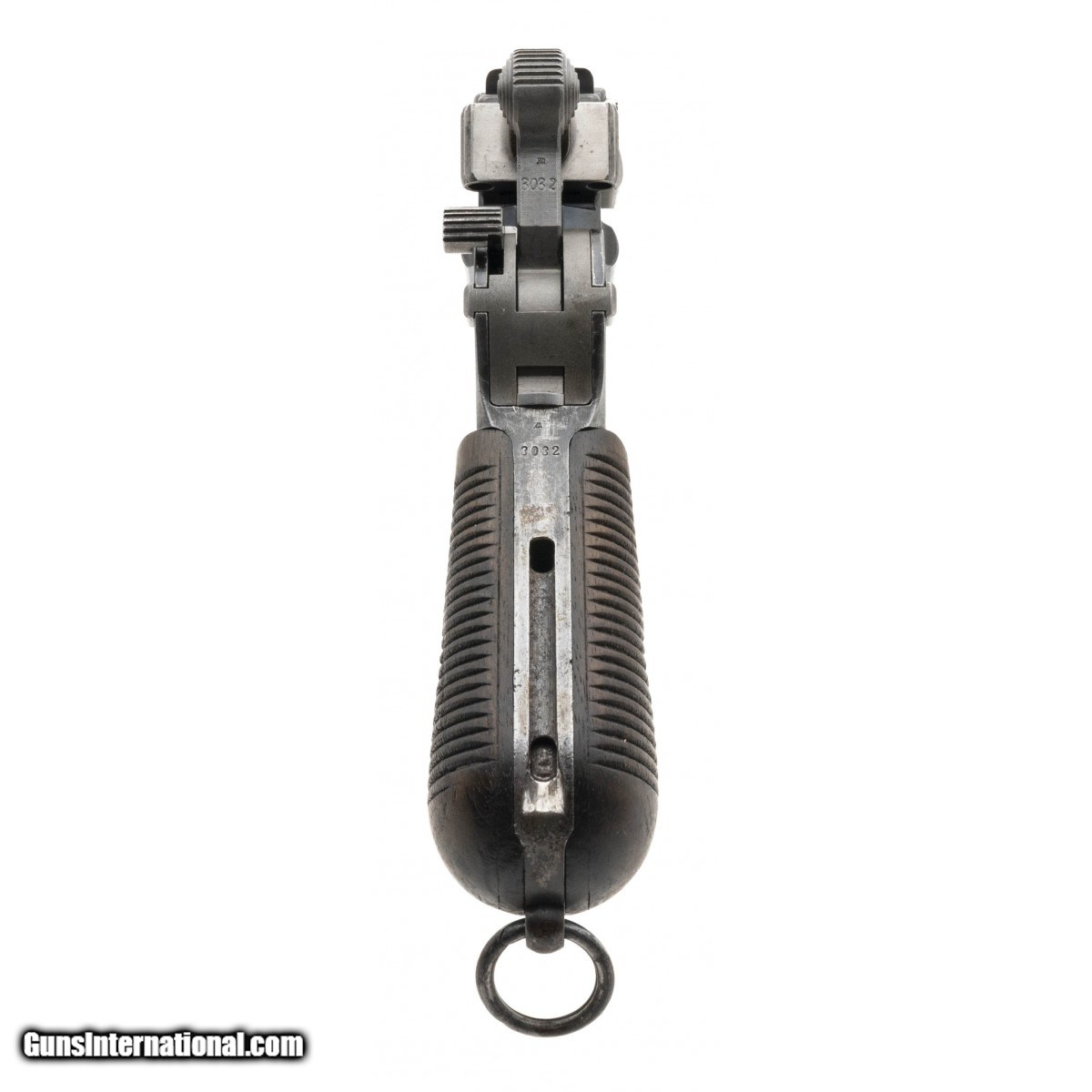 Description: " SN: 3032. Made in 1897, 7.63 Mauser caliber with a 5.5"" barrel. Bore is fair, dark with worn rifling. Antique Conehammer with matching number stock, has initials ""G.C.F."" inscribed on the frame. Has about 60% original finish with scattered blue loss. The stock has a crack on each side and is otherwise sound. A rare and desirable Mauser. Consignment. SOLD Antique: Yes |