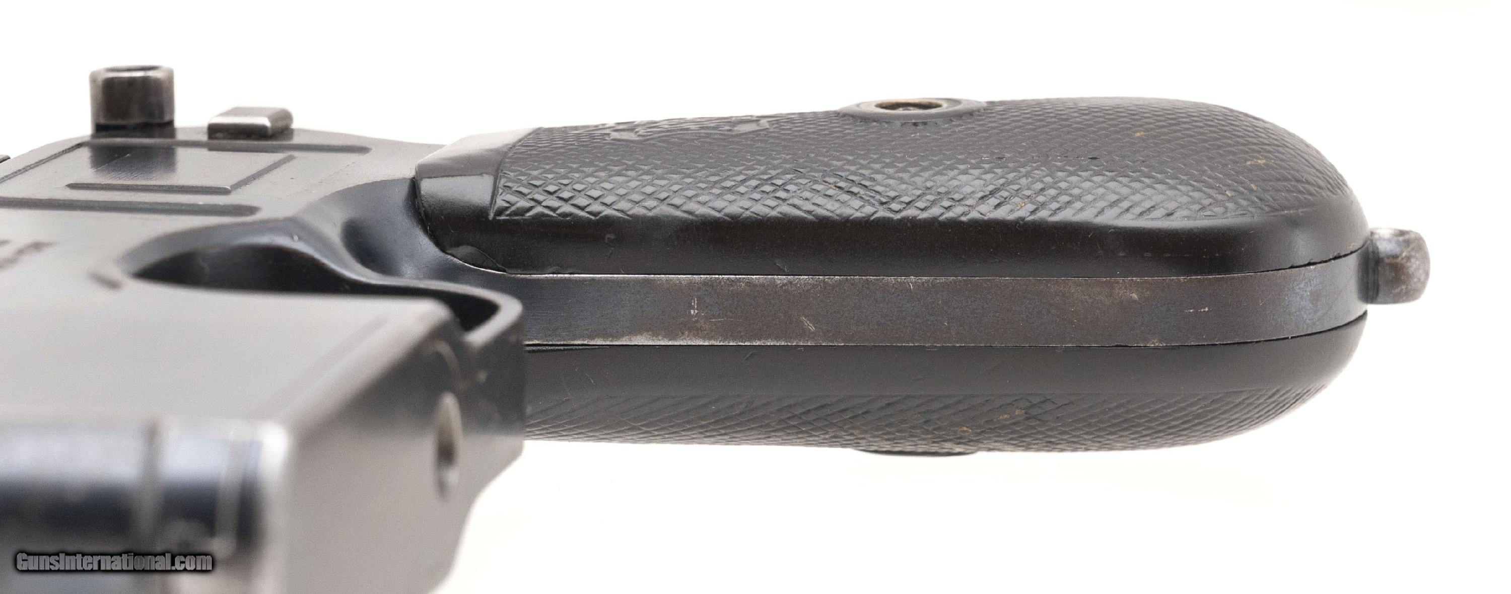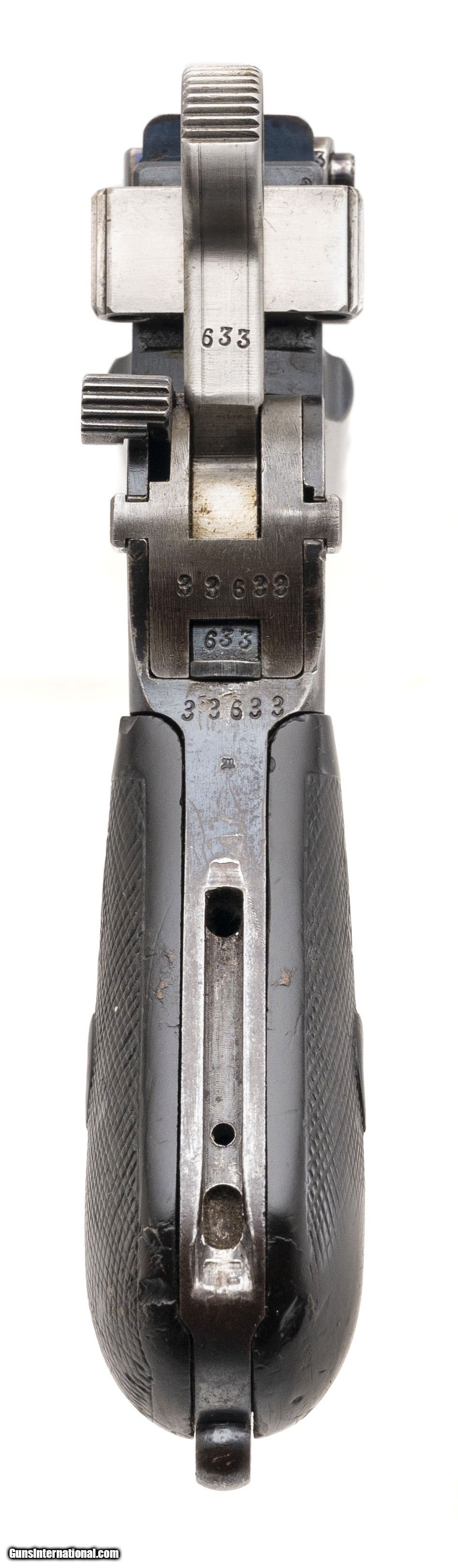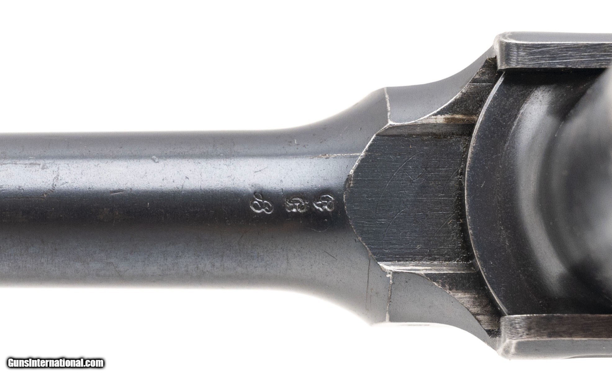 Description: "Serial number 33633. Made in 1903. 7.63 Mauser with a 5 ½" barrel. This is a fantastic example of a large ring Mauser Broomhandle with a shoulder stock. This gun has 90% + of the original blue finish. The left hand side of the frame is marked Von LengerKe & Detmold New York. This is a shallow milled frame. Grips are very good with light handling wear. Stock is very good! (DALLAS LOCATION) Curio/Relic: Yes Price: $7,500.00 Contact Seller |