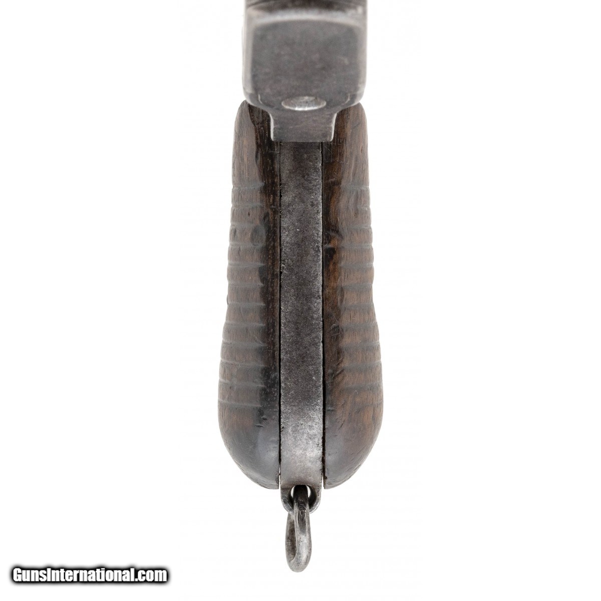 Description: " SN: 390820. Made circa 1915, .30 Mauser (7.63mm Mauser), 5.5"" barrel. Moderate pitting on barrel & rear sight assembly, dark bore & handling dings on original grips. Stock & leather mostly in tact & in overall fair condition. SOLD Curio/Relic: Yes |