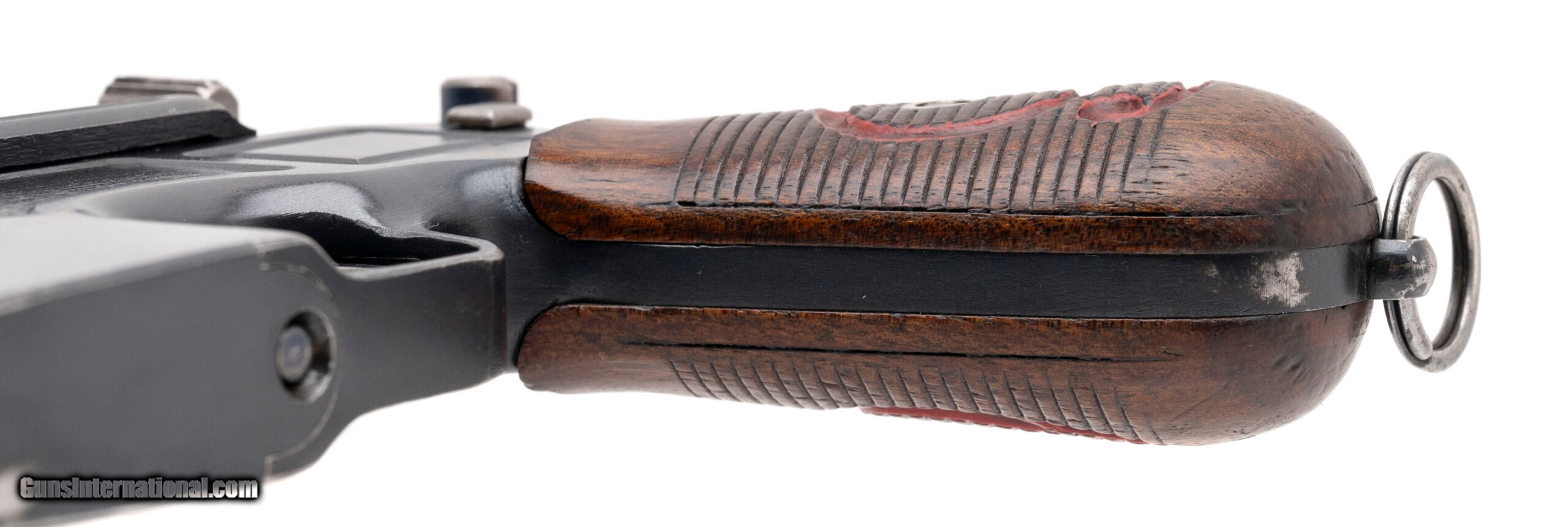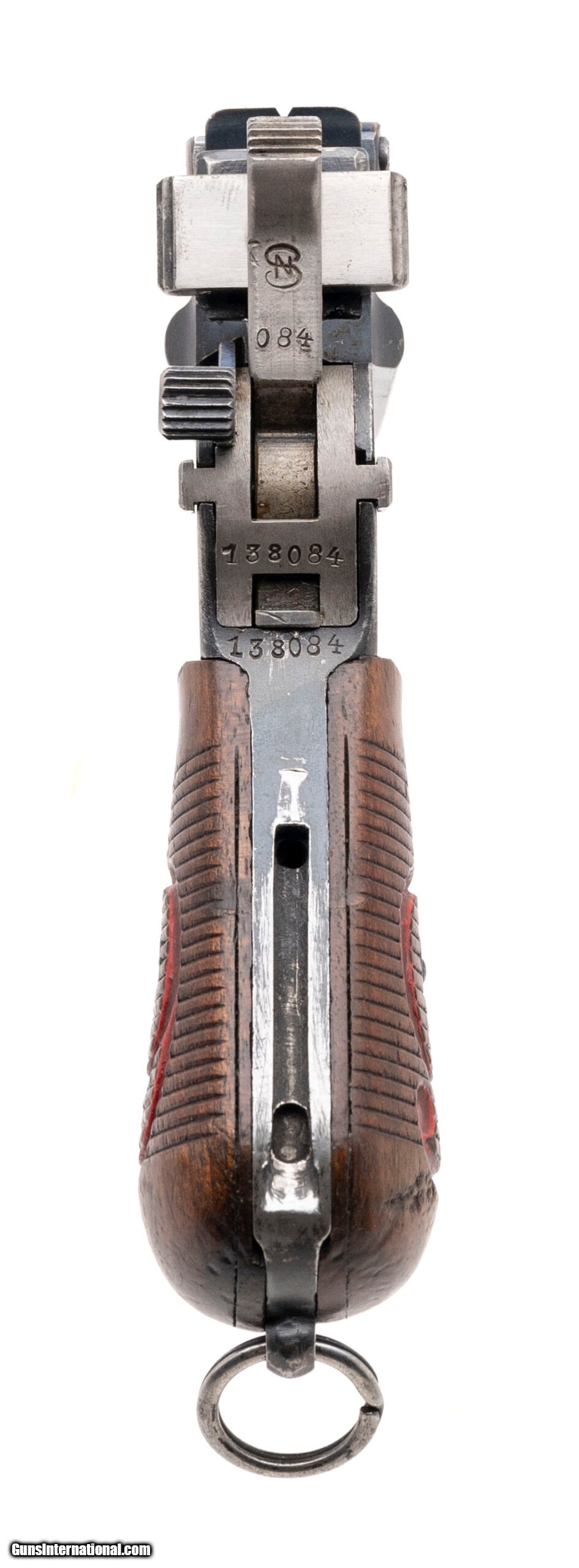 Description: "Serial number 138084. Made circa 1916-1918. 9mm with a 5.5" barrel This gun is in excellent original condition with approximately 98% of the original blue finish. The grips are excellent with most of the original red paint remaining. The last 10,000 guns in the Red 9 series were not issued and were sold commercially. This gun falls into the last part of those commercial Red 9s. Superb example! SOLD Curio/Relic: Yes |