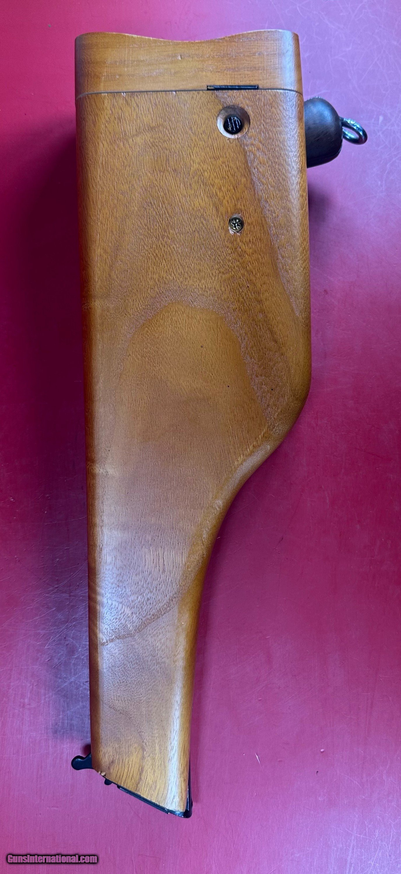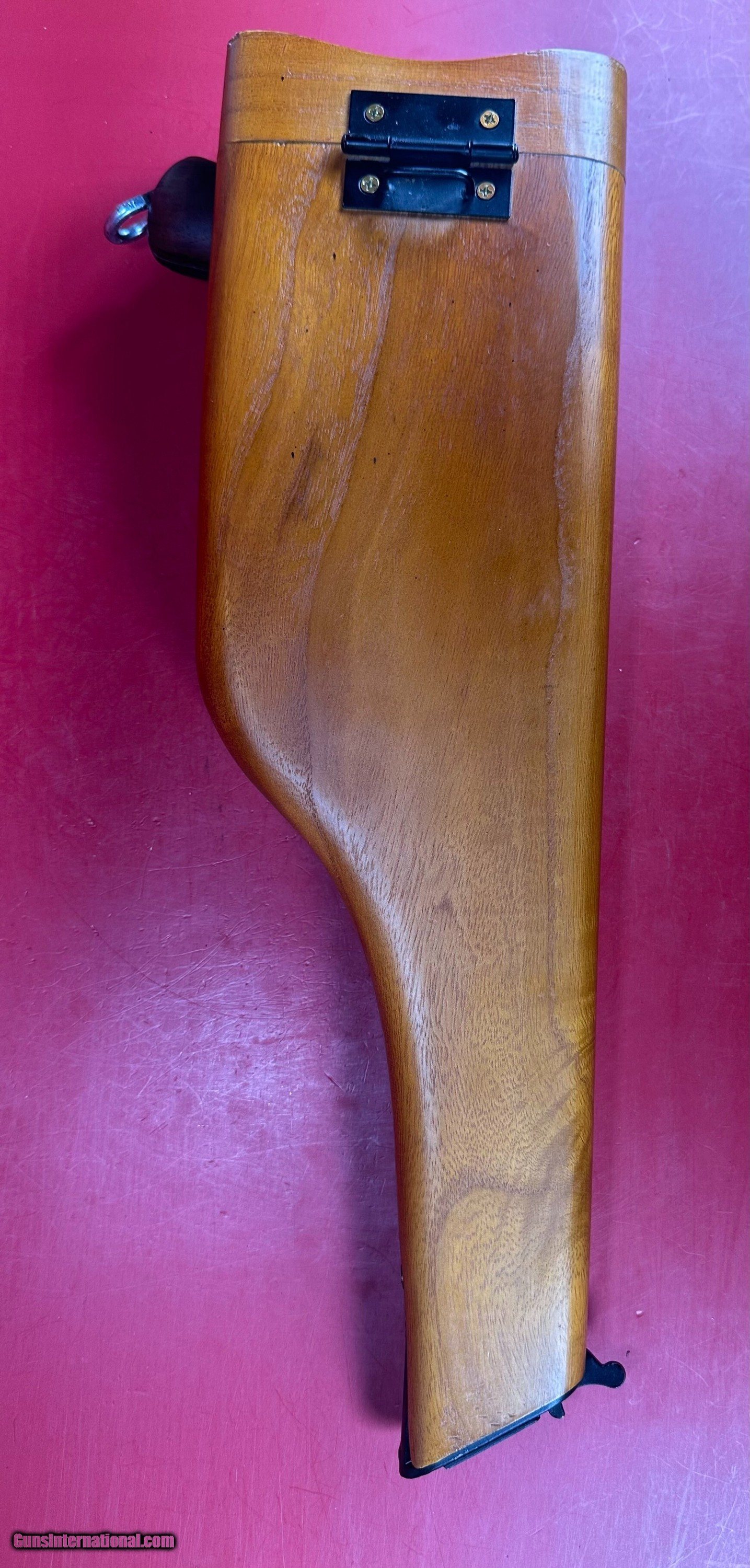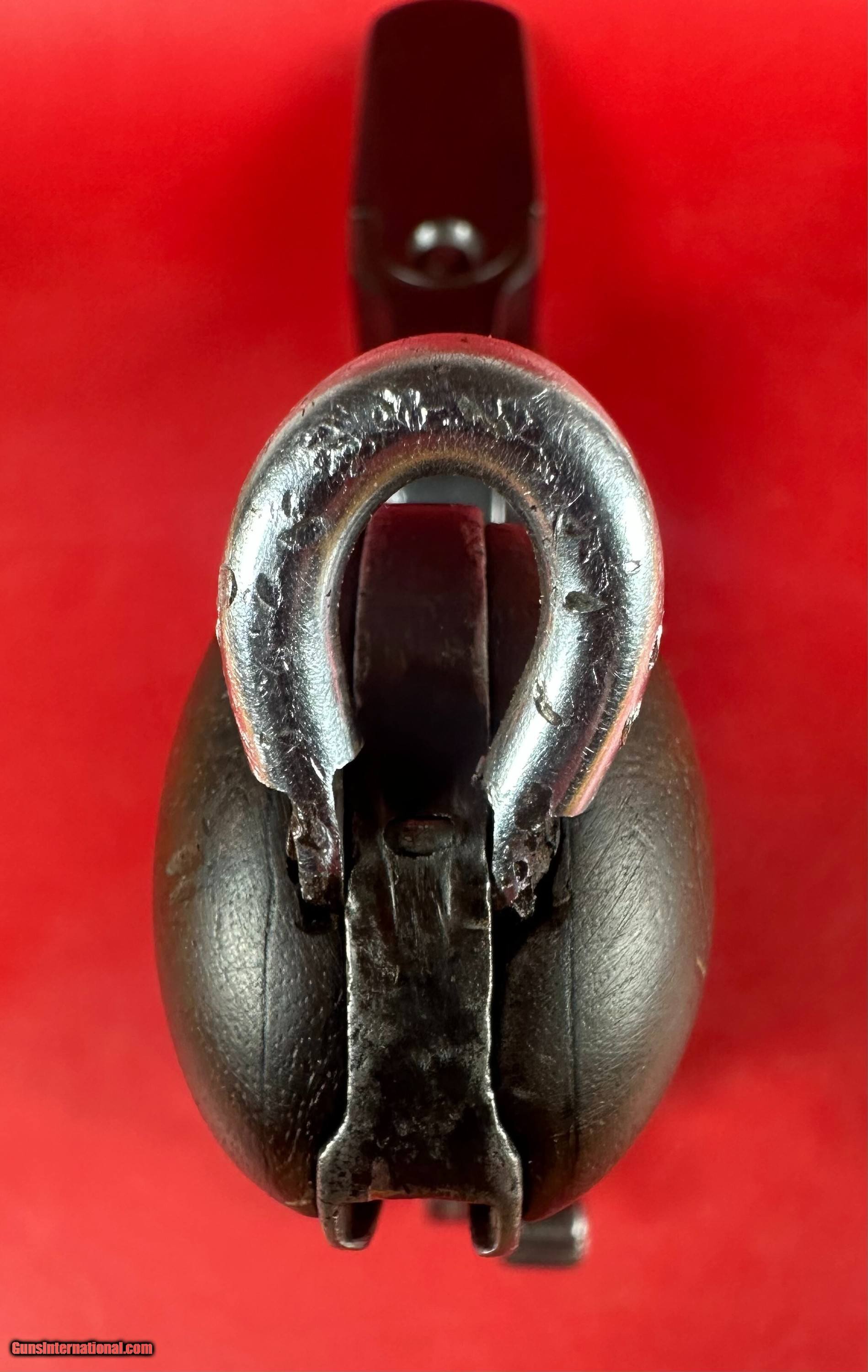 Description: The German Broom Handle (broomhandle) Mauser "Bolo" pistol is a fascinating piece of firearms history, embodying both innovative engineering and historical significance. Chambered in 7.63x25mm Mauser, this semi-automatic pistol was a product of the interwar period, serving as a continuation of the legendary C96 design with notable modifications. The Bolo variation, named for its smaller "Bolo" grip, was designed to be more compact and portable. The 7.63x25mm Mauser cartridge, known for its high velocity and flat trajectory, makes this pistol a remarkably effective firearm even by modern standards. Its internal 10-round magazine and unique ergonomic grip provide a balance of capacity and control. For sale is Broom Handle Mauser “Bolo” manufactured between 1920 and 1930. The gun is in excellent condition. The metal finish is about 98%, original smooth grips are about 98% and have no cracks or chips, bright bore with strong rifling. Action works the way it should. All numbers, including grips, are matching. Sale includes reproduction wood stock - holster, Mauser cleaning rod, loading strippers, This gun is not NFA and doesn't require Tax stamp. It will be a great addition to any collection, don't miss it! Layaway and no interest payment plan are available. Handgun Caliber: 7.63x25mm Mauser (30 Mauser) Price: $2,299.00 Shipping: $50.00 Contact Seller |