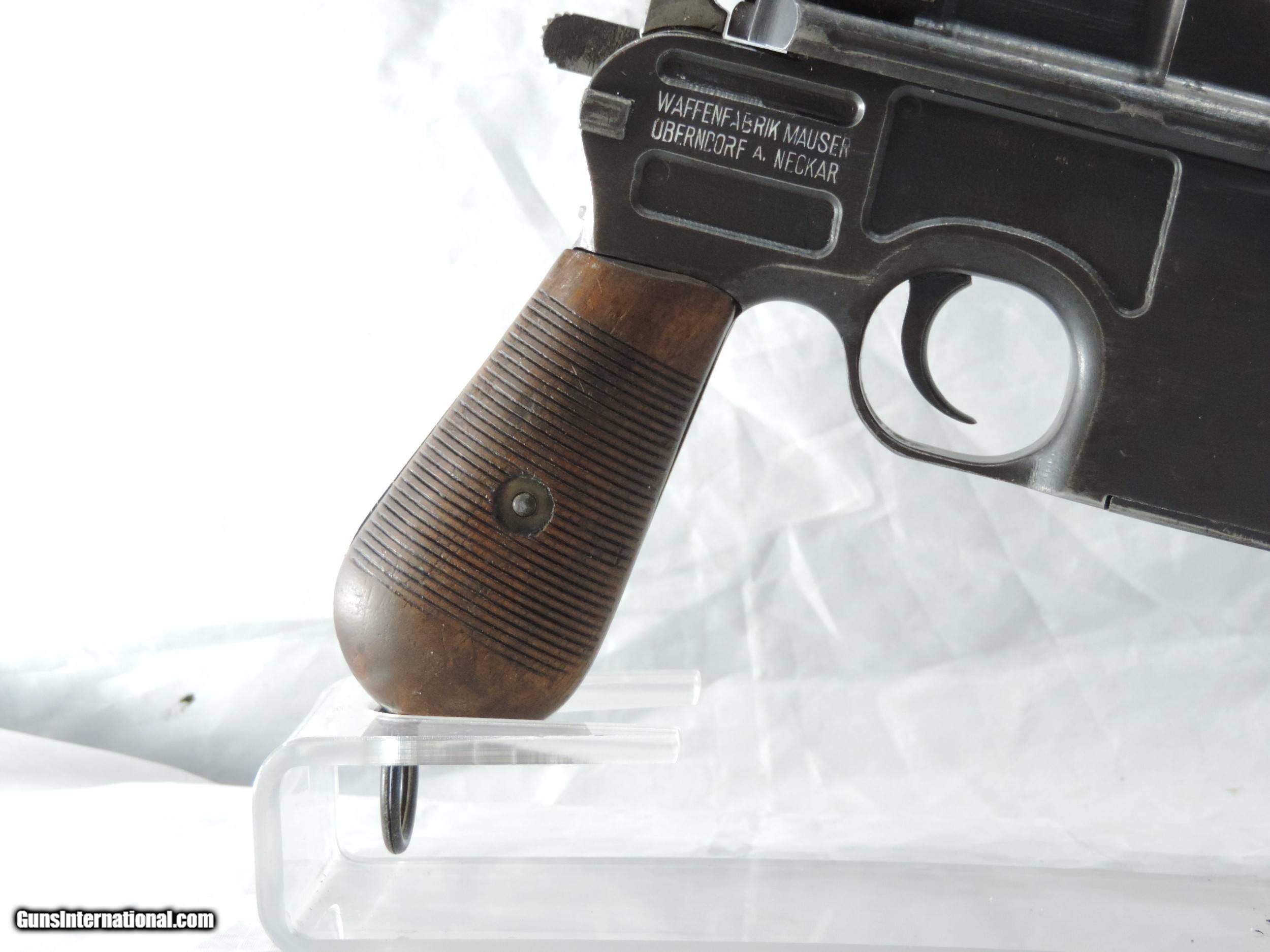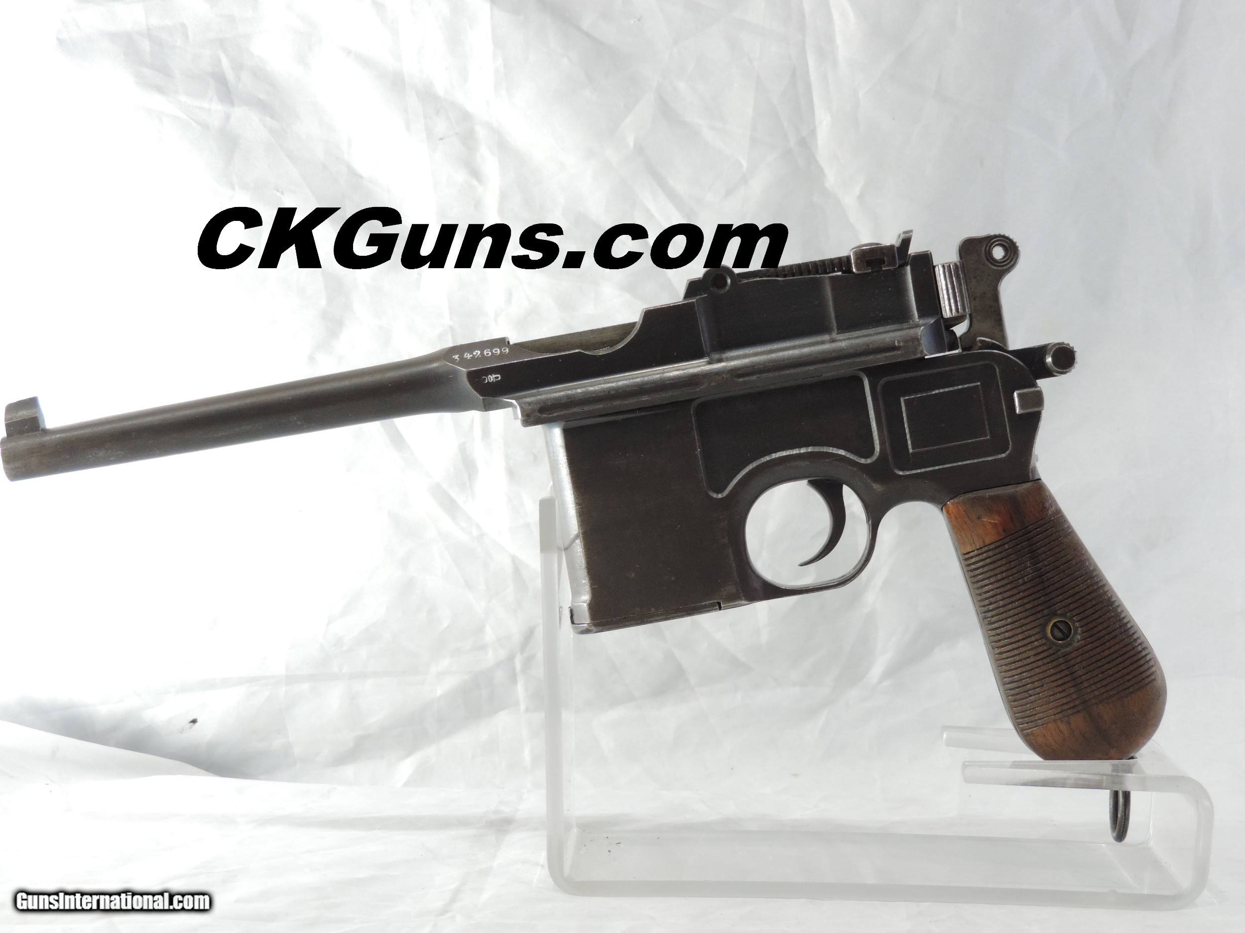Description: INV. 9636 A BEAUTY, MAUSER C96, CAL. .30 MAUSER, SER. 342699. A REAL "ARSENAL PET" RETAINING ABOUT 90-95% OF THE ORIGINAL MILITARY FINISH. THE LITTLE LOSS THERE IS, IS FROM SHARP EDGE SILVERING, SLIGHT HOLSTER WEAR A FEW SCATTERED PINPRICKS. THERE ARE NO RUST PATCHES, SCRATCHES OR DENTS . THE CASE COLORED SIGHT SLIDE, LOCKING BOLT, EXTRACTOR AND SAFETY ALSO ABOUT 80-85%. ALL NUMBERS MATCH. THE SLIDE HAS THE CORRECT MILITARY PROOFS. THE UN-NUMBERED STRIATED WOODEN GRIPS ARE PERFECT, NO CHIPS, SPLITS OR DINGS AND HAVE RETAINED ABOUT 85%% OF THE ORIGINAL LACQUER. THE GRIP SCREW IS ALSO PERFECT. THE SLIDE RAILS, BOLT FACE AND FEED RAMP SHOW LITTLE USE. THE BORE, LIKE THE REST OF THE GUN IS GREAT, LASER BRIGHT WITH RAZOR SHARP RIFLING, WITHOUT A WHISP OF FROST. THIS "ARSENAL PET" HAS SEEN VERY LITTLE IF ANY USE. IT WOULD CERTAINLY PLEASE ANY SERIOUS COLLECTOR AND SHOULD BE A REAL BLAST AT THE RANGE. MODESTLY PRICED.....$2895. ***100% SATISFACTION GUARANTEED, **THE HARMLESS WHITE CRAYON IS TO SHOW THE MARKINGS ARE CORRECT. THEY ARE EASILY REMOVED WITH LIGHTER FLUID AND A BRUSH. WE WILL DO IT ON REQUEST. ***100% OF THE GUN'S PURCHASE PRICE IS SATISFACTION GUARANTEED. To purchase this firearm or if you want to request more information contact us at: Email ckguns[at]ymail[dot]com Phone 201-512-0002 Cell 201-575-6838 FAX 201-215-4759 We accept most major credit cards. Prices shown are Discounted 3% for Cash or Check. The buyer must be familiar with all the laws governing the purchase and the ownership of firearms in their own city and state. The Yankee Armorer, Inc is not responsible for any failure to comply with or observe these laws. The Yankee Armorer, Inc will only ship after full payment and receipt of all required documents. Shipping: Add $35.00 for handguns, $45.00 for long guns. New Jersey buyers are subject to a 7% sales tax. The Yankee Armorer, Inc offers a 3 day inspection period with full refund upon return of intact firearm and in the original condition. The Yankee Armorer, Inc offers a no interest lay away program - 25% down; 25% in 30 days; 25% in 60 days; and full payment in 90 days. Any violation of this policy is subject to restocking and forfeiture of all payments. Any variation from this policy must be agreed to in advance. Unshipped Cancelled sales are subject to a 20% restocking fee. Be advised that all firearms sold by The Yankee Armorer, Inc. or the Gun Exchange, LLC (SELLER) are sold as collector’s items. They have not been fired or tested for safety and must be examined by a license gunsmith prior to use. By purchasing any item from the (SELLER), you are agreeing to hold the (SELLER) free from any damages or lawsuits of any nature. Any item left for transfer or storage will be charged to $25.00 per month, per item from the day of its receipt. Any variation from this policy must be agreed to in advance. Store hours 10:00 am to 5:00 pm Tuesday -Saturday. It's always best to call for appointment. Store 201-512-0002, cell 201-575-6838. SOLD Curio/Relic: Yes |