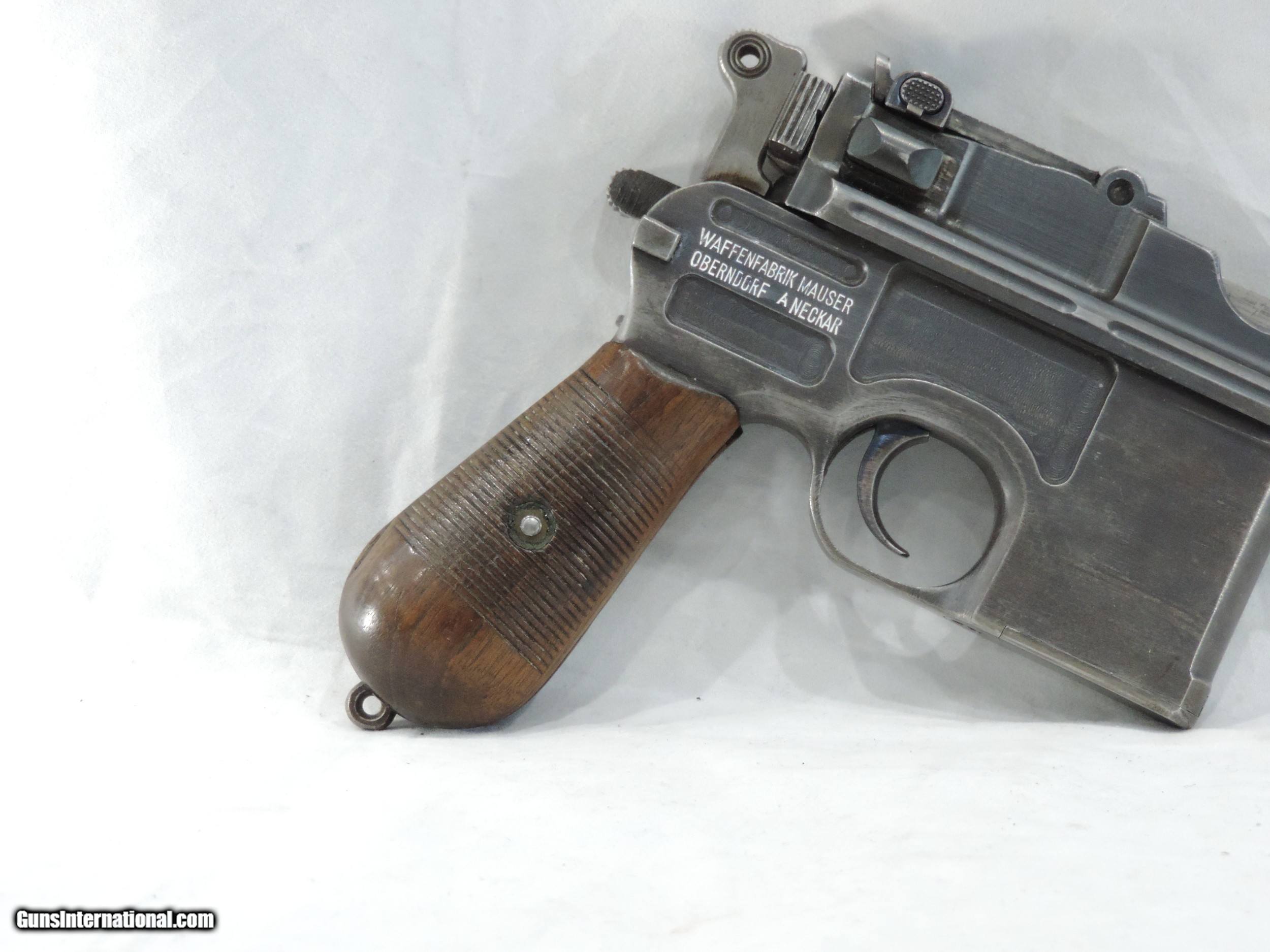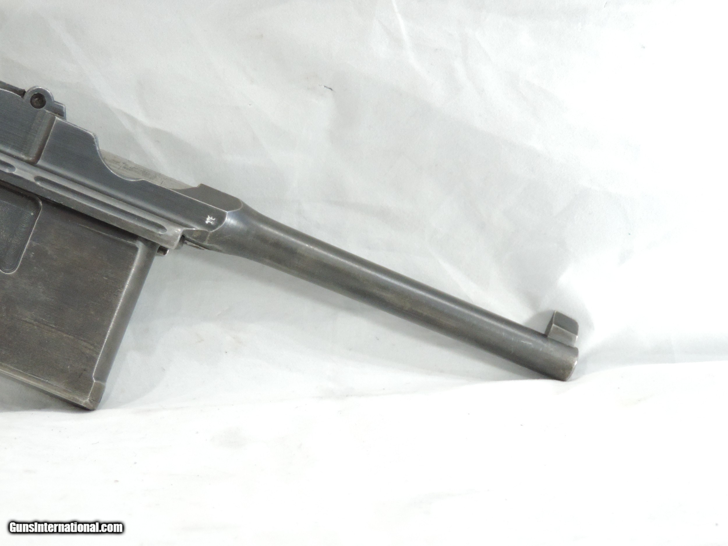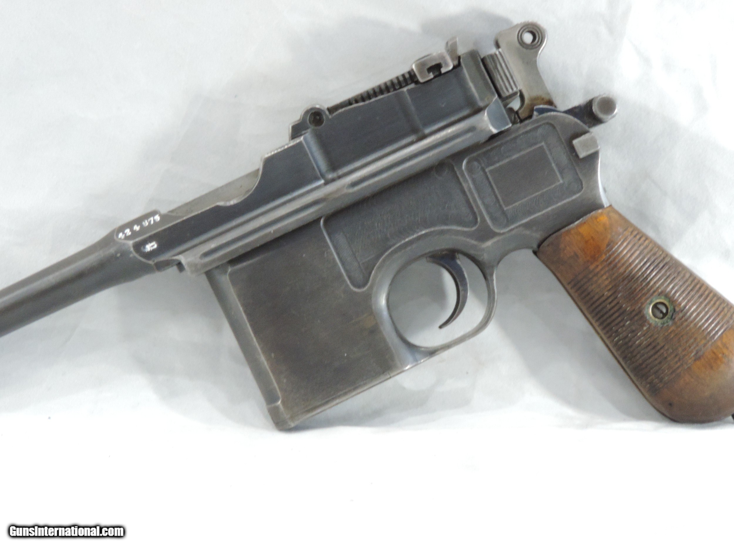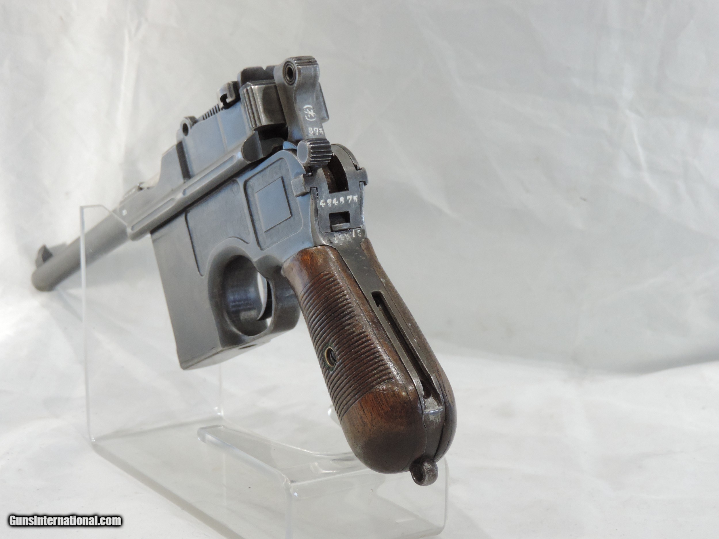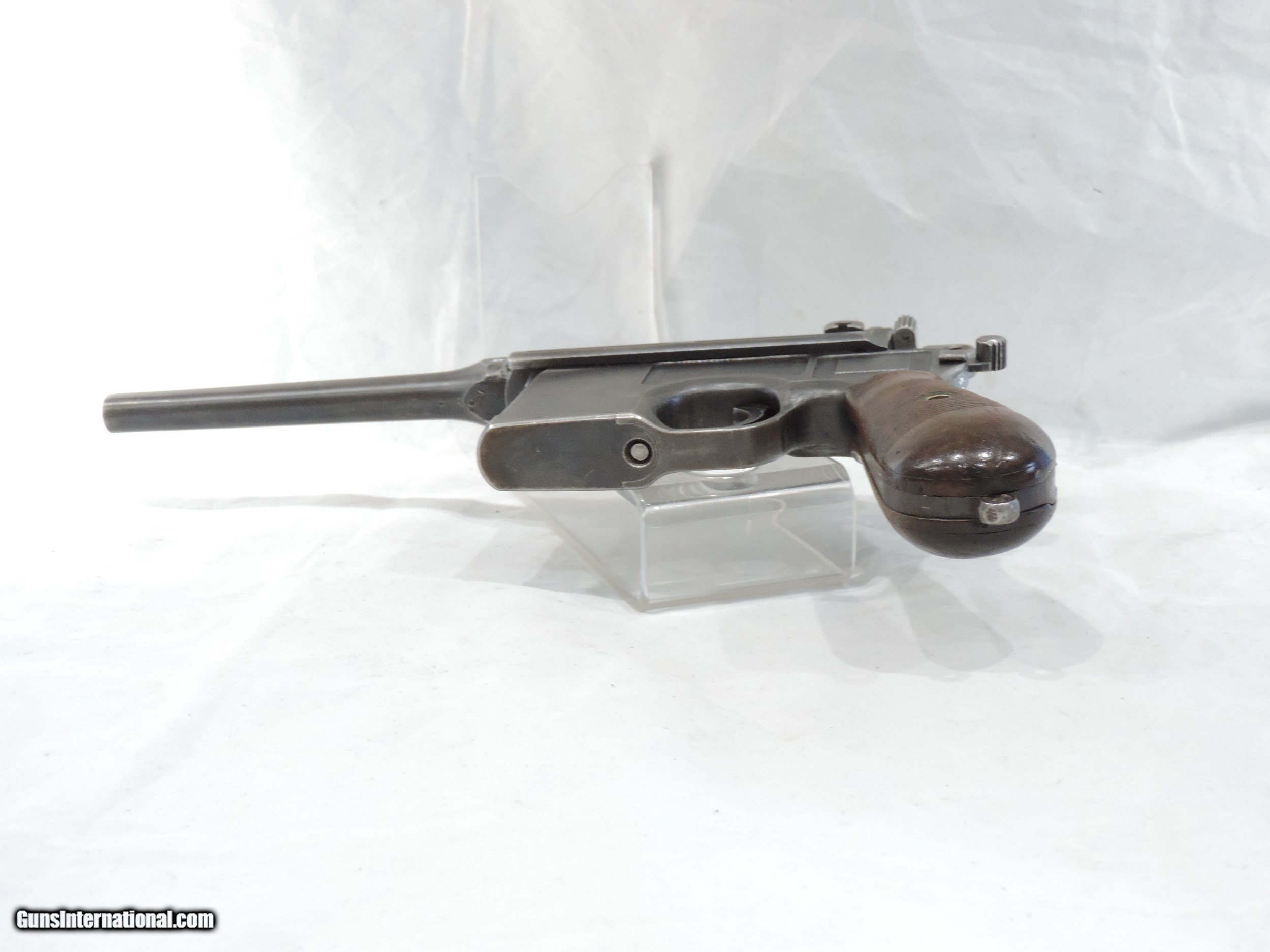Description: INV. 8954 A BEAUTY, MAUSER C-96, RIG, CAL. .30 MAUSER, SER. 424875. A REAL WW1 "ARMORY PET" RETAINING ABOUT 90-95% OF THE DULL BLUE BLACK FCTORY FINISH. THE LITTLE LOSS THERE IS, IS FROM SHARP EDGE SILVERING AND MILD FADING, NO RUST, SCRATCHES OR RUBMARKS. THE CASE COLORED SIGHT SLIDE, LOCKING BOLT, EXTRACTOR AND SAFETY ALSO ABOUT 90-95%. ALL NUMBERS MATCH INCLUDING THE GRIPS. THE SLIDE HAS THE CORRECT "IMPERIAL GERMAN" MILITARY PROOFS. THE STRIATED WOODEN GRIPS ARE PERFECT, NO CHIPS, SPLITS OR DINGS AND HAVE RETAINED ABOUT 95% OF THE ORIGINAL LACQUER. THE GRIP SCREW, ALSO PERFECT. THE SLIDE RAILS, BOLT FACE AND FEED RAMP SHOW LITTLE USE. THE BORE, LIKE THE REST OF THE GUN IS SUPER, LASER BRIGHT WITH RAZOR SHARP RIFLING AND WITHOUT A WHISP OF FROST. IT COMES WITH A VERY NICE NON-MATCHING HOLSTER STOCK THAT HAS A TWO slight FIELD REPAIRS. THIS "ARMORY PET" HAS SEEN VERY LITTLE IF ANY USE. A BEAUTY THAT WOULD PLEASE EVEN THE MOST PICKY COLLECTOR AND SHOULD BE A REAL BLAST AT THE RANGE. MODESTLY PRICED.....$3950.*** ***100% SATISFACTION GUARANTEED, To purchase this firearm or if you want to request more information contact us at: Email ckguns[at]ymail[dot]com Phone 201-512-0002 Cell 201-575-6838 FAX 201-215-4759 We accept most major credit cards. Prices shown are Discounted 3% for Cash or Check. The buyer must be familiar with all the laws governing the purchase and the ownership of firearms in their own city and state. The Yankee Armorer, Inc is not responsible for any failure to comply with or observe these laws. The Yankee Armorer, Inc will only ship after full payment and receipt of all required documents. Shipping: Add $35.00 for handguns, $45.00 for long guns. New Jersey buyers are subject to a 7% sales tax. The Yankee Armorer, Inc offers a 3 day inspection period with full refund upon return of intact firearm and in the original condition. The Yankee Armorer, Inc offers a no interest lay away program - 25% down; 25% in 30 days; 25% in 60 days; and full payment in 90 days. Any violation of this policy is subject to restocking and forfeiture of all payments. Any variation from this policy must be agreed to in advance. Unshipped Cancelled sales are subject to a 20% restocking fee. Be advised that all firearms sold by The Yankee Armorer, Inc. or the Gun Exchange, LLC (SELLER) are sold as collector’s items. They have not been fired or tested for safety and must be examined by a license gunsmith prior to use. By purchasing any item from the (SELLER), you are agreeing to hold the (SELLER) free from any damages or lawsuits of any nature. Any item left for transfer or storage will be charged to $25.00 per month, per item from the day of its receipt. Any variation from this policy must be agreed to in advance. Store hours 10:00 am to 5:00 pm Tuesday -Saturday. It's always best to call for appointment. Store 201-512-0002, cell 201-575-6838. SOLD |