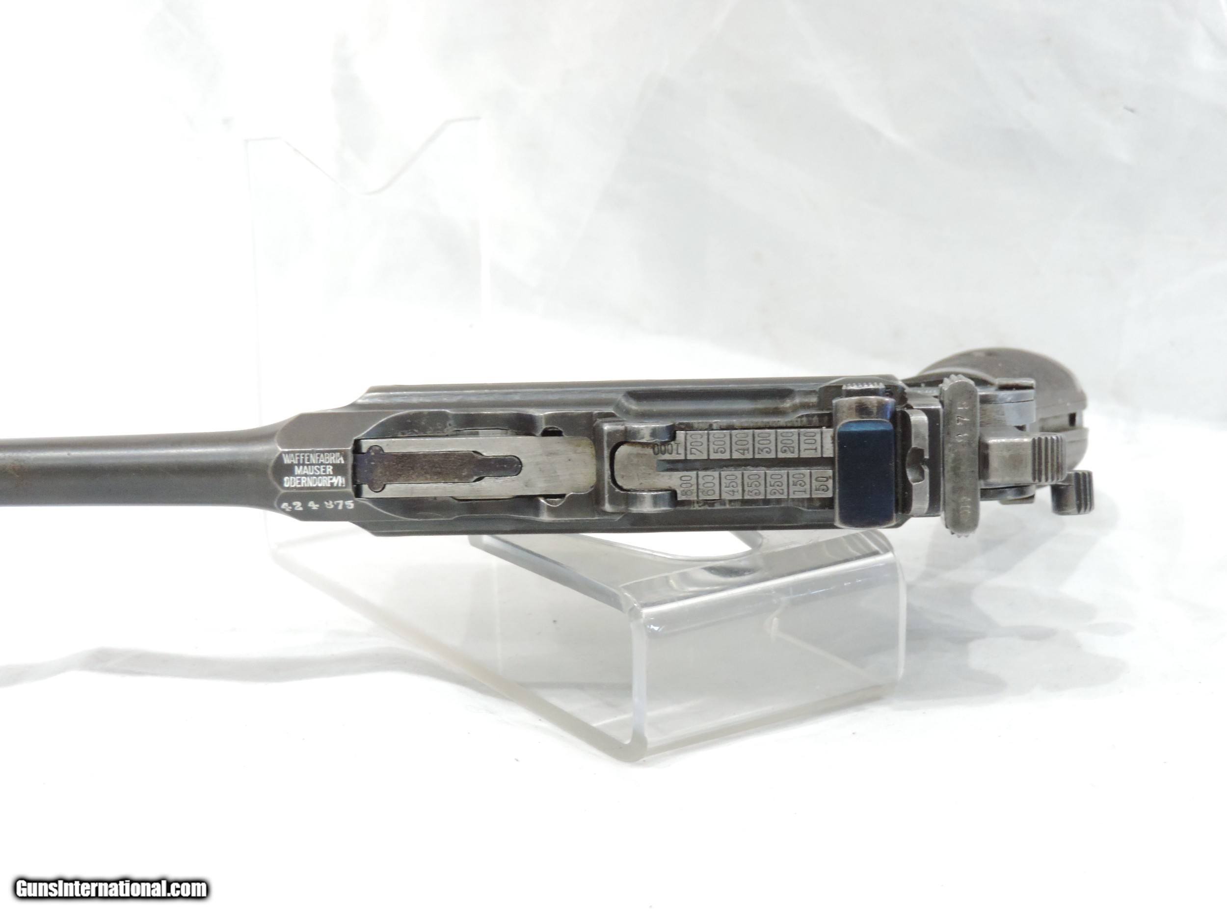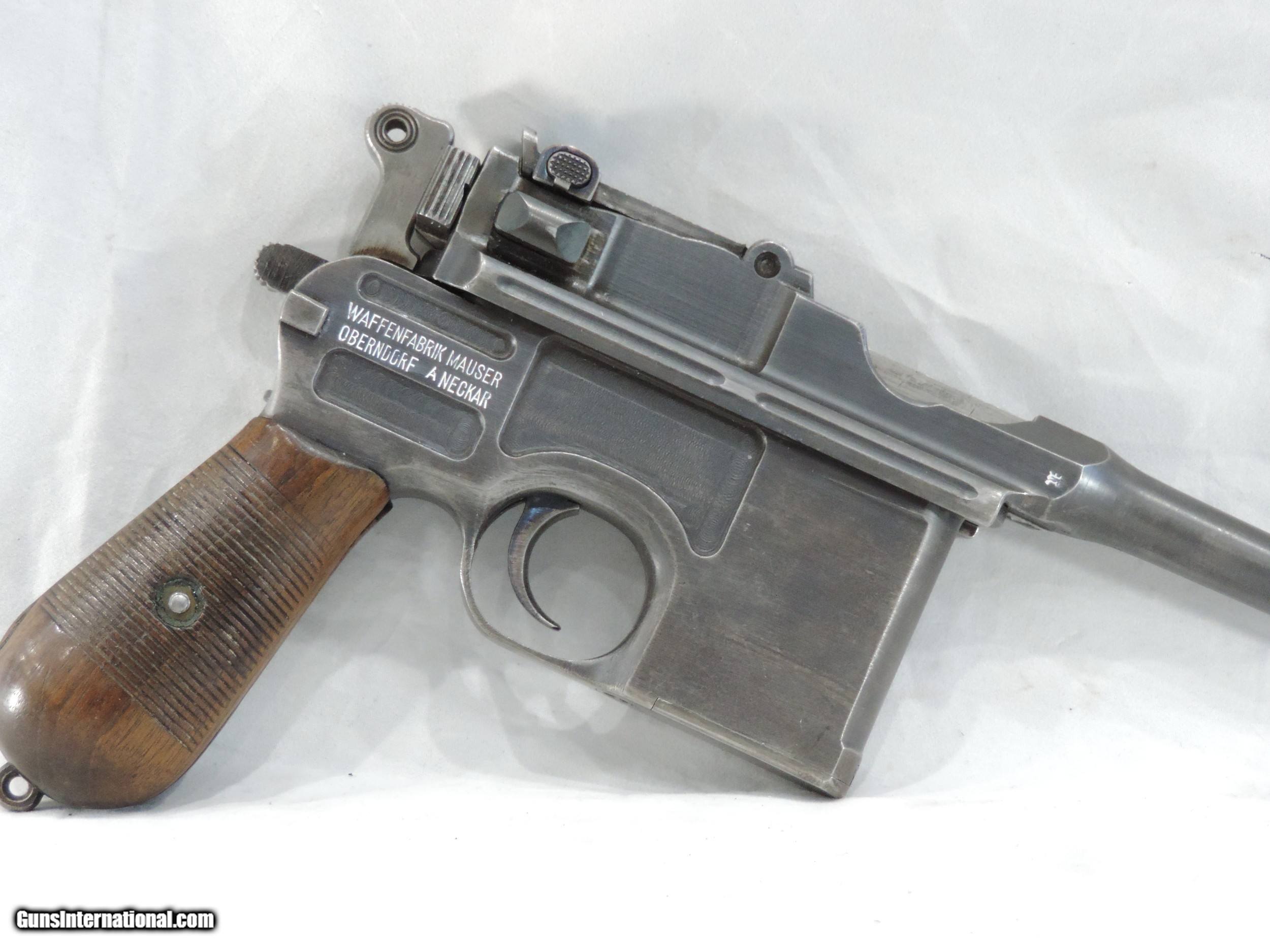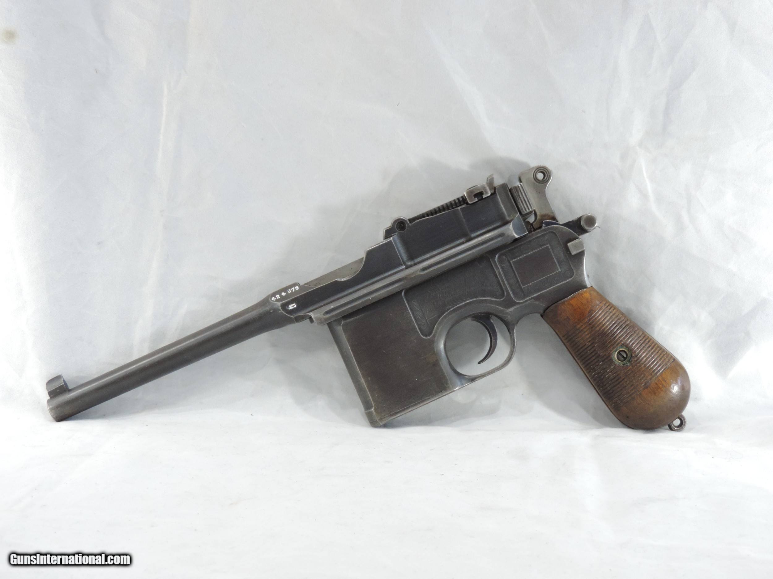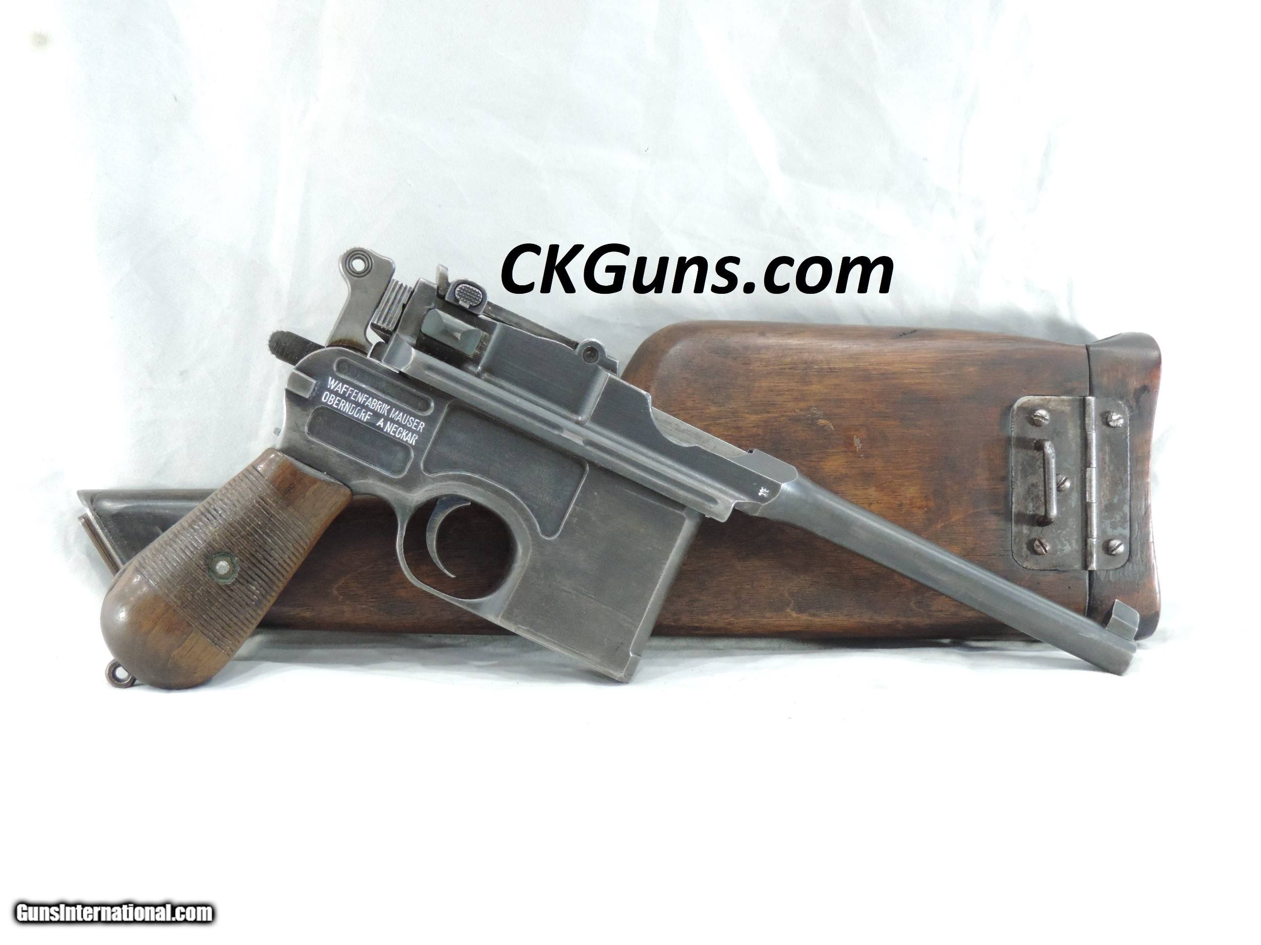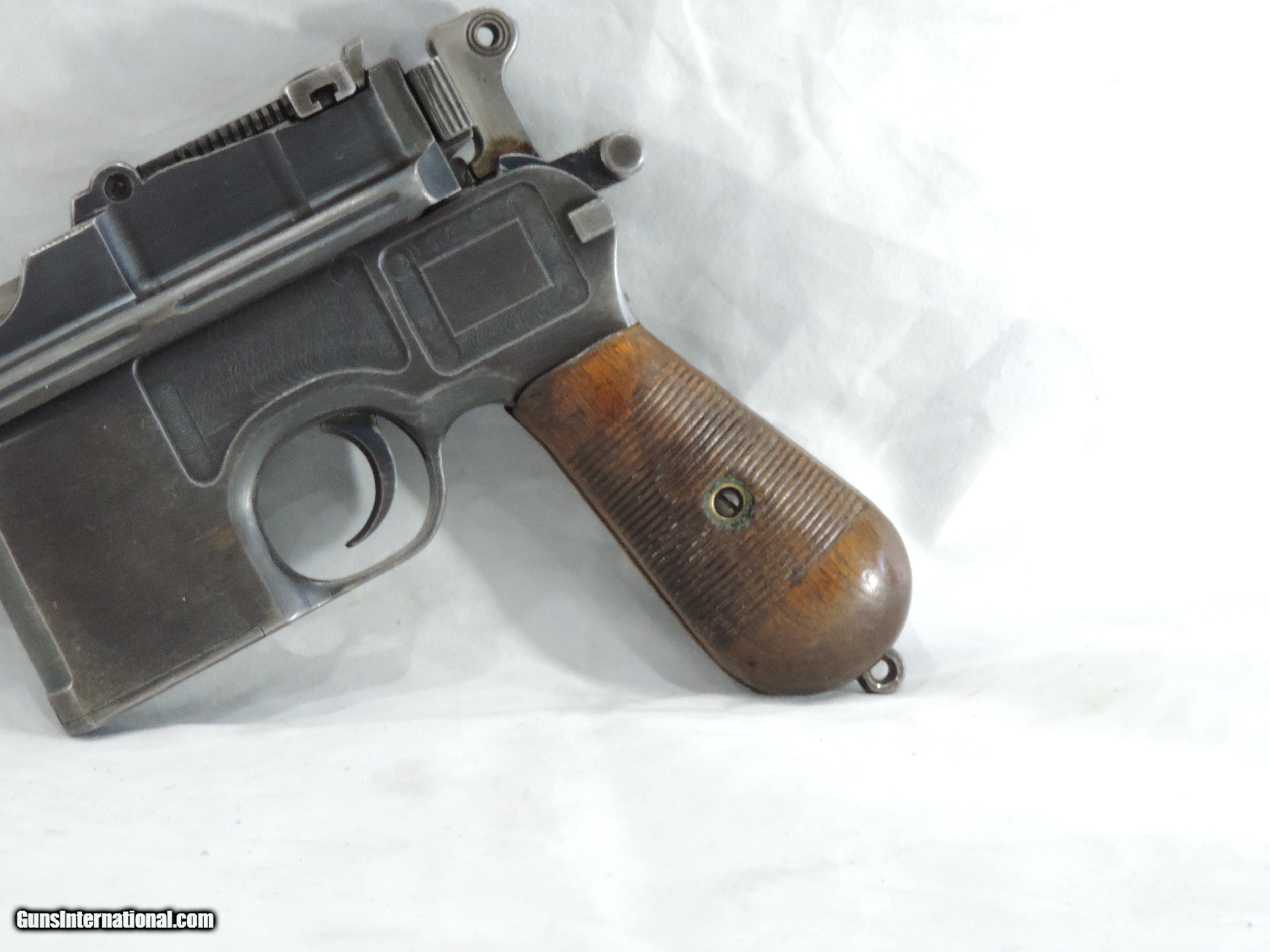 Description: INV. 8954 A BEAUTY, MAUSER C-96, RIG, CAL. .30 MAUSER, SER. 424875. A REAL WW1 "ARMORY PET" RETAINING ABOUT 90-95% OF THE DULL BLUE BLACK FCTORY FINISH. THE LITTLE LOSS THERE IS, IS FROM SHARP EDGE SILVERING AND MILD FADING, NO RUST, SCRATCHES OR RUBMARKS. THE CASE COLORED SIGHT SLIDE, LOCKING BOLT, EXTRACTOR AND SAFETY ALSO ABOUT 90-95%. ALL NUMBERS MATCH INCLUDING THE GRIPS. THE SLIDE HAS THE CORRECT "IMPERIAL GERMAN" MILITARY PROOFS. THE STRIATED WOODEN GRIPS ARE PERFECT, NO CHIPS, SPLITS OR DINGS AND HAVE RETAINED ABOUT 95% OF THE ORIGINAL LACQUER. THE GRIP SCREW, ALSO PERFECT. THE SLIDE RAILS, BOLT FACE AND FEED RAMP SHOW LITTLE USE. THE BORE, LIKE THE REST OF THE GUN IS SUPER, LASER BRIGHT WITH RAZOR SHARP RIFLING AND WITHOUT A WHISP OF FROST. IT COMES WITH A VERY NICE NON-MATCHING HOLSTER STOCK THAT HAS A TWO slight FIELD REPAIRS. THIS "ARMORY PET" HAS SEEN VERY LITTLE IF ANY USE. A BEAUTY THAT WOULD PLEASE EVEN THE MOST PICKY COLLECTOR AND SHOULD BE A REAL BLAST AT THE RANGE. MODESTLY PRICED.....$3950.*** ***100% SATISFACTION GUARANTEED, To purchase this firearm or if you want to request more information contact us at: Email ckguns[at]ymail[dot]com Phone 201-512-0002 Cell 201-575-6838 FAX 201-215-4759 We accept most major credit cards. Prices shown are Discounted 3% for Cash or Check. The buyer must be familiar with all the laws governing the purchase and the ownership of firearms in their own city and state. The Yankee Armorer, Inc is not responsible for any failure to comply with or observe these laws. The Yankee Armorer, Inc will only ship after full payment and receipt of all required documents. Shipping: Add $35.00 for handguns, $45.00 for long guns. New Jersey buyers are subject to a 7% sales tax. The Yankee Armorer, Inc offers a 3 day inspection period with full refund upon return of intact firearm and in the original condition. The Yankee Armorer, Inc offers a no interest lay away program - 25% down; 25% in 30 days; 25% in 60 days; and full payment in 90 days. Any violation of this policy is subject to restocking and forfeiture of all payments. Any variation from this policy must be agreed to in advance. Unshipped Cancelled sales are subject to a 20% restocking fee. Be advised that all firearms sold by The Yankee Armorer, Inc. or the Gun Exchange, LLC (SELLER) are sold as collector’s items. They have not been fired or tested for safety and must be examined by a license gunsmith prior to use. By purchasing any item from the (SELLER), you are agreeing to hold the (SELLER) free from any damages or lawsuits of any nature. Any item left for transfer or storage will be charged to $25.00 per month, per item from the day of its receipt. Any variation from this policy must be agreed to in advance. Store hours 10:00 am to 5:00 pm Tuesday -Saturday. It's always best to call for appointment. Store 201-512-0002, cell 201-575-6838. SOLD |