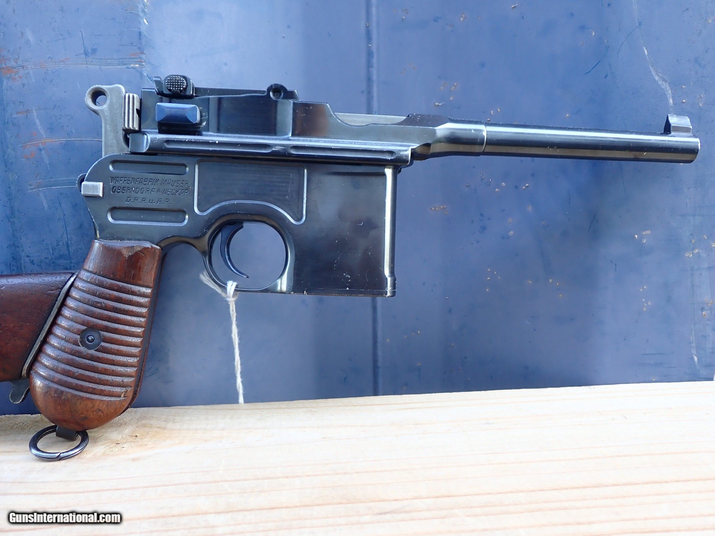 Description: Here is a lovely C96 Broomhandle mauser chambered in 30 Mauser (7.63x25mm), written on the reciever it says Waffenfabrik mauser Oberndorf neckar D.R.P.u.R.P and some chinese charecter on the side of the gun. it is beautiful and may have been refinished but if it was it was doen really well. Comes with original detachable wooden buttstock that also can act as a holster for the gun. $40 shipping Please call with any questions. Please click the BUY NOW button to purchase this item. We are required to charge 8.25% for Texas residents. There is a 3.5% fee if paying by credit card. SOLD Handgun Caliber: 7.63x25mm Mauser (30 Mauser) Model: C96 Serial Number: 868437 |