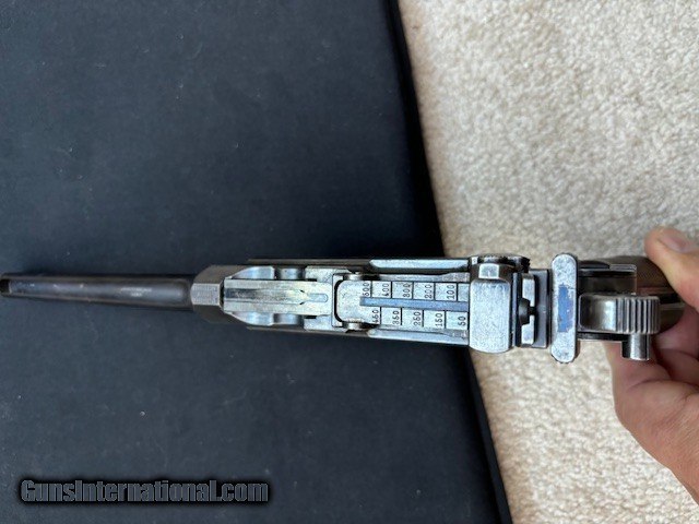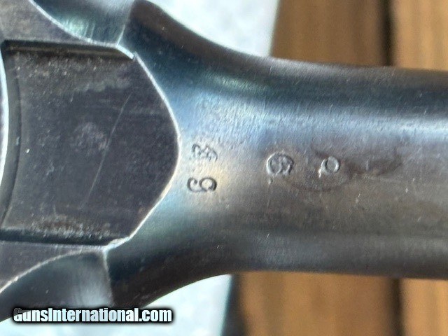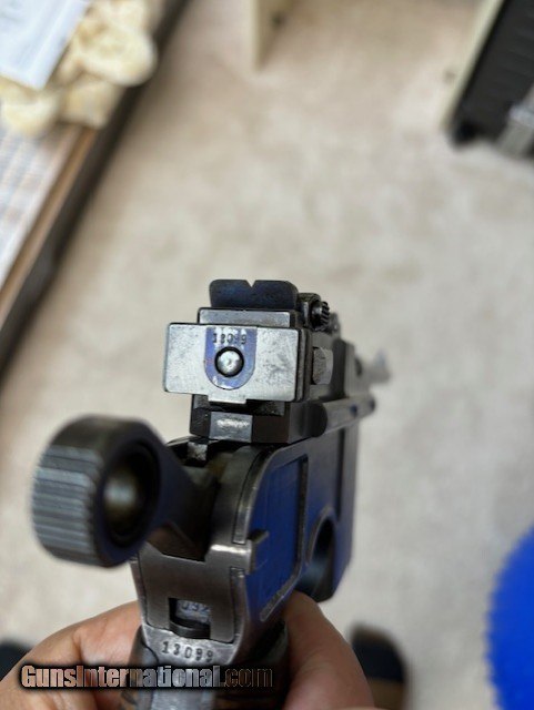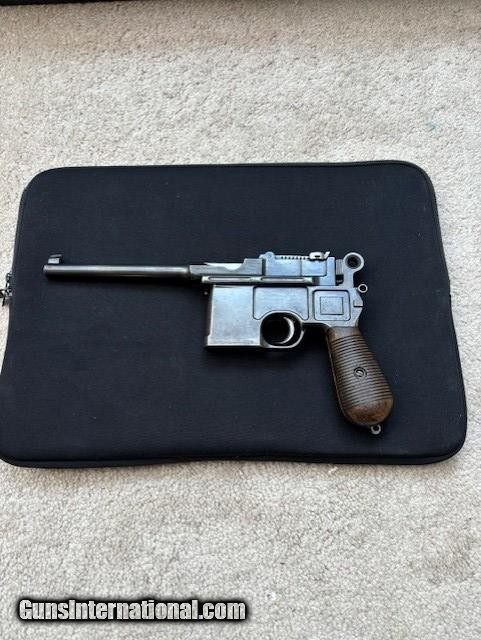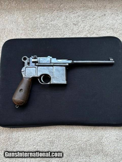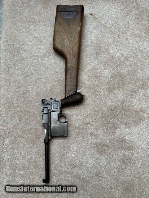 Description: 1899 C96 Large Ring Hammer with matching parts and new proffesionally reline bore. RARE retailer mark on barrel. All original bluing .Here we have SCARCE the short-lived “large ring” Mauser C96. These sought-after specimens second only to the Cone Hammer C96 are considered to be transitional models. They come at a time when Mauser was making in-line improvements and simplifications without designating a whole new variation. They popped up roughly around 1900 and were pretty much gone by 1904 or 1905. They had a very obvious and obnoxious large ring on the hammer which would later be replaced by a much smaller ring that became an accepted standard. These models are also decipherable by looking at the extractor since they always had the old-school longer version.Original Imperial wood holster. NO FFL ship to you directly. $6500 delivered. Will acsept resonable offer. SOLD Antique: Yes Handgun Caliber: 7.63x25mm Mauser (30 Mauser) |