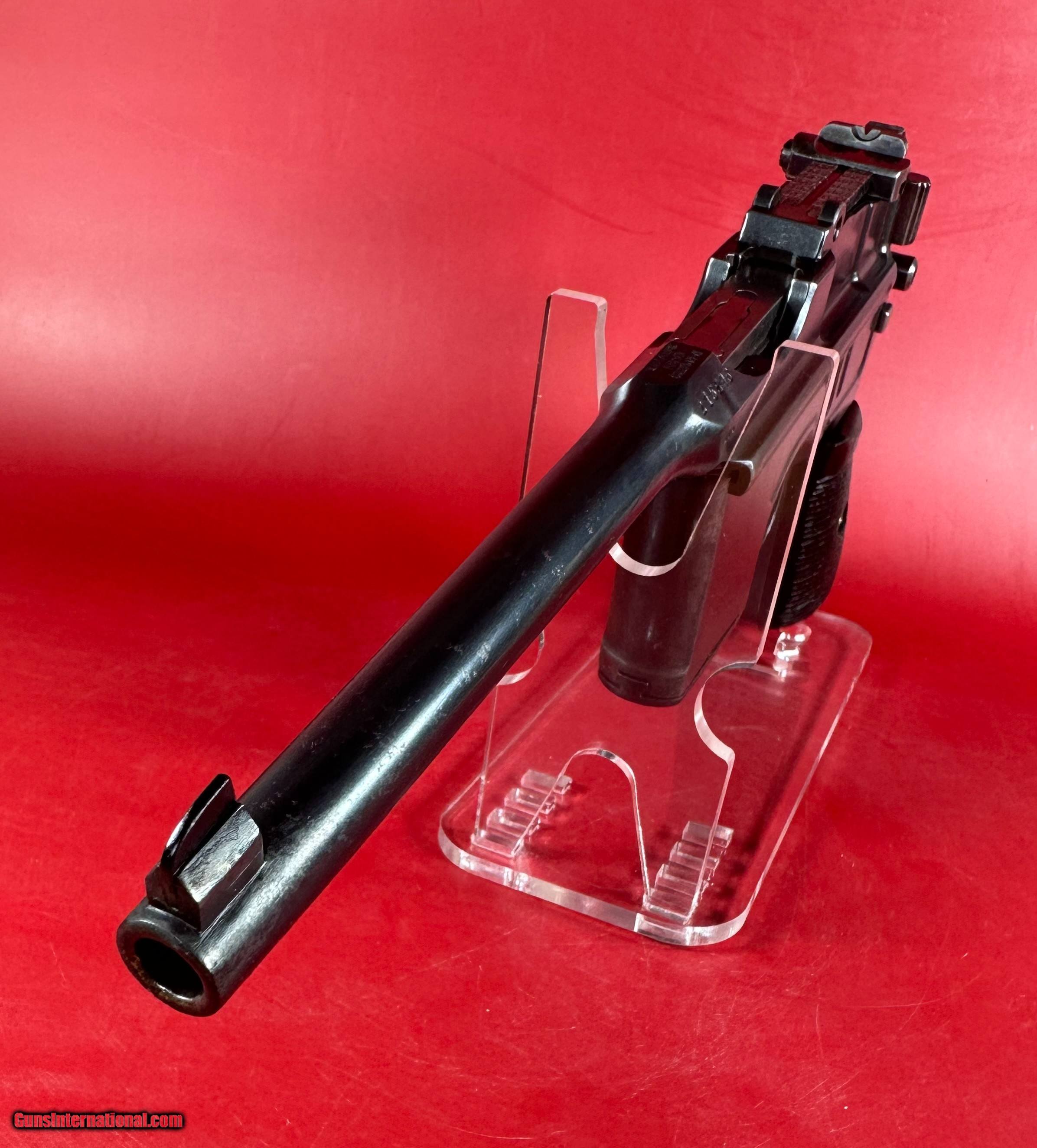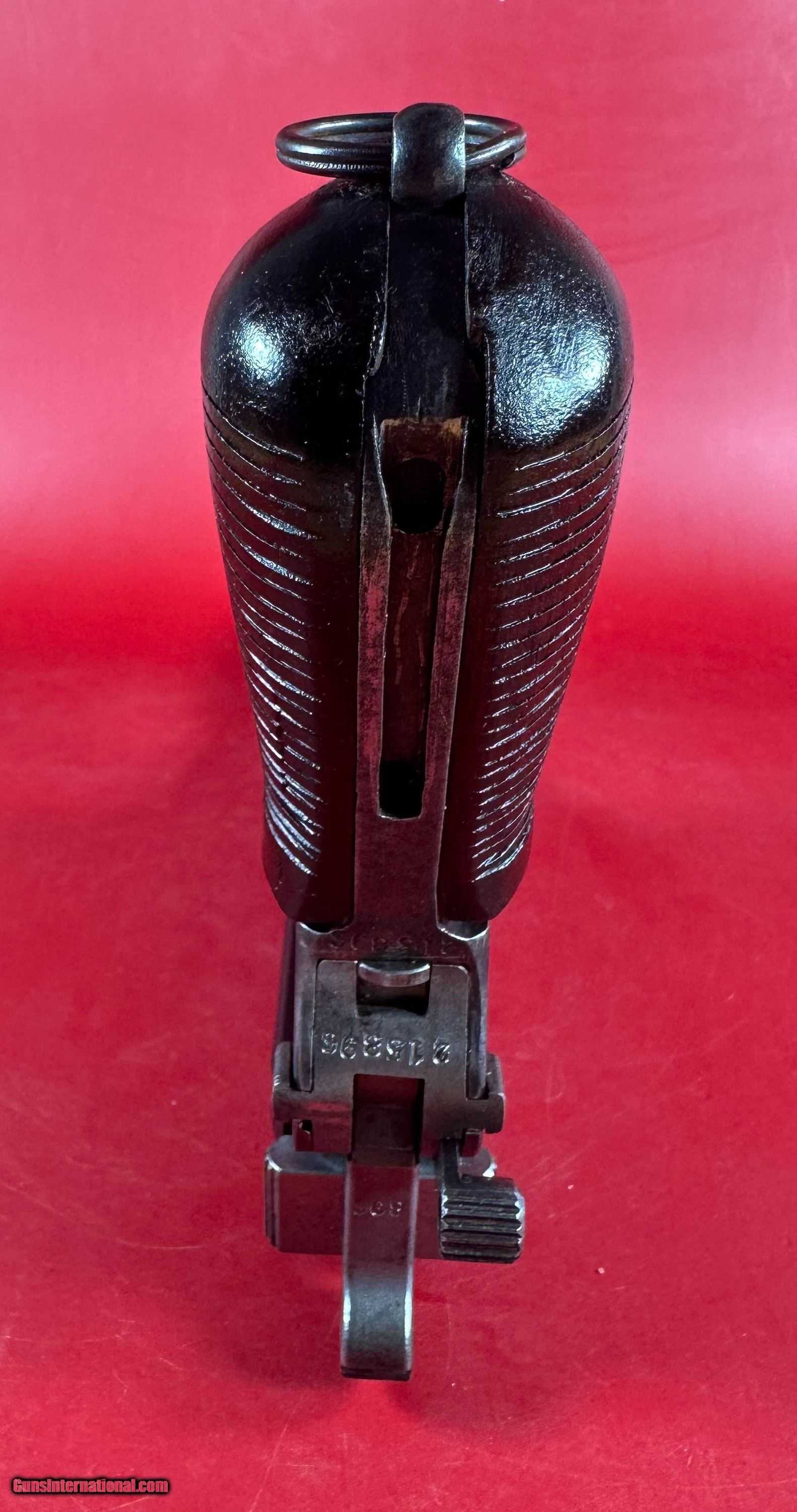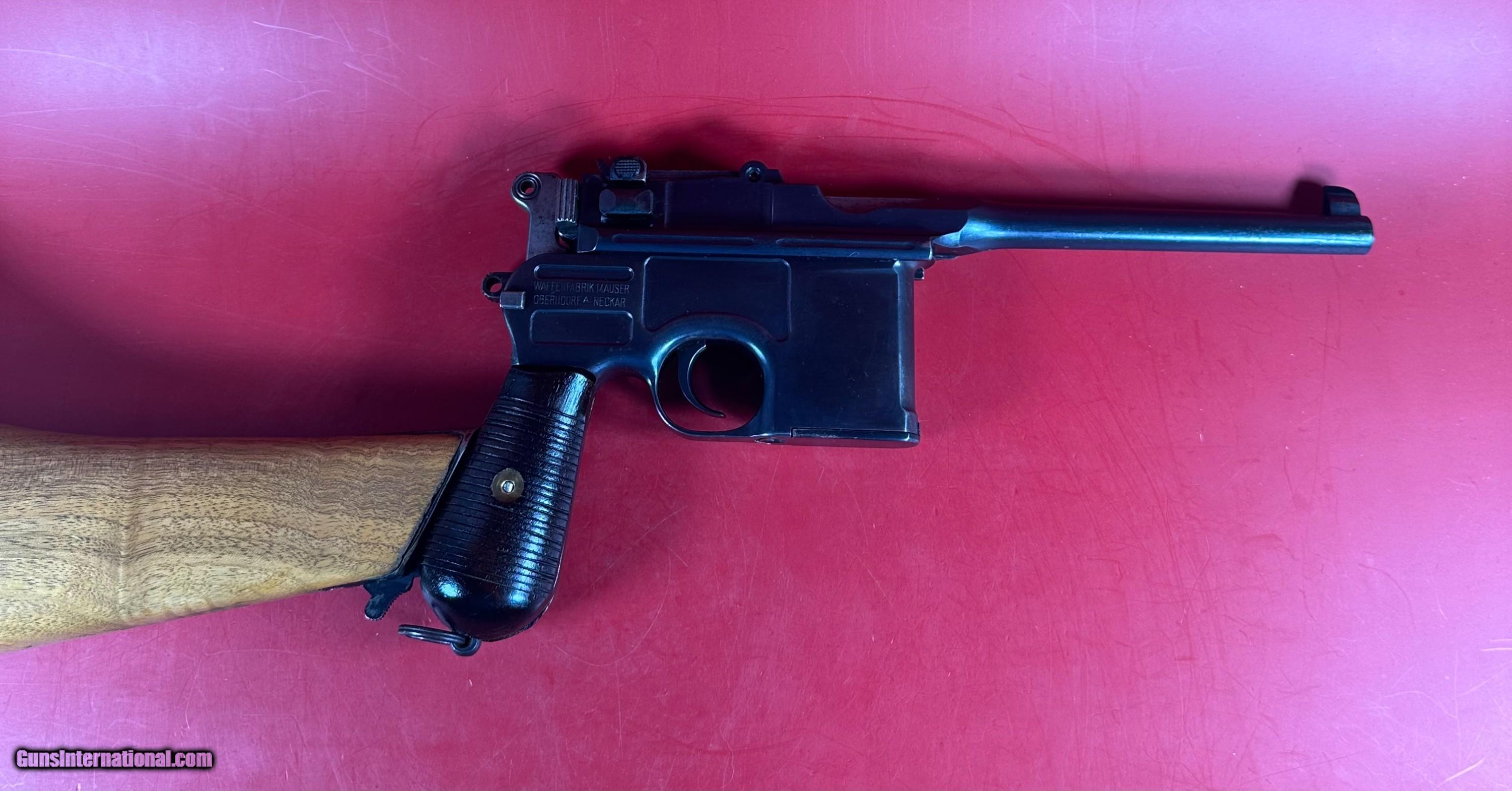 Description: The German C96 Broom handle Mauser pistol is a fascinating piece of firearms history, embodying both innovative engineering and historical significance. Chambered in 7.63x25mm Mauser, this semi-automatic is remarkably effective firearm even by modern standards. The 7.63x25mm Mauser cartridge, known for its high velocity and flat trajectory. Its internal 10-round magazine and unique ergonomic grip provide a balance of capacity and control. For sale is original Mauser C96. The gun is in excellent condition. Metal finish is about 98%, grips are about 97%, no chips or cracks, bright bore with strong rifling. Action works the way it should. All visible numbers are matching. Sale includes a reproduction wood stock / holster, Mauser cleaning tool, loading strips. This gun is not NFA and doesn't require Tax stamp. It will be a great addition to any collection. Layaway and no interest payment plan are available. SOLD Handgun Caliber: 7.63x25mm Mauser (30 Mauser) |