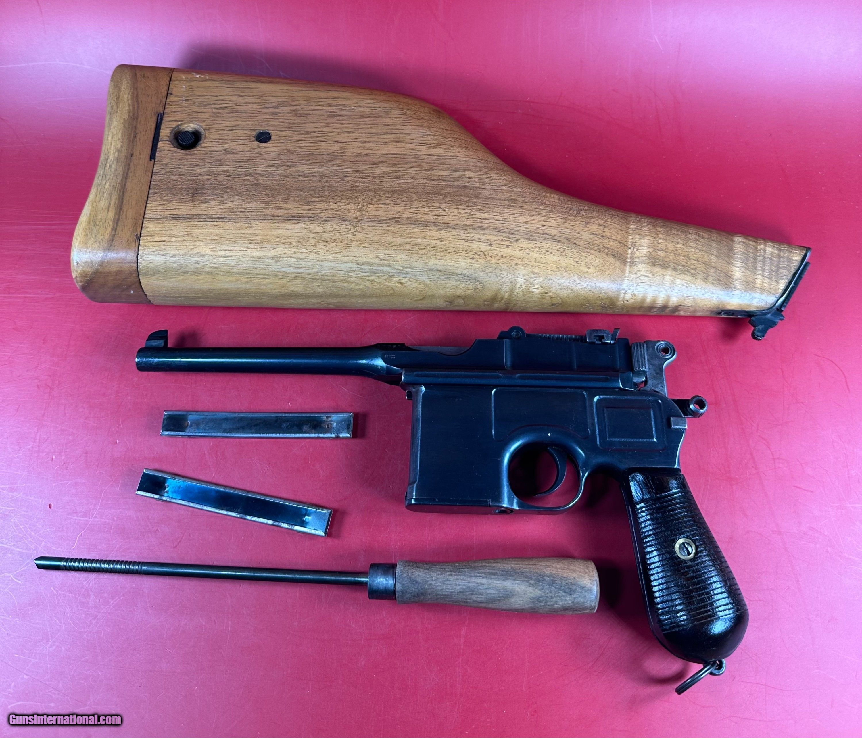 German Mauser Broomhandle 7.63x25mm C96, Stock Holster. Excellent Condition