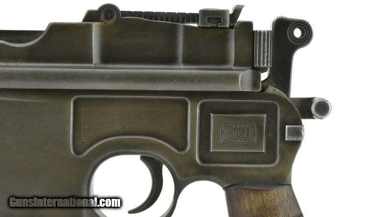 Description: Mauser 1896 30 Mauser caliber pistol. Late model 1930 commercial. Bore is only fair with wear to the lands and grooves. The action works perfectly and we test fired it. Serial numbers do not all match. Gun has an even gray-brown patina. Grips are correct 1930 commercial grips. In very good condition. Very reasonably priced. Mauser Broomhandle.