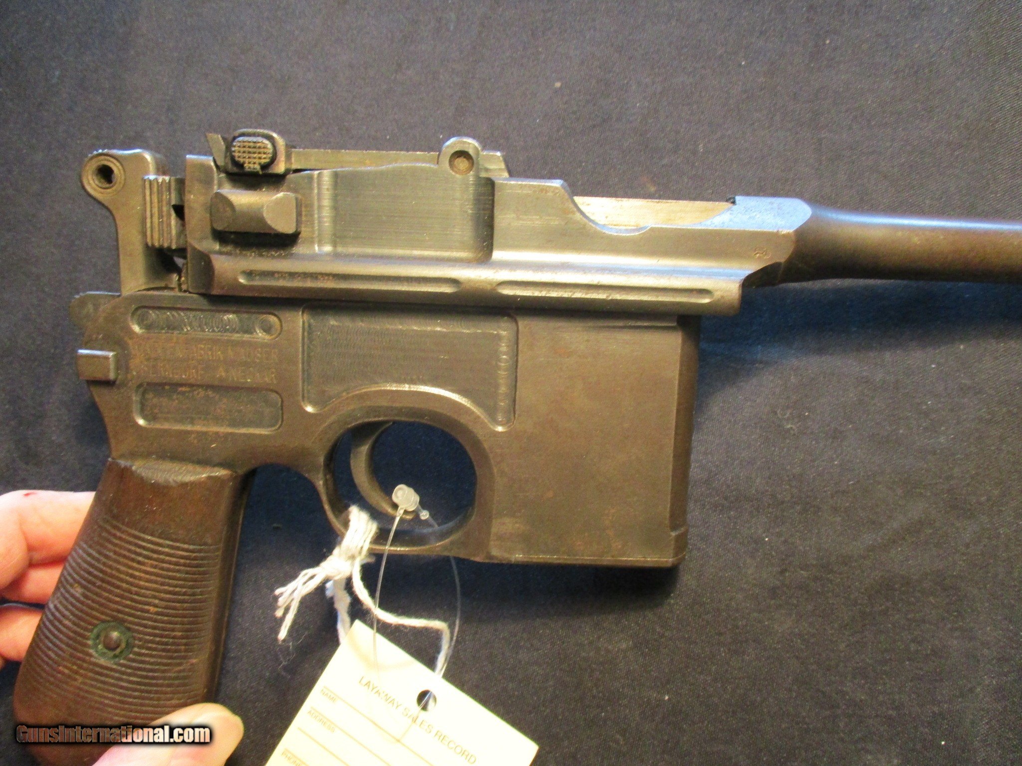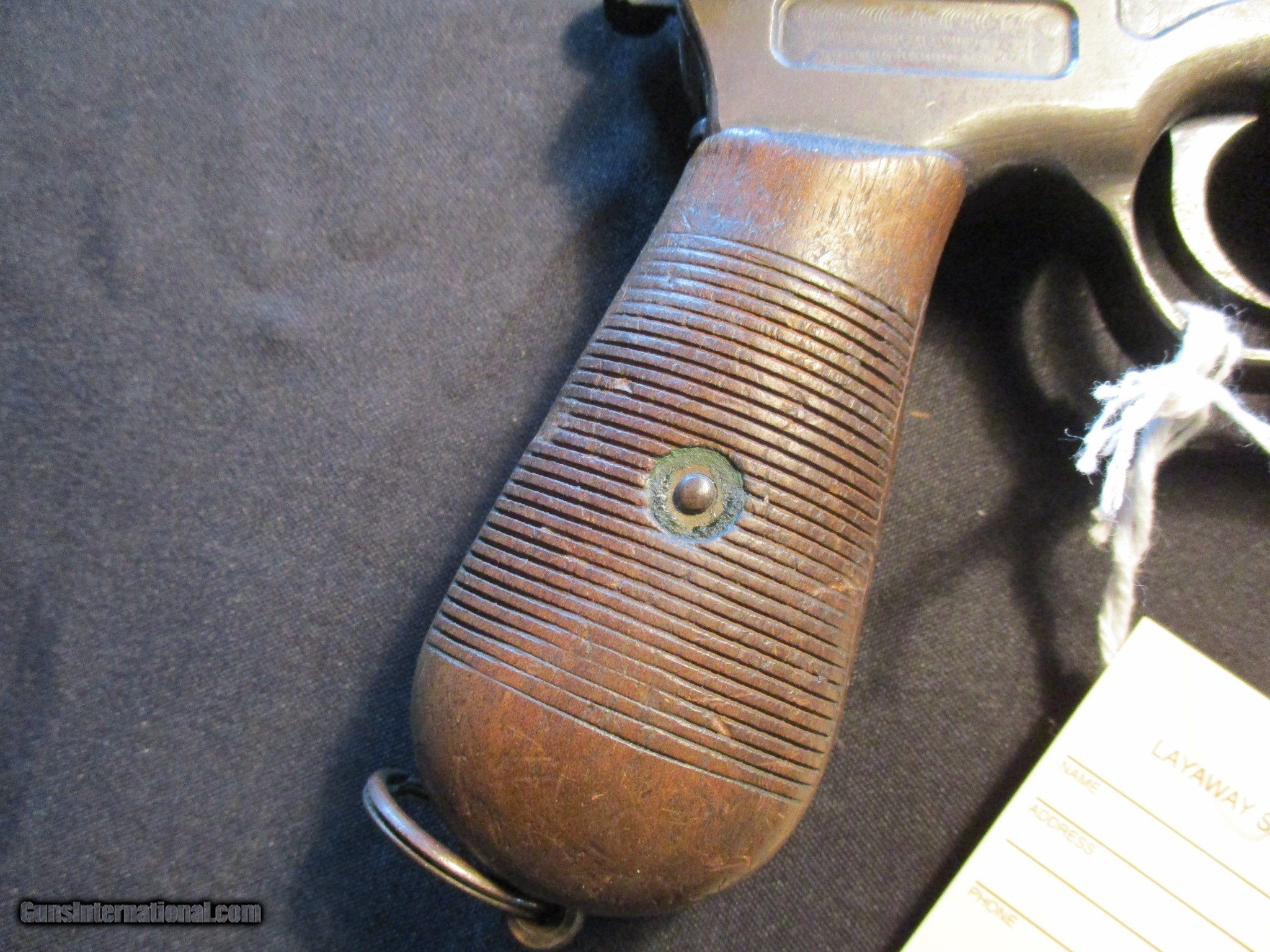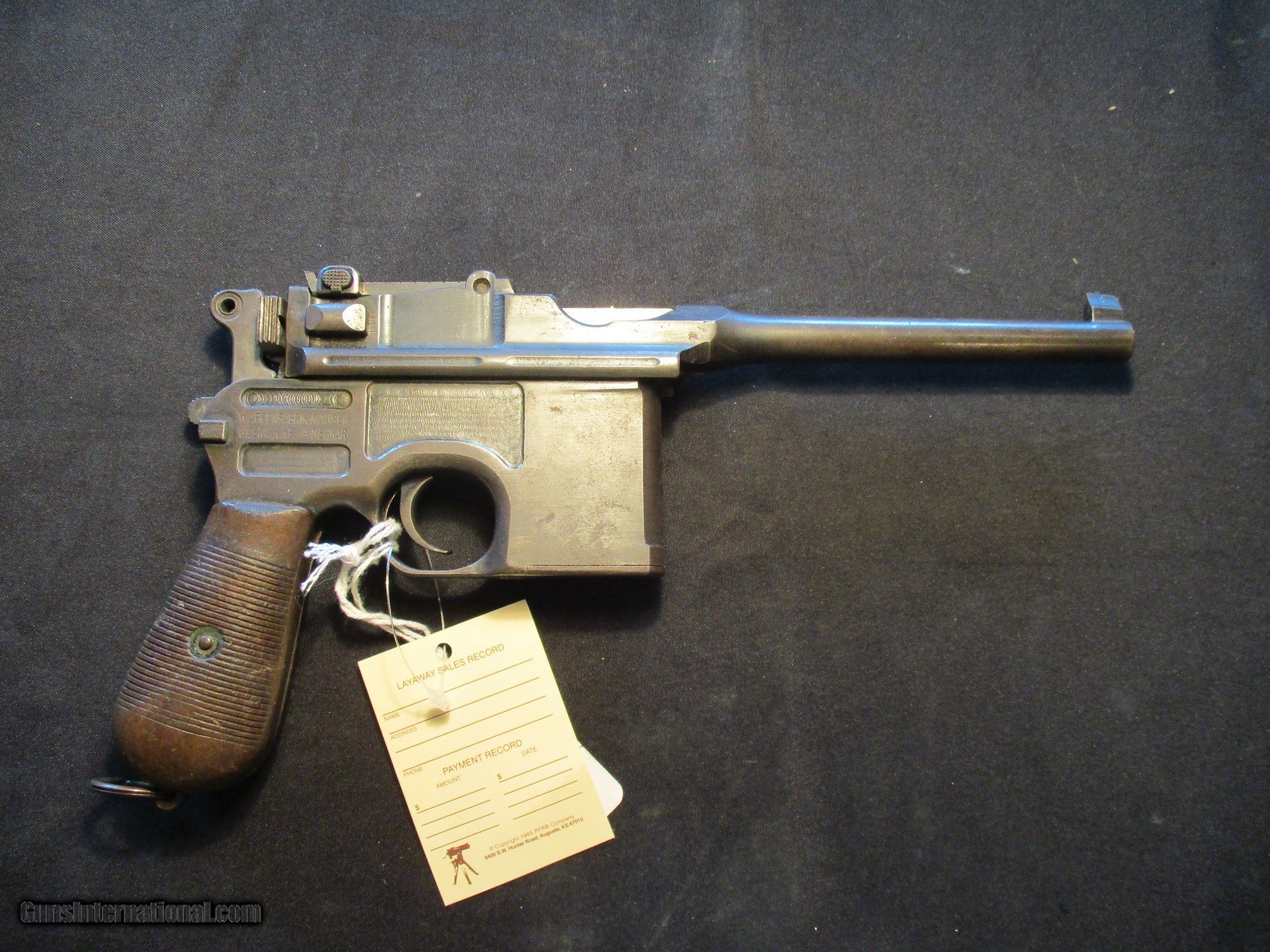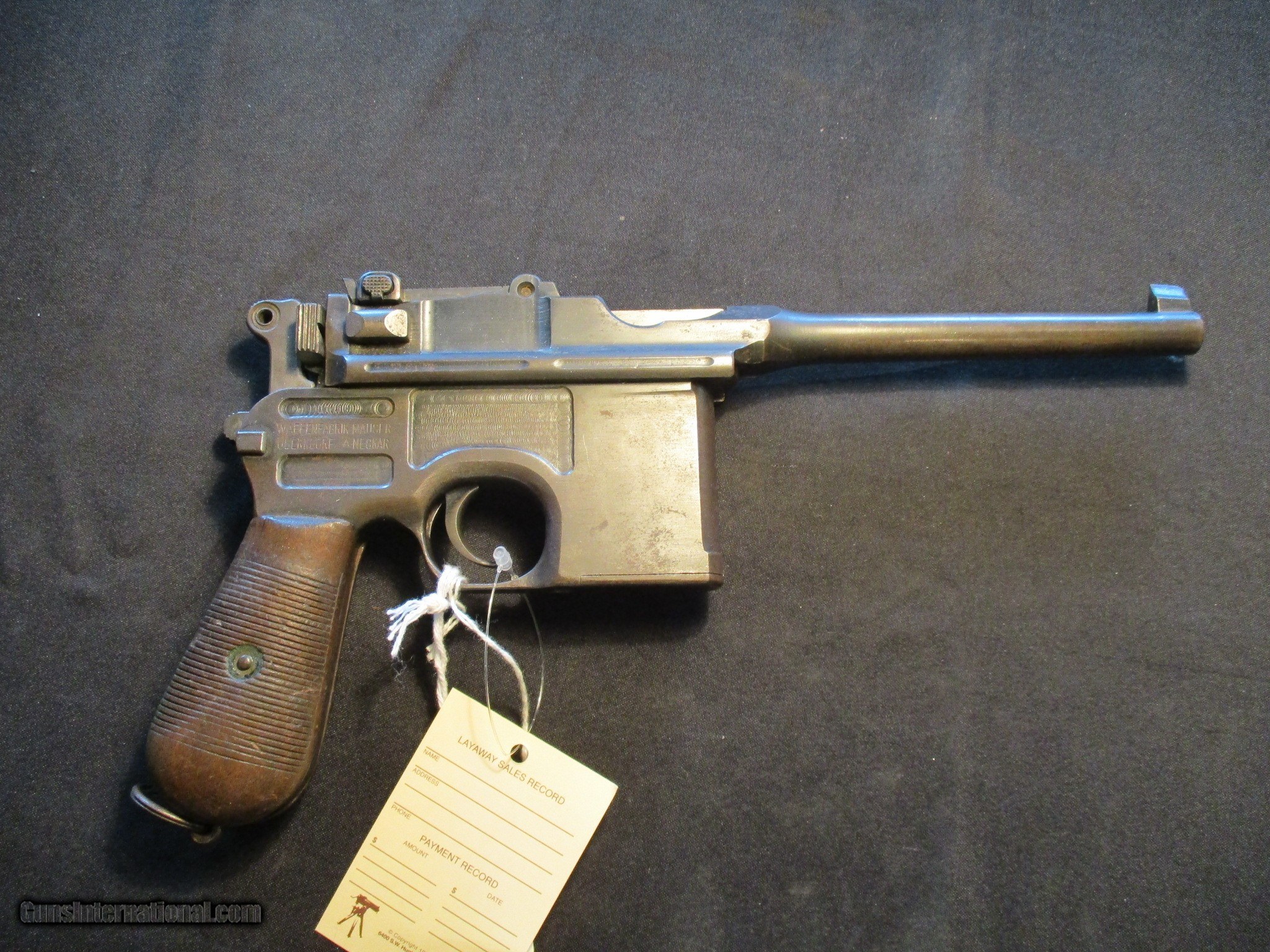 Description: Mauser 1896 Broomhandle 7.62mm, All numbers match thsat I can find. SN is 4078xx. Looks to be all original and nice! Email me if you would like these pics sent to you, they will come through bigger and better than on the listing page here. We do offer Lay-A-Way. Our standard terms are 25% down, 90 days. Initial deposit is not refundable. Email me with any questions. I am a store front dealer, and I will close s if the gun sells locally. Once it has aI will pull it from my shelves. Please check your local laws to confirm it is legal to own in your state! Buyer pays $25 shipping and insurance to your FFL in the lower 48. AK, HI or PR is extra. I will ship to California, NO PROBLEM! All my guns come with a non firing, 3 day unconditional return privilege, from the day UPS delivers to your dealer. Buyer pays shipping both ways if the gun comes back. I can add a new hard case by PLANO for secure shipping for $25 if the buyer wishes (highly recommended, cheap insurance, really helps keep the UPS monster from eating my guns!). No sales tax on guns ship out of Kansas, guns sold in Kansas are subject to Kansas sales tax. I am a licensed FFL, and will include a copy of my FFL with the gun for your dealers records. I will ship to a C&R if the gun is eligible. I will ship to California, but you need to confirm the gun is legal where you are, California or other. I am always looking for good clean, old original Winchesters to buy, consign, or trade, especially pre '64's model 70's and model 54's. WE ALSO TRADE FOR CLASSIC CARS AND TRUCKS! Email me with any questions, and good luck! SOLD |