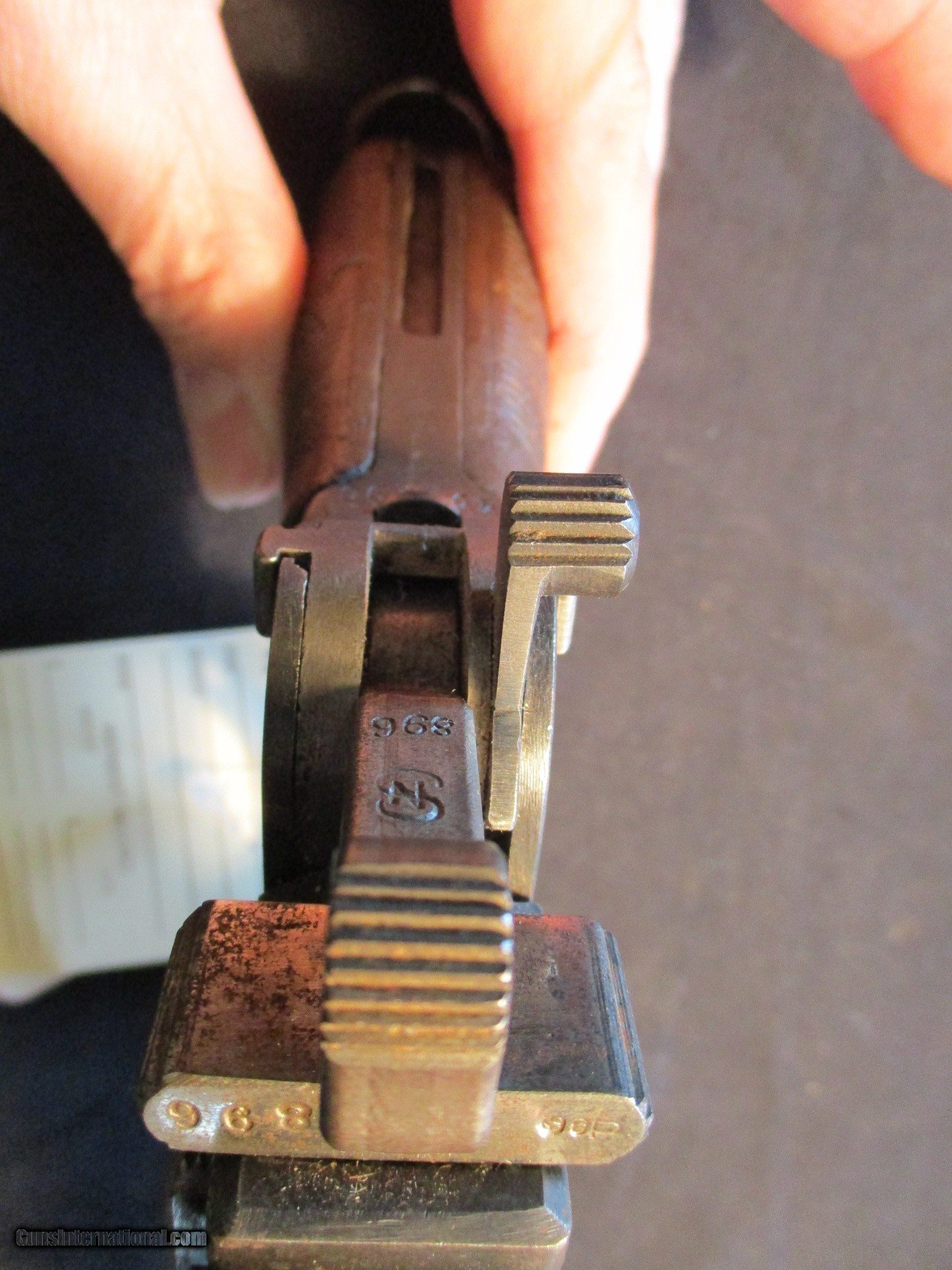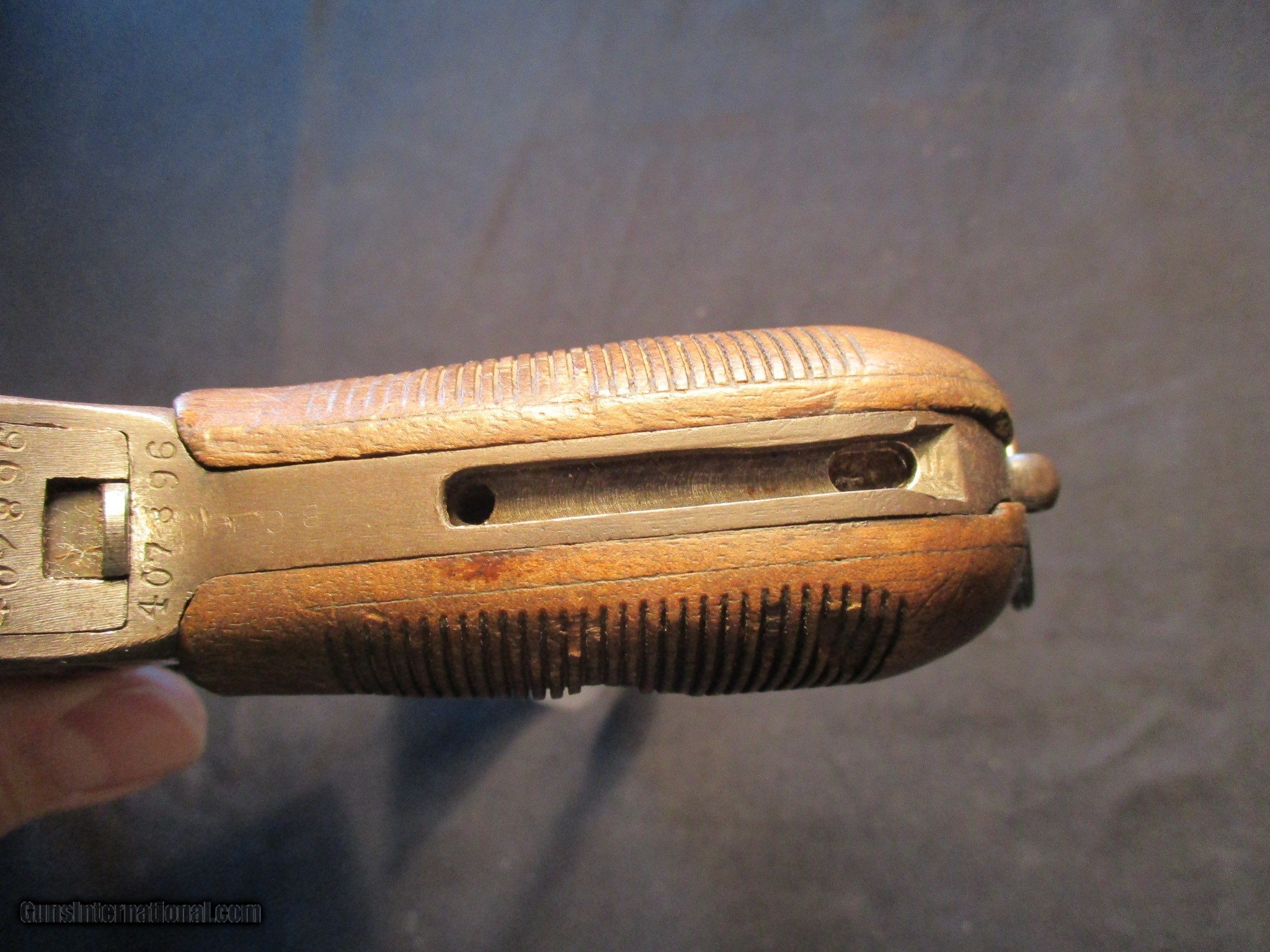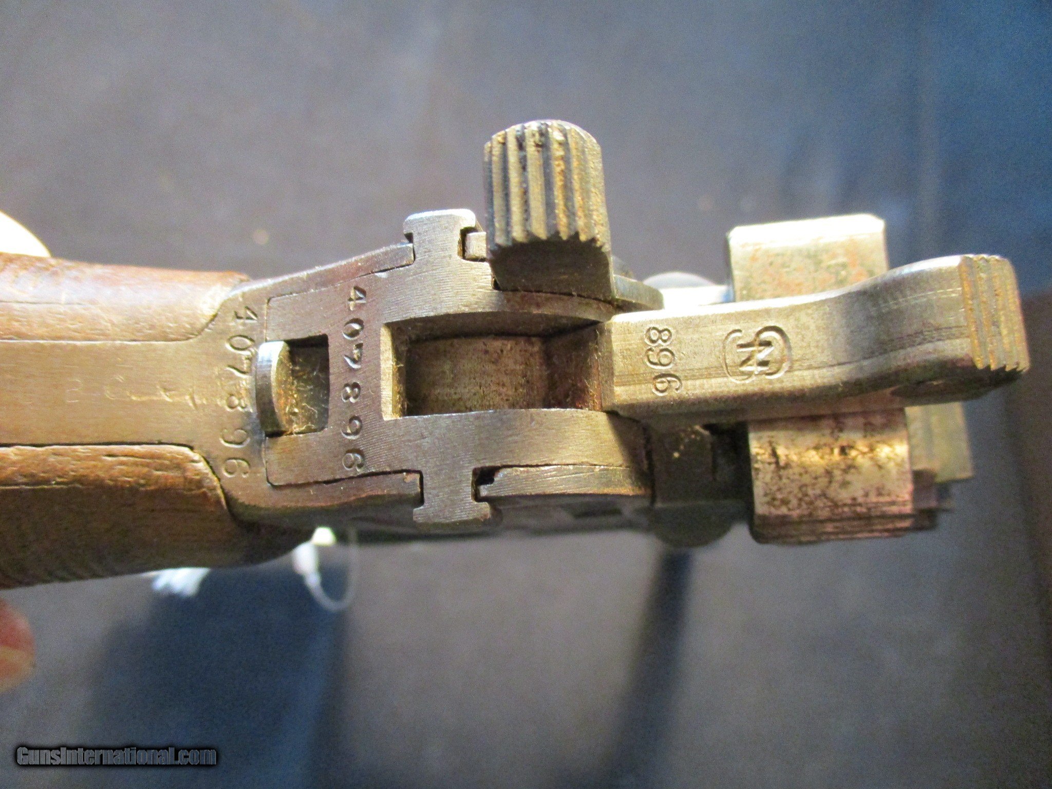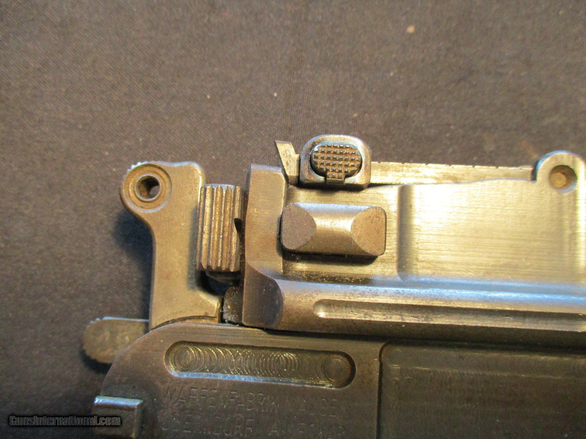 Description: Mauser 1896 Broomhandle 7.62mm, All numbers match thsat I can find. SN is 4078xx. Looks to be all original and nice! Email me if you would like these pics sent to you, they will come through bigger and better than on the listing page here. We do offer Lay-A-Way. Our standard terms are 25% down, 90 days. Initial deposit is not refundable. Email me with any questions. I am a store front dealer, and I will close s if the gun sells locally. Once it has aI will pull it from my shelves. Please check your local laws to confirm it is legal to own in your state! Buyer pays $25 shipping and insurance to your FFL in the lower 48. AK, HI or PR is extra. I will ship to California, NO PROBLEM! All my guns come with a non firing, 3 day unconditional return privilege, from the day UPS delivers to your dealer. Buyer pays shipping both ways if the gun comes back. I can add a new hard case by PLANO for secure shipping for $25 if the buyer wishes (highly recommended, cheap insurance, really helps keep the UPS monster from eating my guns!). No sales tax on guns ship out of Kansas, guns sold in Kansas are subject to Kansas sales tax. I am a licensed FFL, and will include a copy of my FFL with the gun for your dealers records. I will ship to a C&R if the gun is eligible. I will ship to California, but you need to confirm the gun is legal where you are, California or other. I am always looking for good clean, old original Winchesters to buy, consign, or trade, especially pre '64's model 70's and model 54's. WE ALSO TRADE FOR CLASSIC CARS AND TRUCKS! Email me with any questions, and good luck! SOLD |