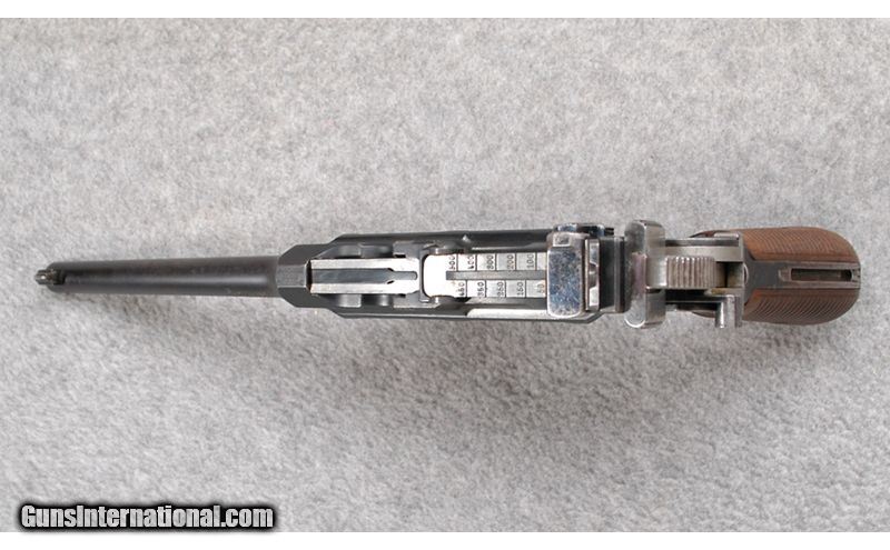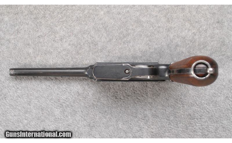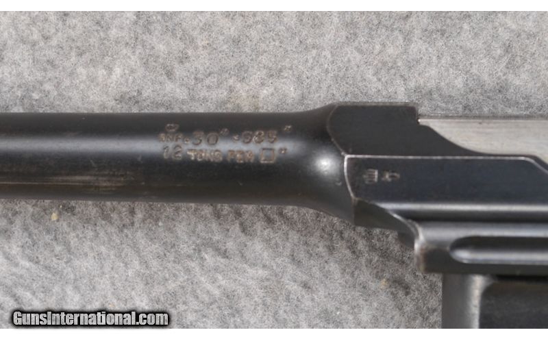Description: Nice broomhandle with British proof marks. .30 Mauser SOLD Curio/Relic: Yes Chambers: Semi-auto repeater. Metal Condition: Good. Wood Condition: Good. Bore Condition: Good. Barrels: "5 1/2"", blued. Triggers: Single. Weight: 2 lb. 8 oz. Sights: Factory adjustable iron sights. Item Location: Dundee, MI |