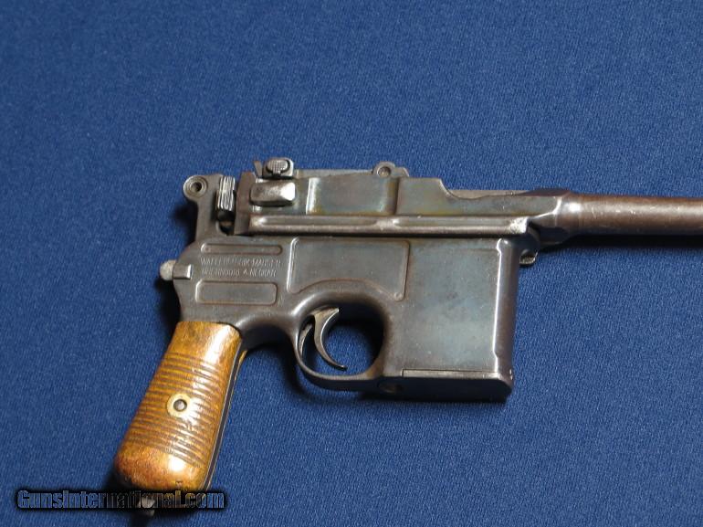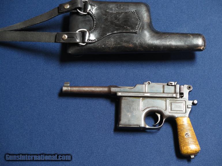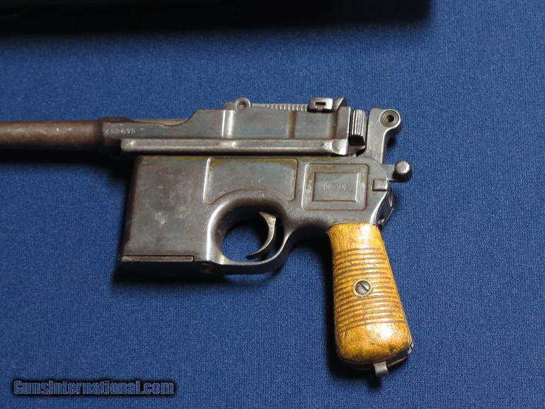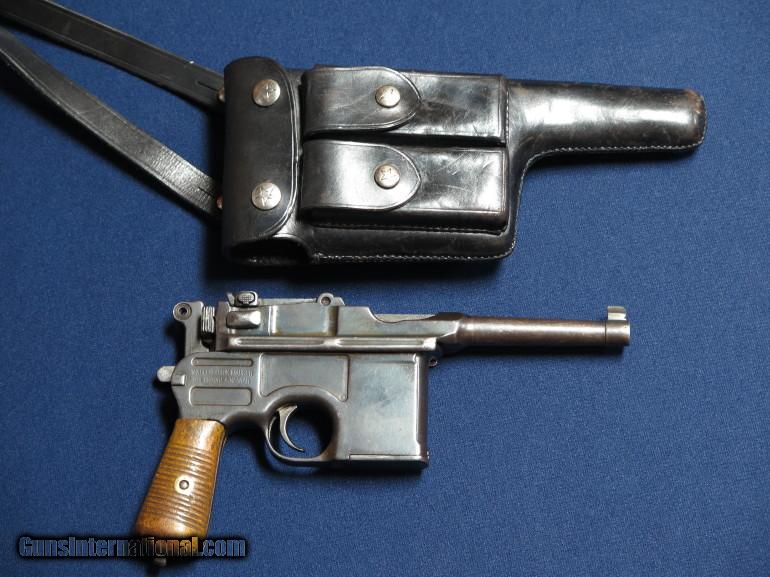 Description: Mauser Bolo Broomhandle 7.63. Mismatched numbers, Blue turning brown. With holster. Good bore. SOLD |
