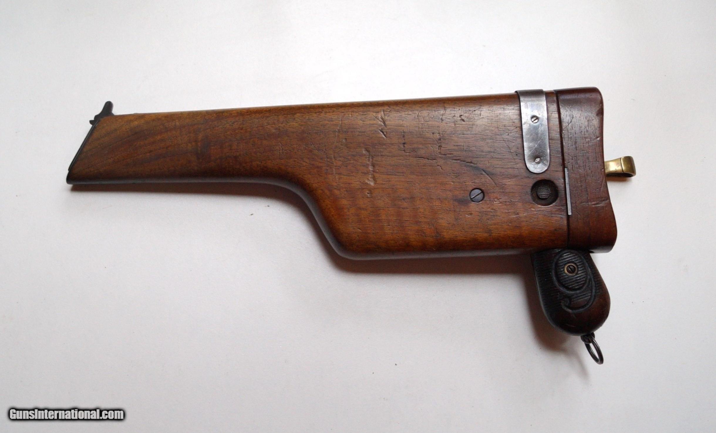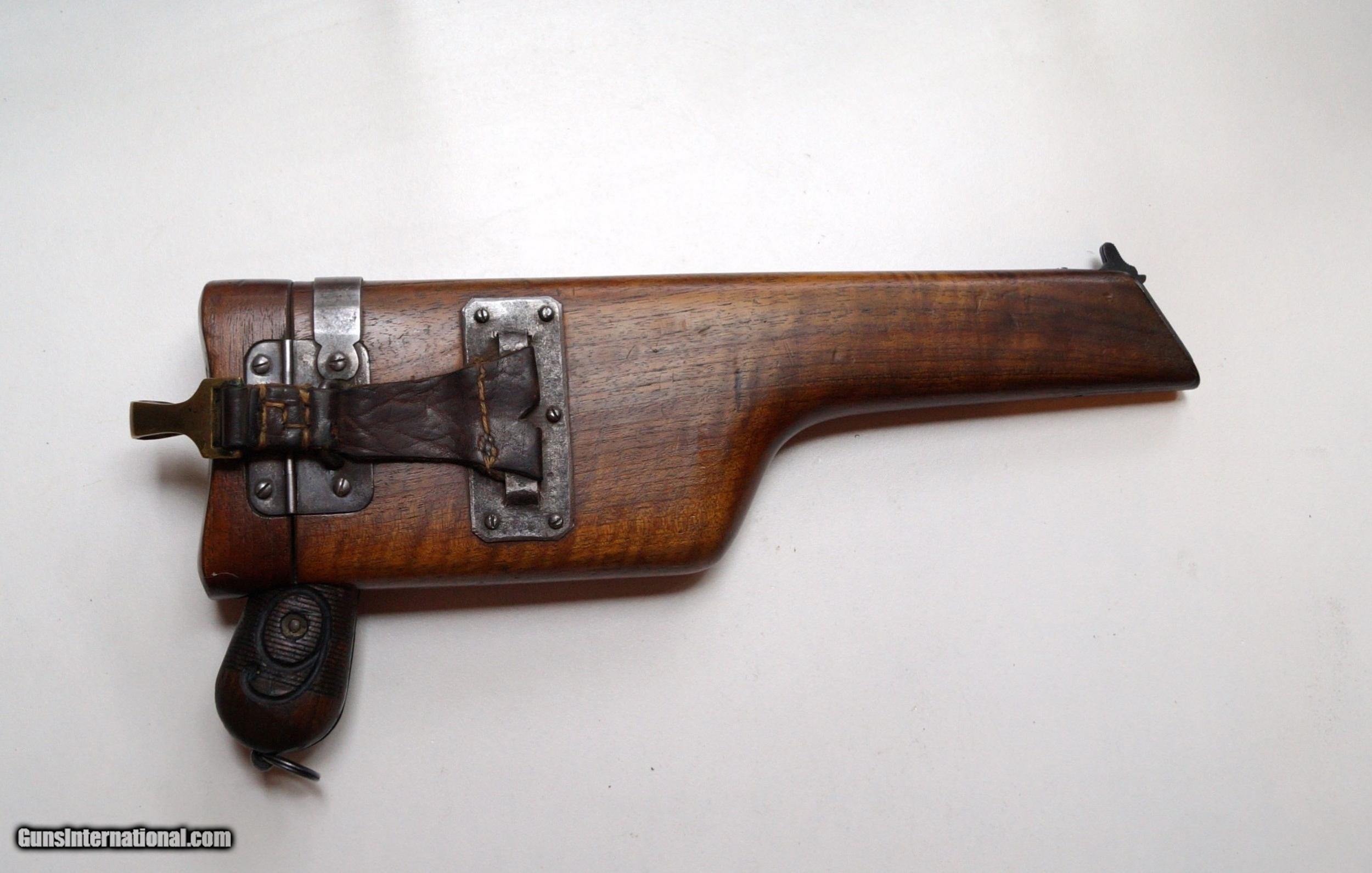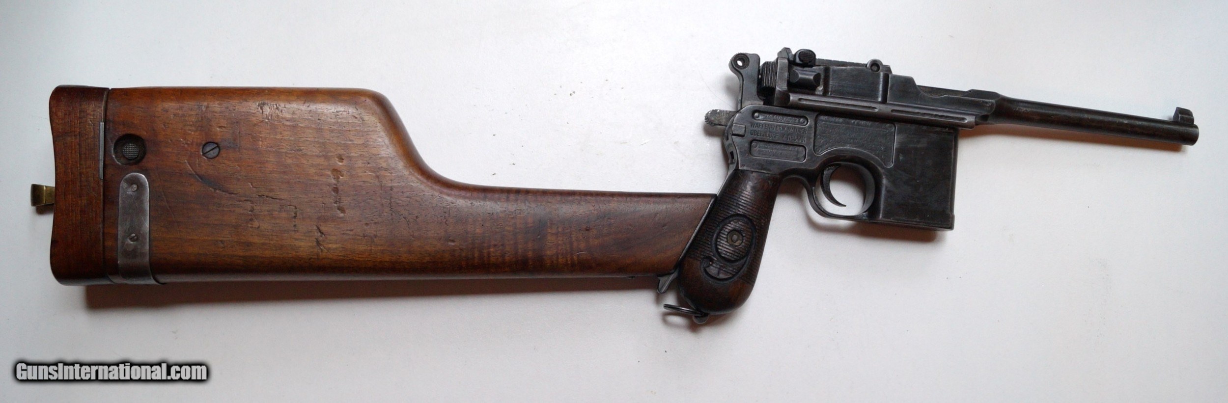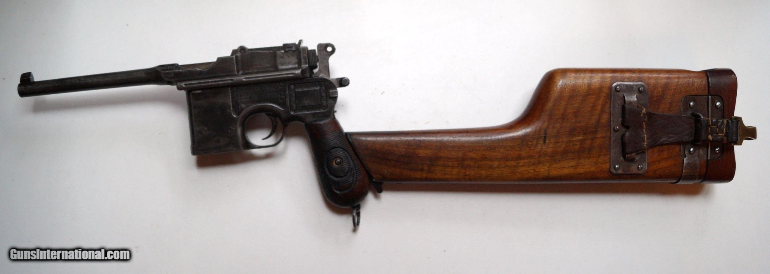 Description: THIS IS A MAUSER BROOMHANDLE C96 WITH WOOD SHOULDER STOCK, 9MM. THE PISTOL IS IN GOOD CONDITION. ALL ORIGINAL, NUMBER MATCHING (THIS INCLUDES THE WOOD STOCK / HOLSTER), GOOD BORE AND GRIPS, MECHANICALLY CORRECT. A VERY NICE ORIGINAL MAUSER 9MM BROOMHANDLE RIG. SOLD Curio/Relic: Yes |
