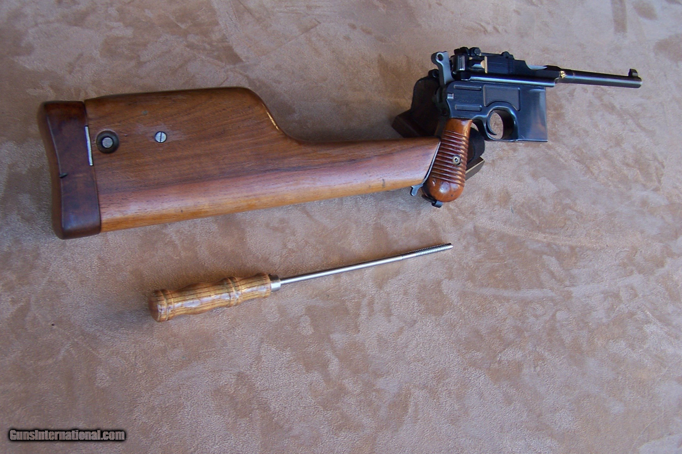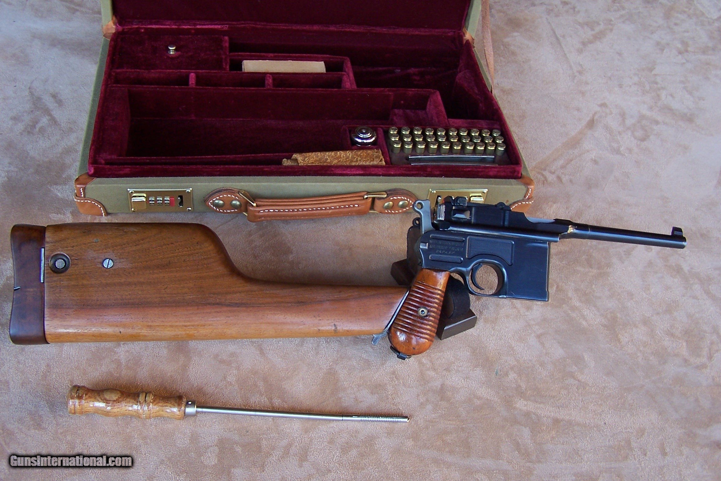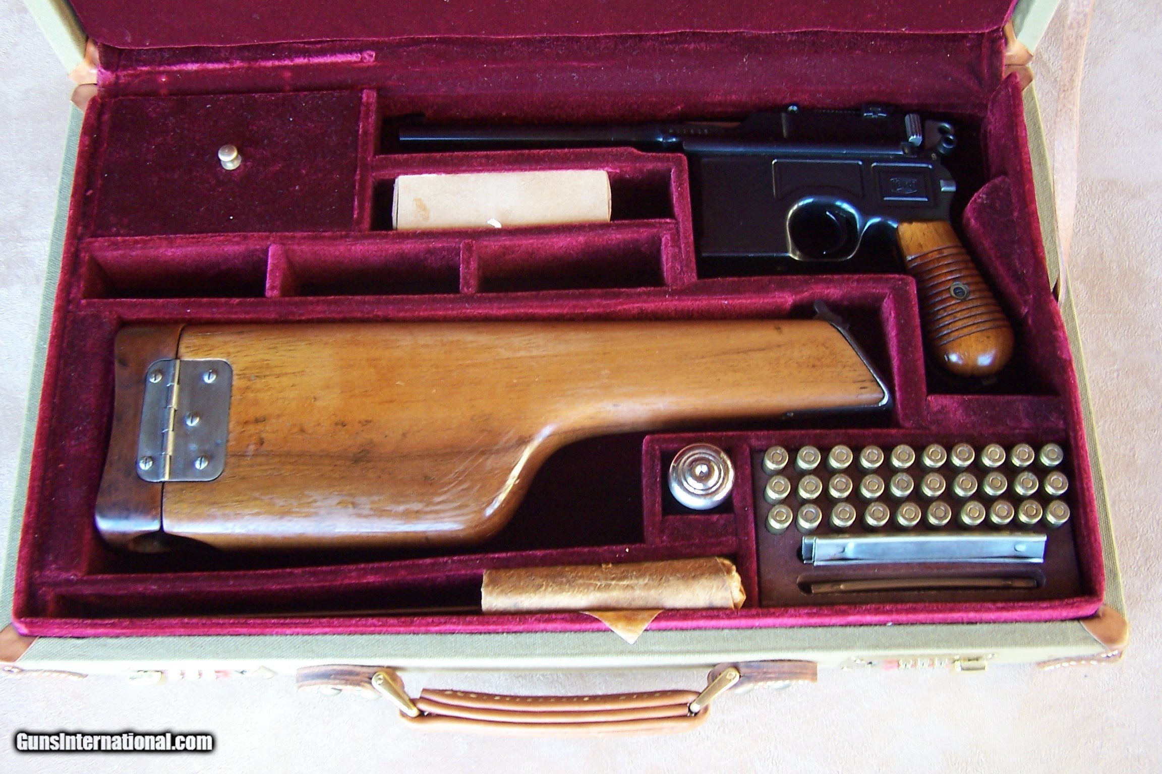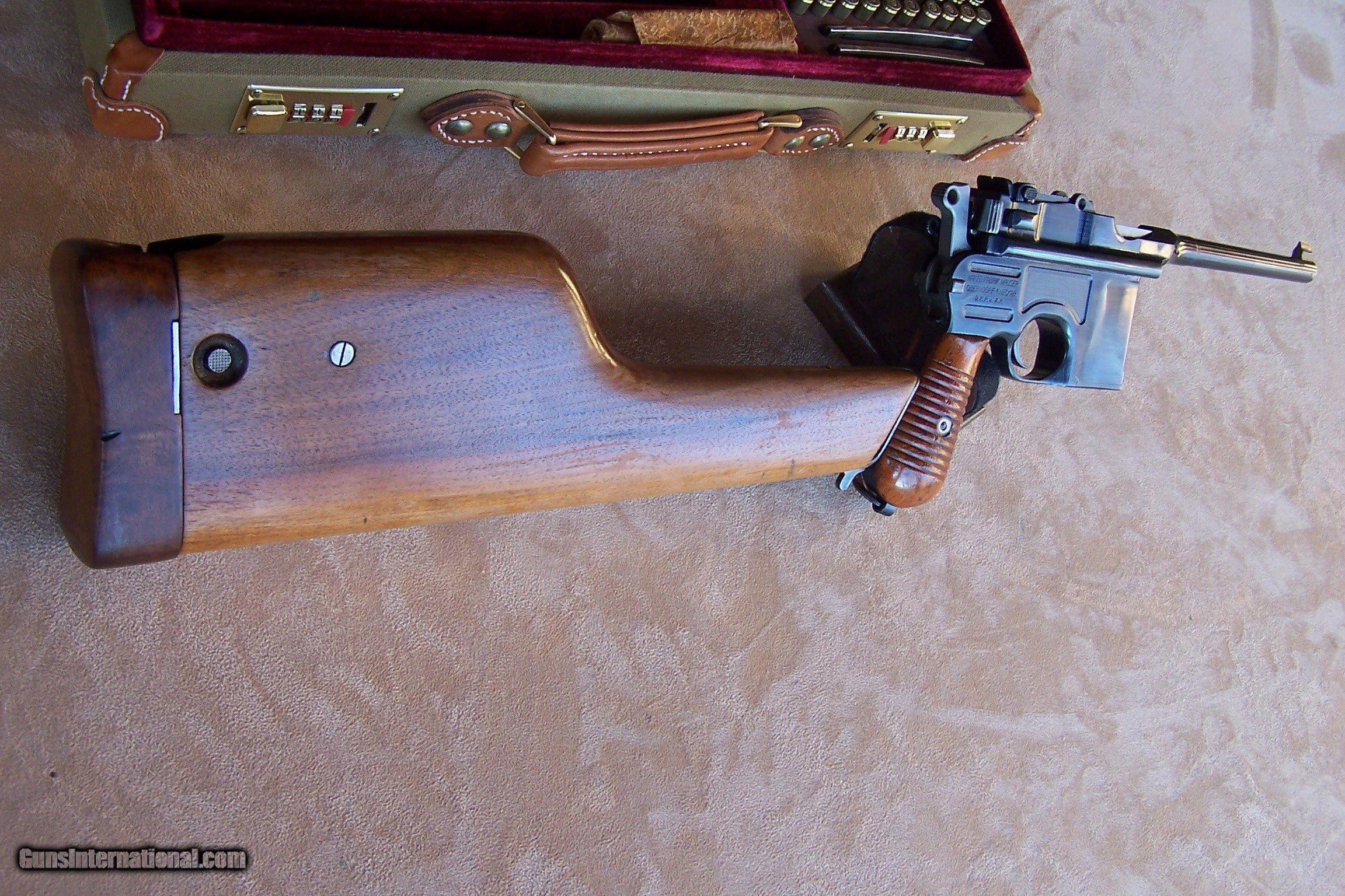 Mauser Broomhandle Cased with Stock & accessories in Trunk Style Case. 1930 C-96 Model chambered in 7.63mm.
