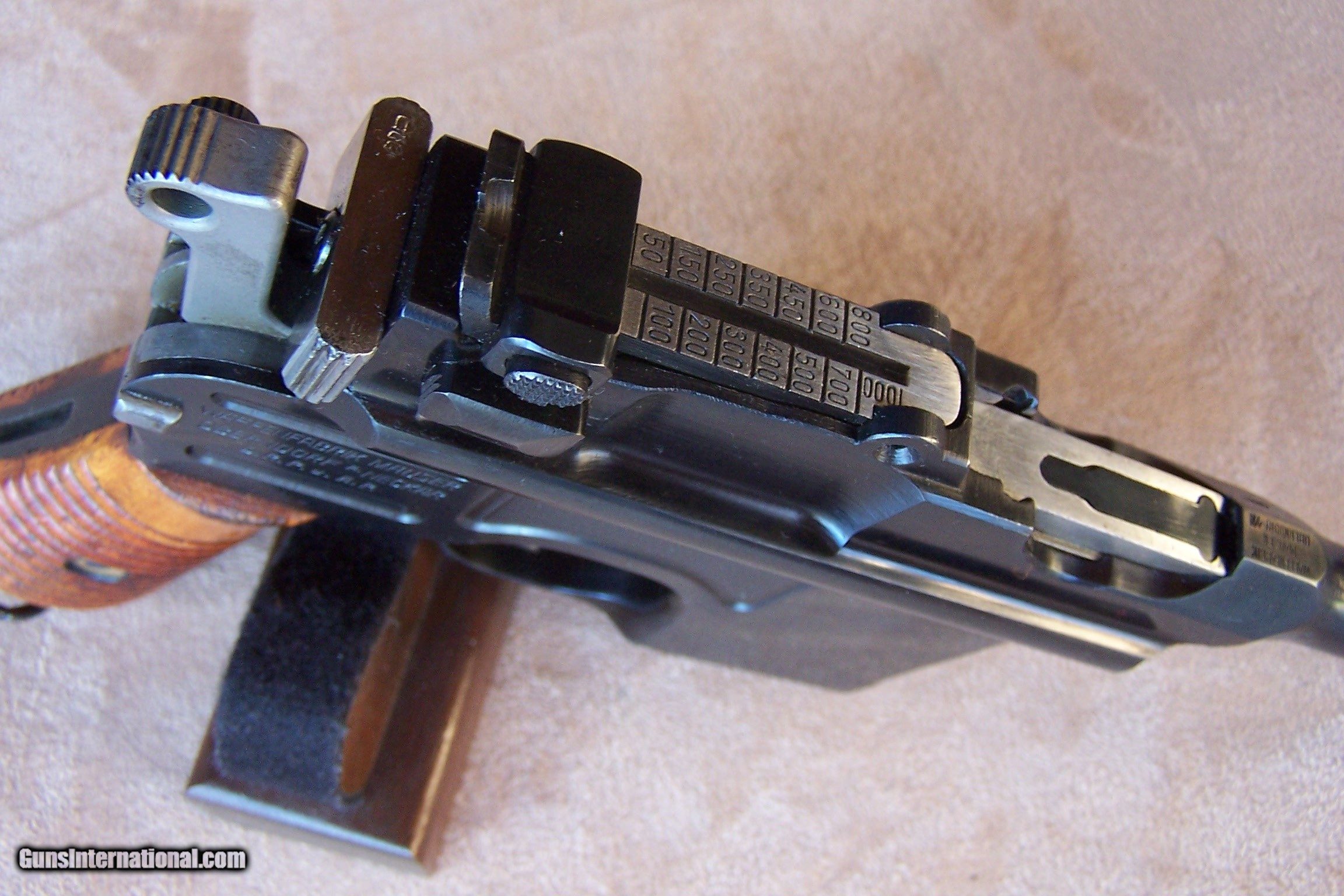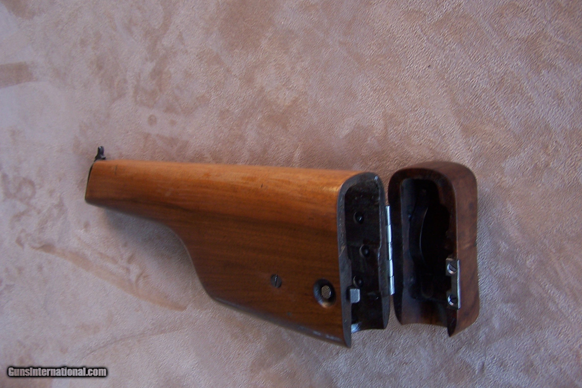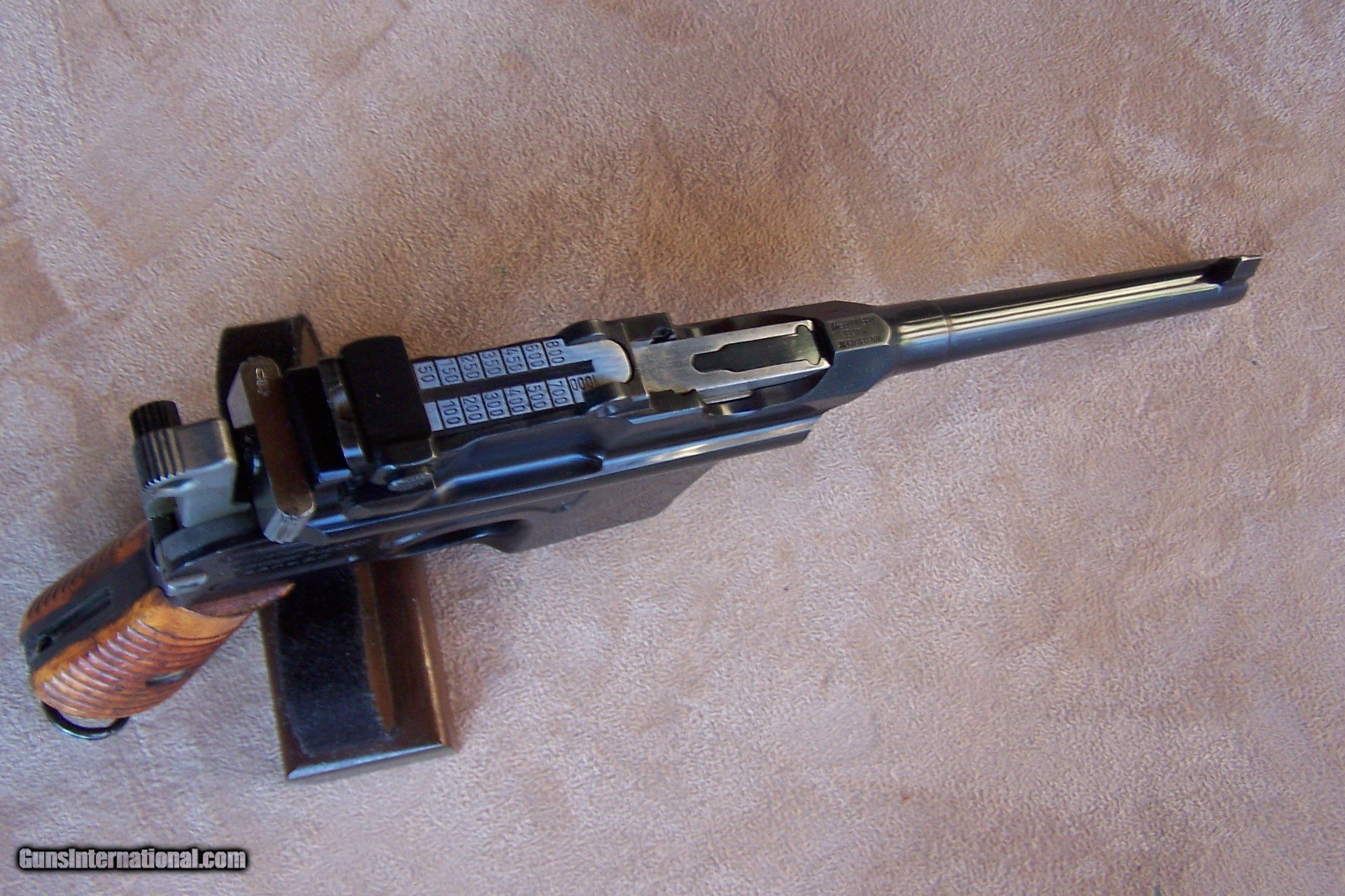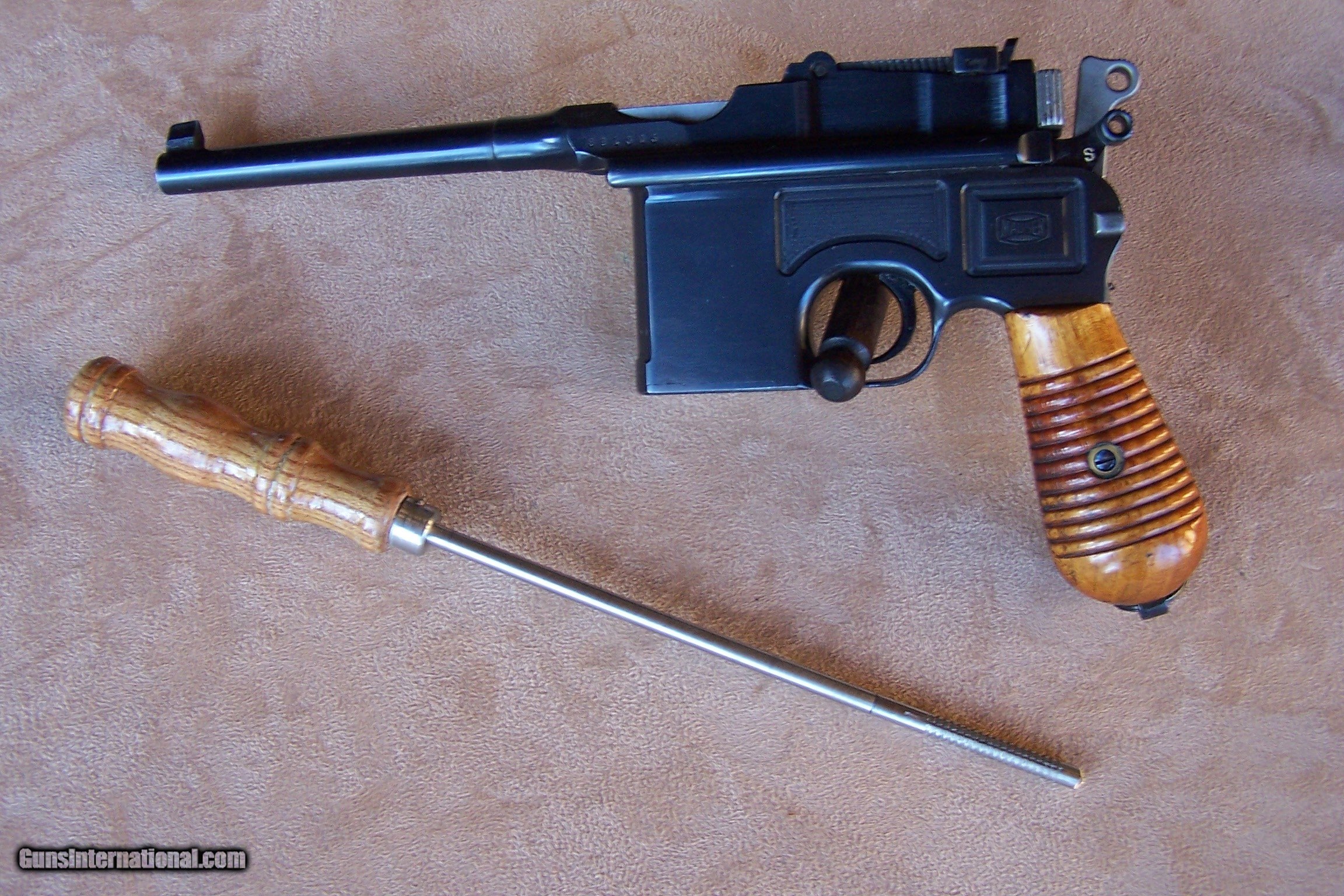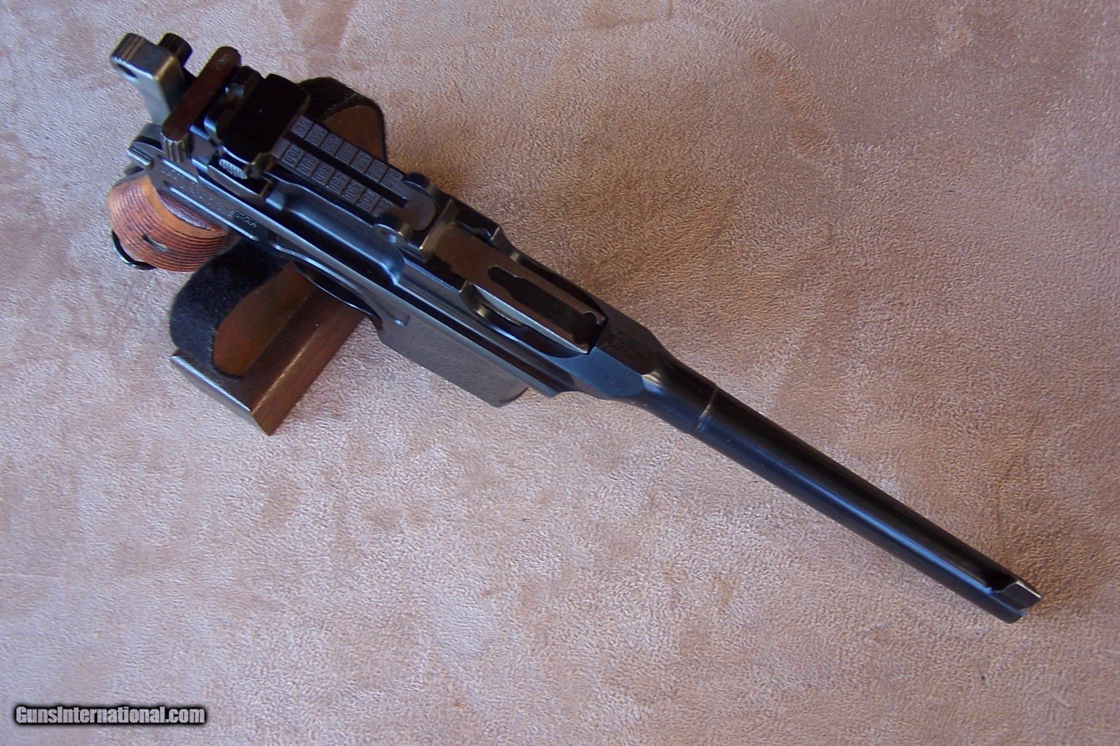 Description: Offered is an excellent Mauser Broomhandle 1930 Model chambered in the 7.63 mm cartridge. It is cased and includes the stock, 90 rounds of ammo, stripper clips and cleaning rod. The gun remains in excellent condition and the bore is excellent as well. It includes the wood holster stock, 90 rounds of ammo and various other items that are all cased in a trunk style case. This Mauser was made in the 1932-1934 time period. It has the 50 to 1000 meter vernier adjustable sight and the 5 1/2” barrel. This gun is over 50 years old and meets the requirements of the C&R license. I offer a three-day non-firing inspection period and always want the buyer to be satisfied with their purchase. The gun will be packed correctly and shipped with insurance to your FFL dealer in the continental United States for $65 (California is extra because I have to ship through my local dealer). This gun requires a C&R or FFL license for transfer. I ship the following day after the payment arrives and provide tracking information. Please see my other collectible firearms that I have listed. Thanks for your interest and please let me know if you have any questions. Price is $4,250.00 plus shipping. Please Note: A same as cash price Lay-A-Way plan is available on this gun. Please call to discuss. Important Note: If you want to insure buying this just Click on the Blue BUY-NOW button to the right of the price below as this closes the . SOLD Curio/Relic: Yes Handgun Caliber: 7.63x25mm Mauser (30 Mauser) Manufacturer: Mauser Oberndorf Model: Mauser Broomhandle Serial Number: 891303 Barrel Length: 5 1/2 Condition: Excellent Metal Condition: Excellent Wood Condition: Very good plus Bore Condition: Excellent Action: Semi-Auto Finish: Blue Sights: 50-1000 Meter Vernier Manufacture Date: 1932-1934 Extras: Ammo, Stripper Clips, Wood Holster Case: Trunk Style Item Location: Tennessee |