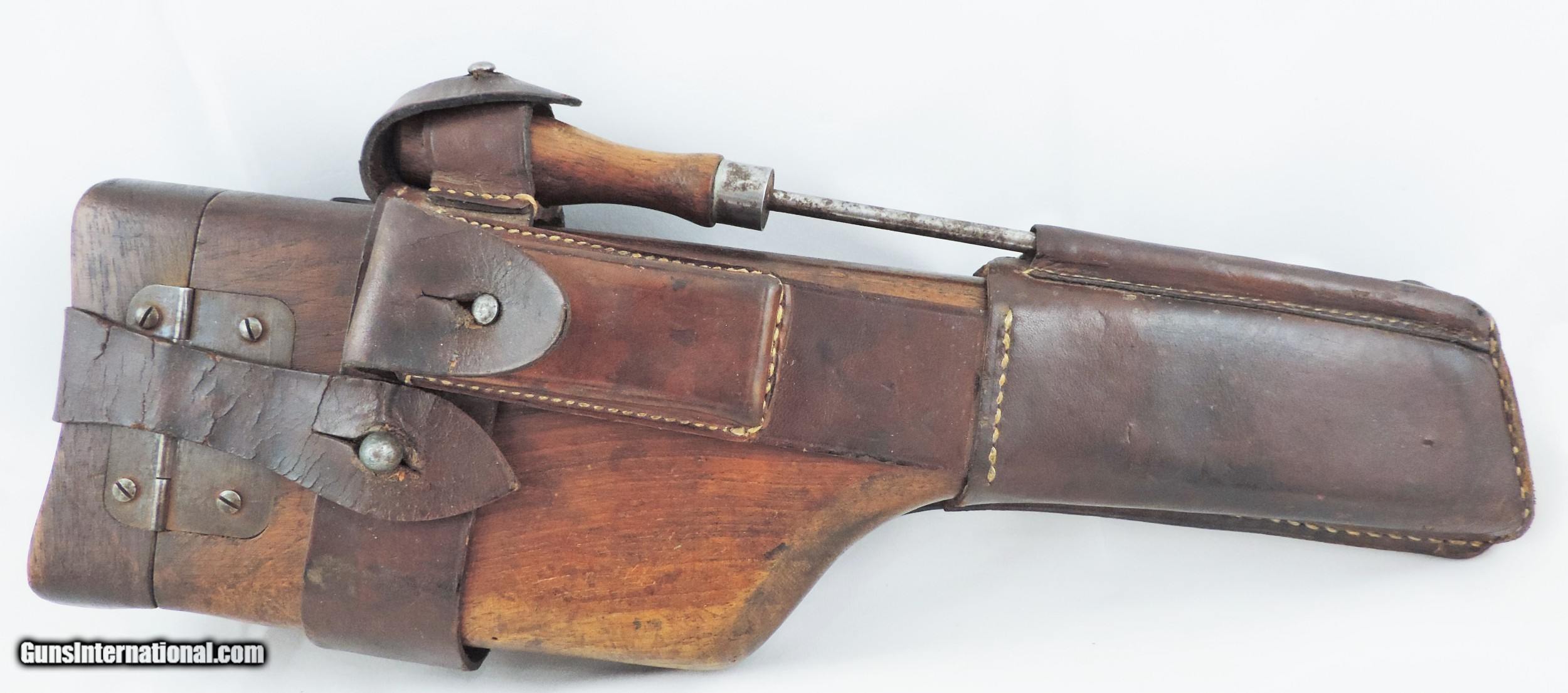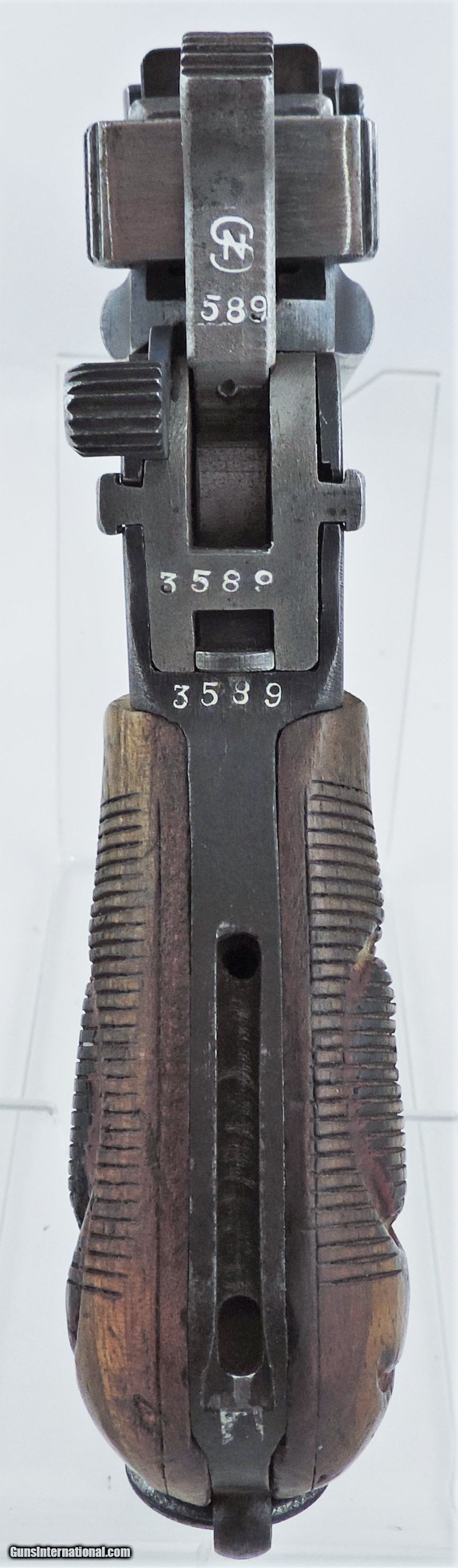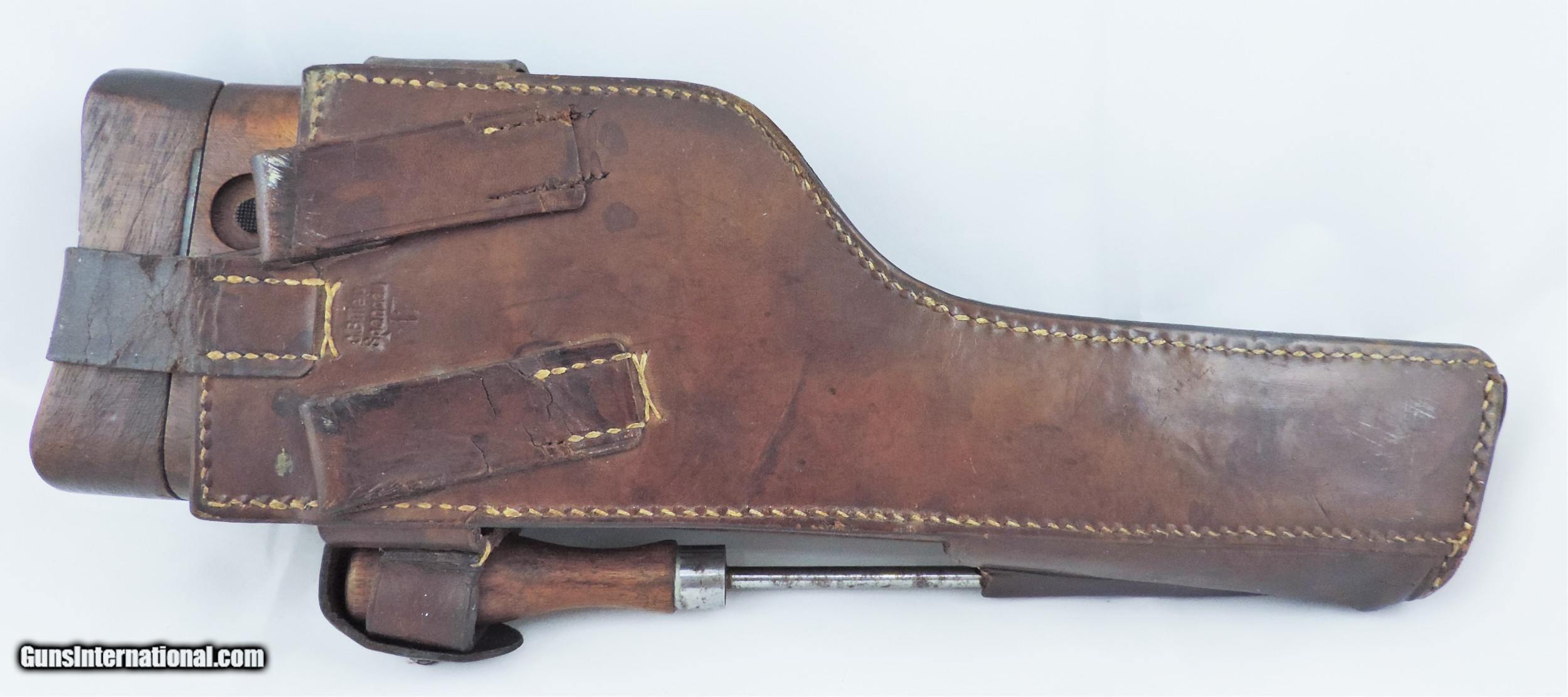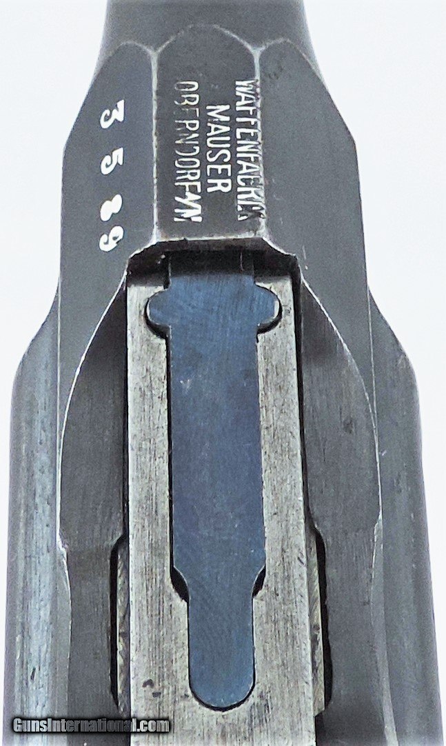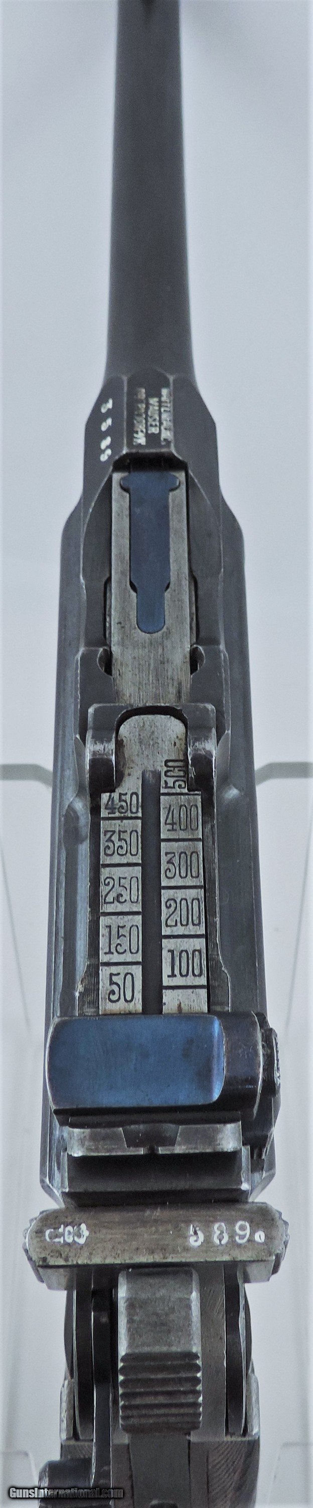 Description: Inv. 7340 Mauser C-96 (RED NINE RIG), Cal. 9mm, Ser. 35XX. The very rare original leather harness, stock, cleaning rod and and spare magazine spring complete the rig. The condition is outstanding. The gun at least 98% of the original factory blue. The little loss there is, is due to very slight sharp edge and silvering, muzzle wear due to holster wear. There are no rust spots, pinpricks or scratches anywhere. The grip straps show only the slightest bit of toning. The fire blued sight slide, extractor and bolt lock are at the least 98+%. The hammer is correctly stamped "NS" for new safety. The grip straps show very little toning. All the proper parts match including the grip panels. The panels do exhibit some mild surface wear to the lacquer but are not chipped, split or dinged in anyway. The slide rails, bolt face and feed ramp show very little use. The bore is pristine. Sunshine bright and razor sharp.rifling, not a touch of frost anywhere. It comes with a beautiful and correct non-matching WWI wooden holster stock that is stamped with the Imperial Proof on the rear. A rare and very desirable original leather holster harness In really great condition. All the stitching is intact except for one belt loop. All compartments are present and the leather is in super condition considering that the harness is 102 years old. The front compartment has an original magazine spring and the side a cleaning rod. The harness is stamped G. Bilop /Spandau/ 1917 on the rear.i. It is a complete RED NINE RIG that would be a centerpiece in any collection and a great investment. It comes with our "Purchase Satisfaction Guarantee" REDUCED........ Shipped..... $4975....OBO To purchase this firearm or if you want to request more information contact us at: Email ckguns[at]ymail[dot]com Phone 201-512-0002 Cell 201-575-6838 FAX 201-215-4759 We accept most major credit cards. Prices shown are Discounted 3% for Cash or Check. The buyer must be familiar with all the laws governing the purchase and the ownership of firearms in their own city and state. The Yankee Armorer, Inc is not responsible for any failure to comply with or observe these laws. The Yankee Armorer, Inc will only ship after full payment and receipt of all required documents. Shipping: Add $35.00 for handguns, $45.00 for long guns. New Jersey buyers are subject to a 7% sales tax. The Yankee Armorer, Inc offers a 3 day inspection period with full refund upon return of intact firearm and in the original condition. The Yankee Armorer, Inc offers a no interest lay away program - 25% down; 25% in 30 days; 25% in 60 days; and full payment in 90 days. Any violation of this policy is subject to restocking and forfeiture of all payments. Any variation from this policy must be agreed to in advance. Unshipped Cancelled sales are subject to a 20% restocking fee. Be advised that all firearms sold by The Yankee Armorer, Inc. or the Gun Exchange, LLC (SELLER) are sold as collector’s items. They have not been fired or tested for safety and must be examined by a license gunsmith prior to use. By purchasing any item from the (SELLER), you are agreeing to hold the (SELLER) free from any damages or lawsuits of any nature. Any item left for transfer or storage will be charged to $25.00 per month, per item from the day of its receipt. Any variation from this policy must be agreed to in advance. Store hours 10:00 am to 5:00 pm Tuesday -Saturday. It's always best to call for appointment. Store 201-512-0002, cell 201-575-6838. SOLD Curio/Relic: Yes Manufacturer: Mauser Model: C-96 Serial Number: 35XX Caliber Info: 9 mm |