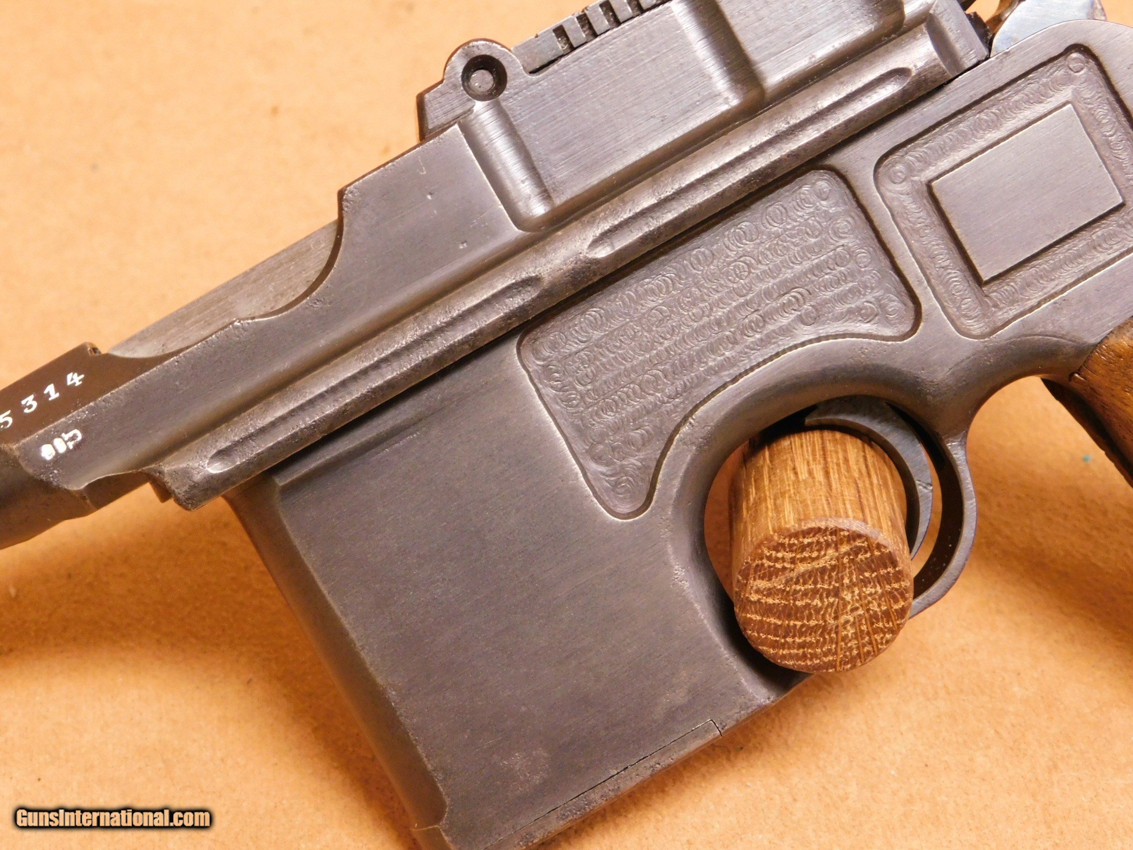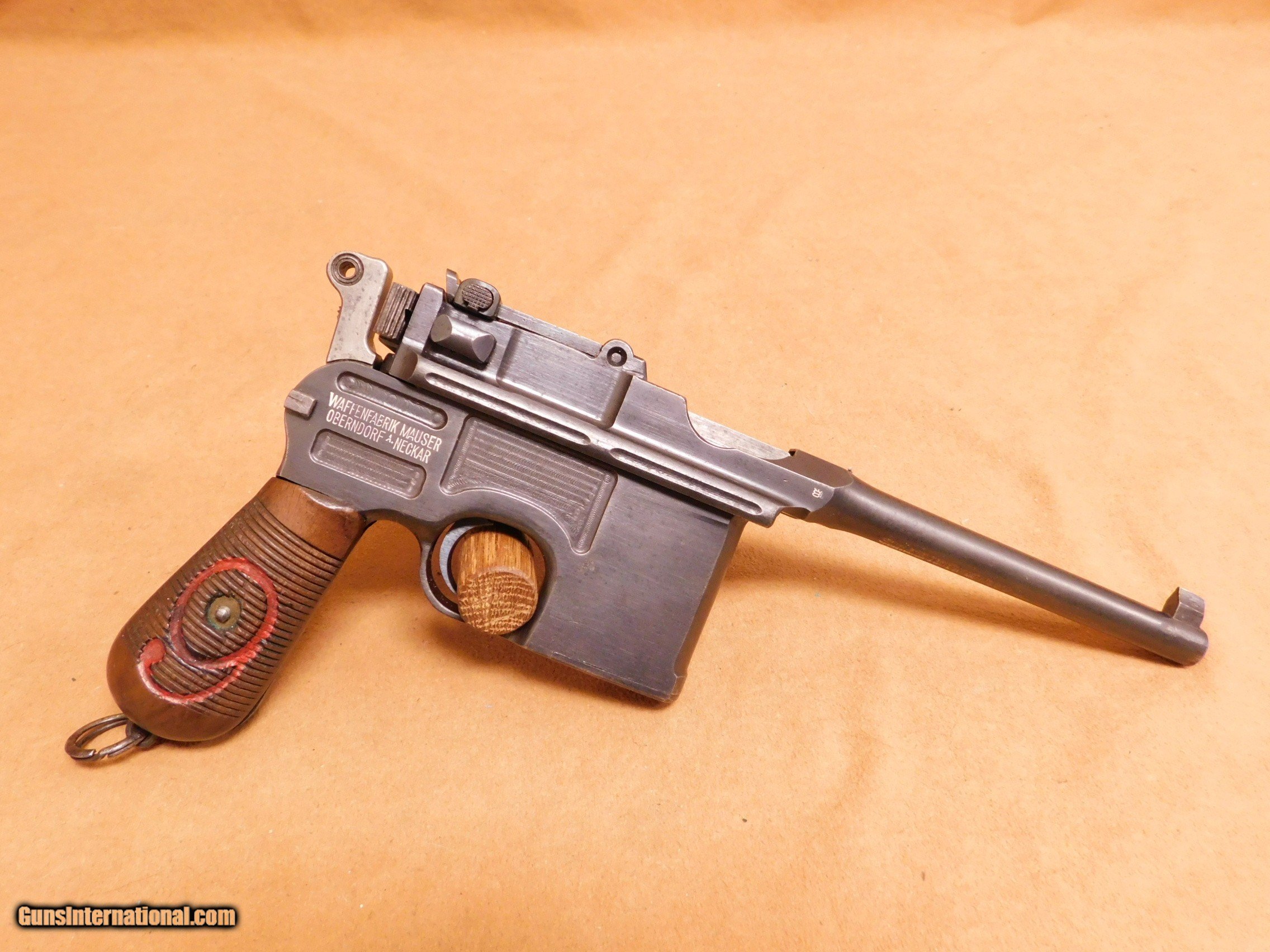 Description: This is a Mauser M1896/16 "Red 9" Broomhandle Pistol in 9mm Luger. The gun is in about 96%, original, very sharp condition. This gun comes with its original, matching numbered stock. The grips are only one number off, which could possibly be a factory error. The bore is mint. This gun comes with its original 1917-dated leather stock harness & cleaning rod. All items are also available for sale in our brick & mortar store and are subject to prior sale. Think long, think wrong. Payment On firearms, we typically only accept credit cards or money orders/cashier's checks.