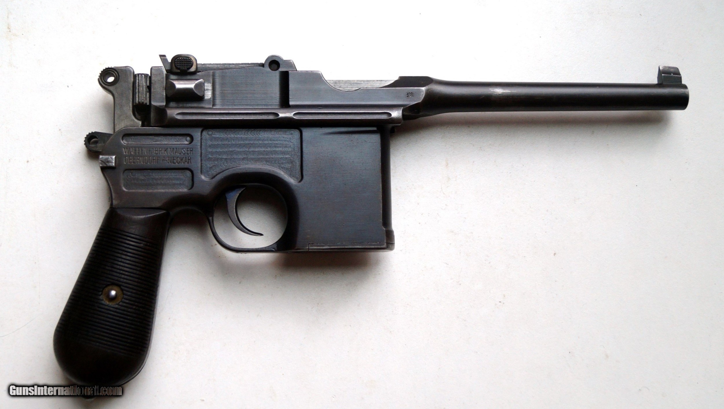 Description: THIS IS A MAUSER WWI MILITARY C96 BROOMHANDLE PISTOL, 7.63MM. THE PISTOL IS IN VERY GOOD CONDITION. ALL ORIGINAL, NUMBER MATCHING (THIS INCLUDES THE GRIPS), VERY GOOD BORE AND GRIPS, MECHANICALLY CORRECT AND TIGHT. A VERY NICE COLLECTABLE WWI MILITARY MAUSER BROOMHANDLE. SOLD Curio/Relic: Yes |